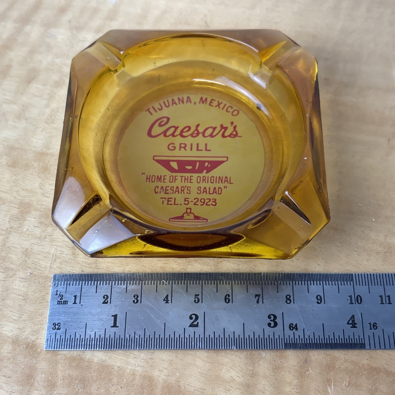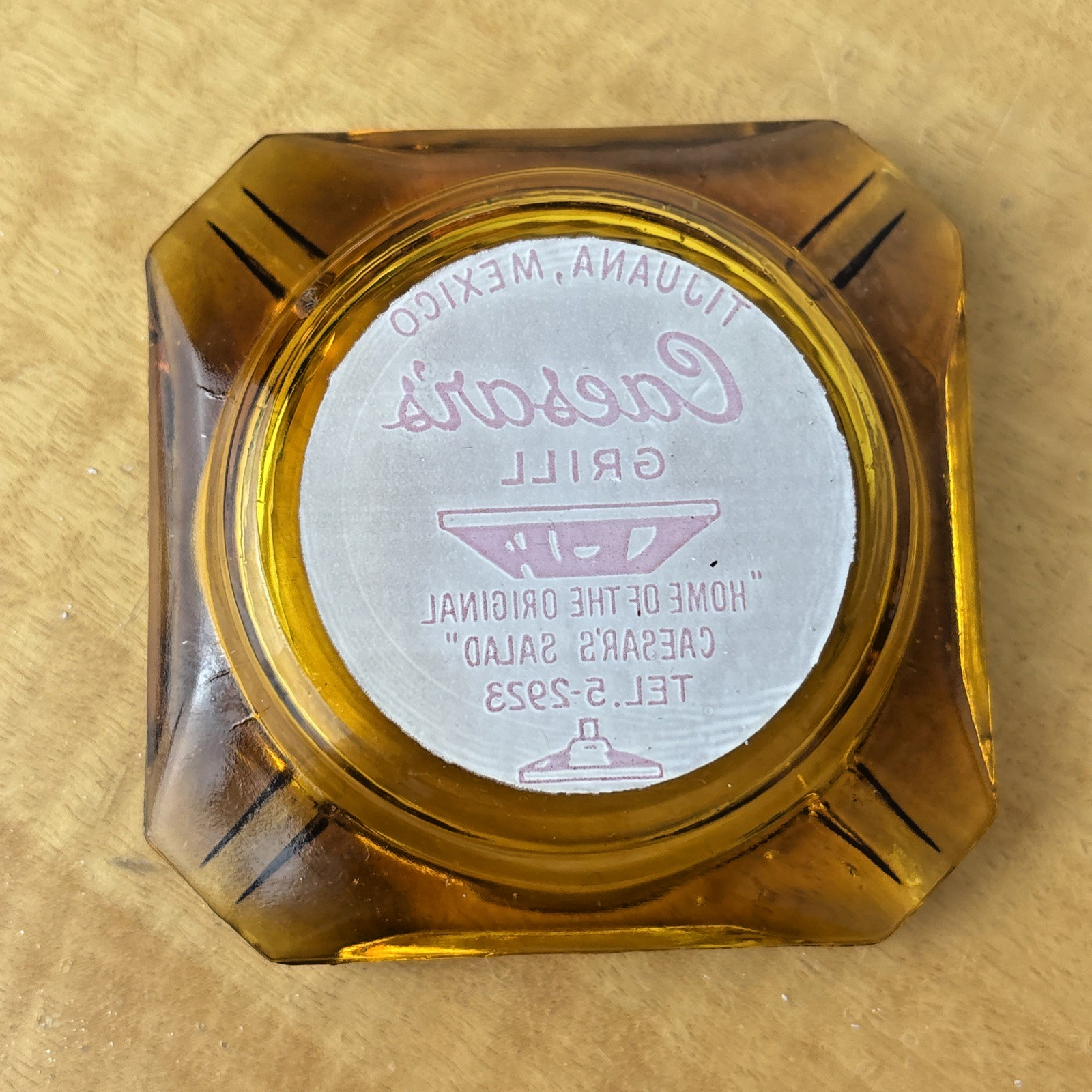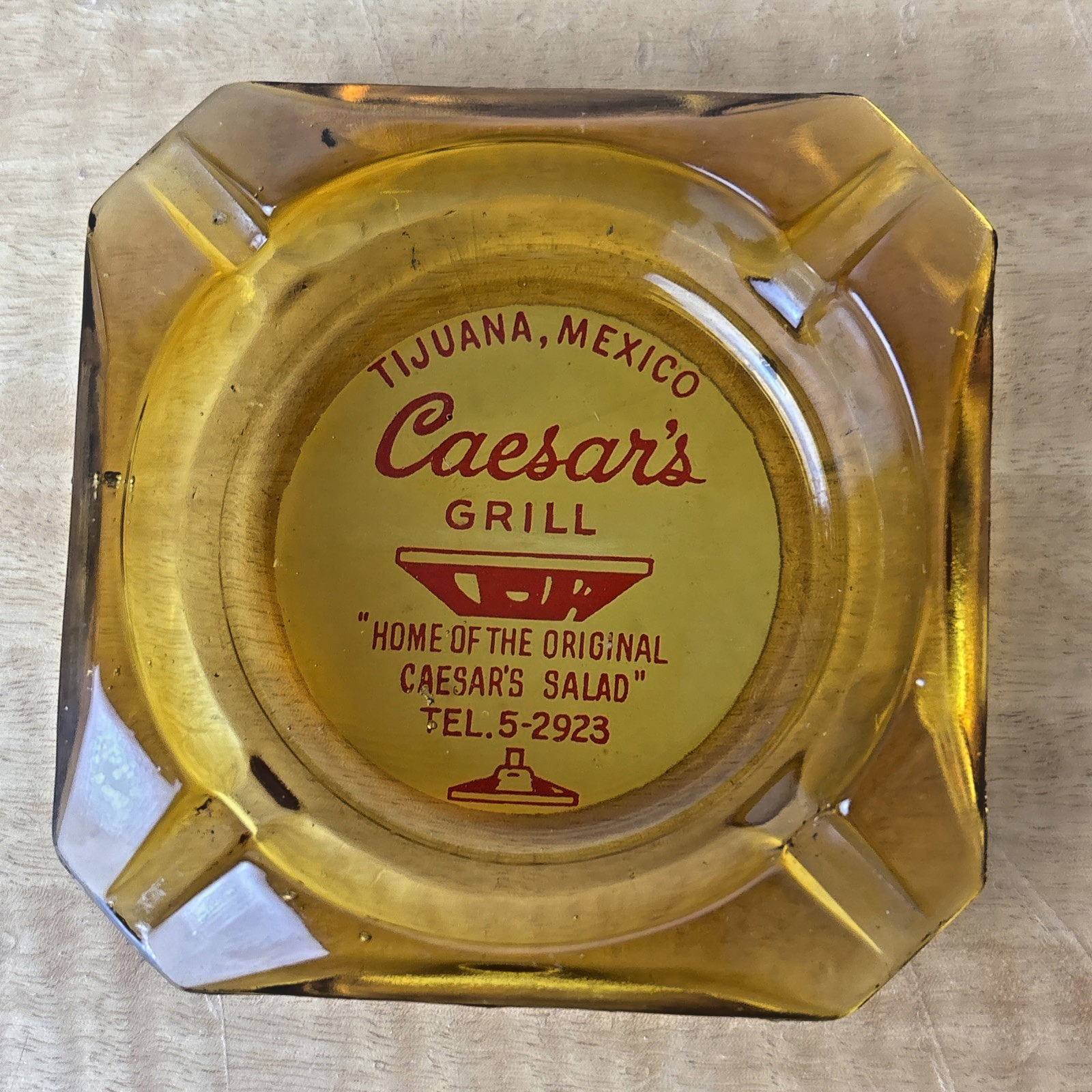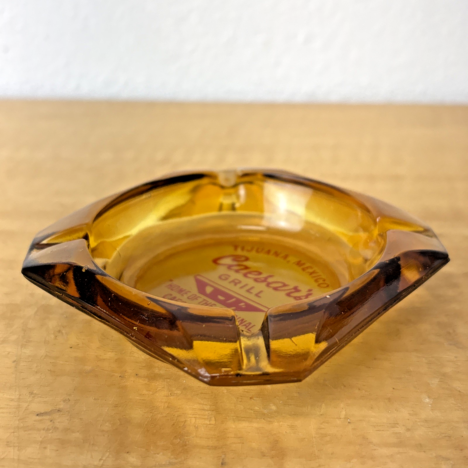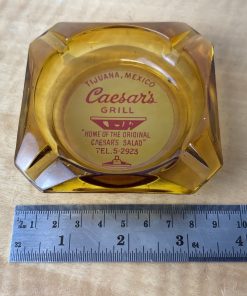 Vintage Marketing Ashtray Clear Glass MCM Caesar’s Grill Tijuana Mexico