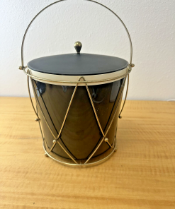 Vintage MCM Thermos Insulated Ice Bucket Tub Model 9940 Style 45 Black w/ Metal