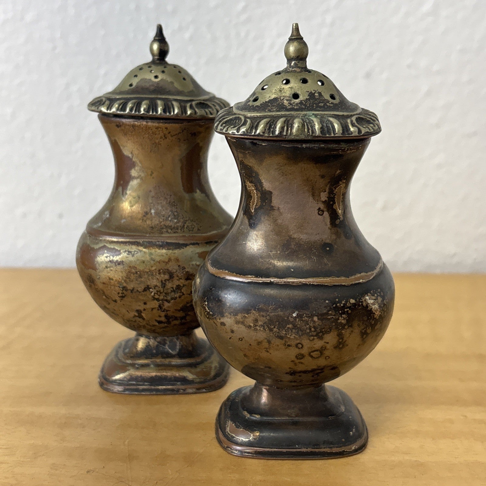 Vintage Metal Salt and Pepper Shakers Ornate Detail Made in England