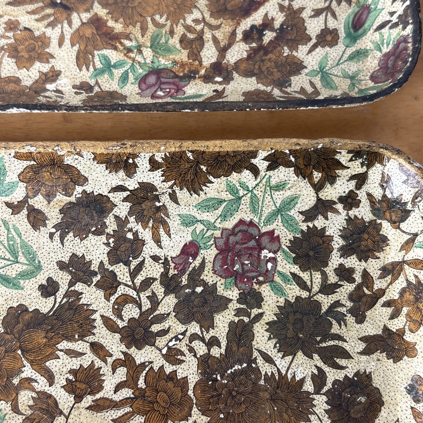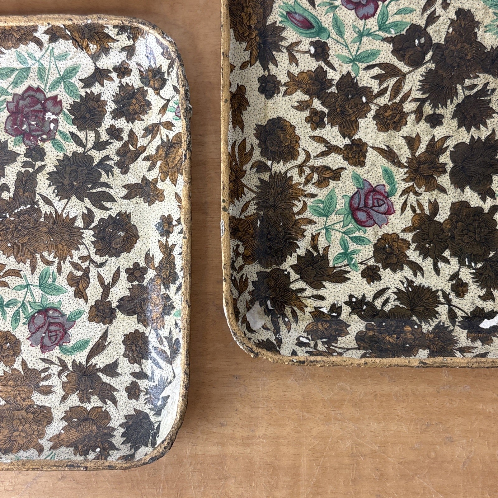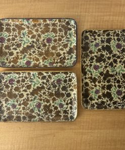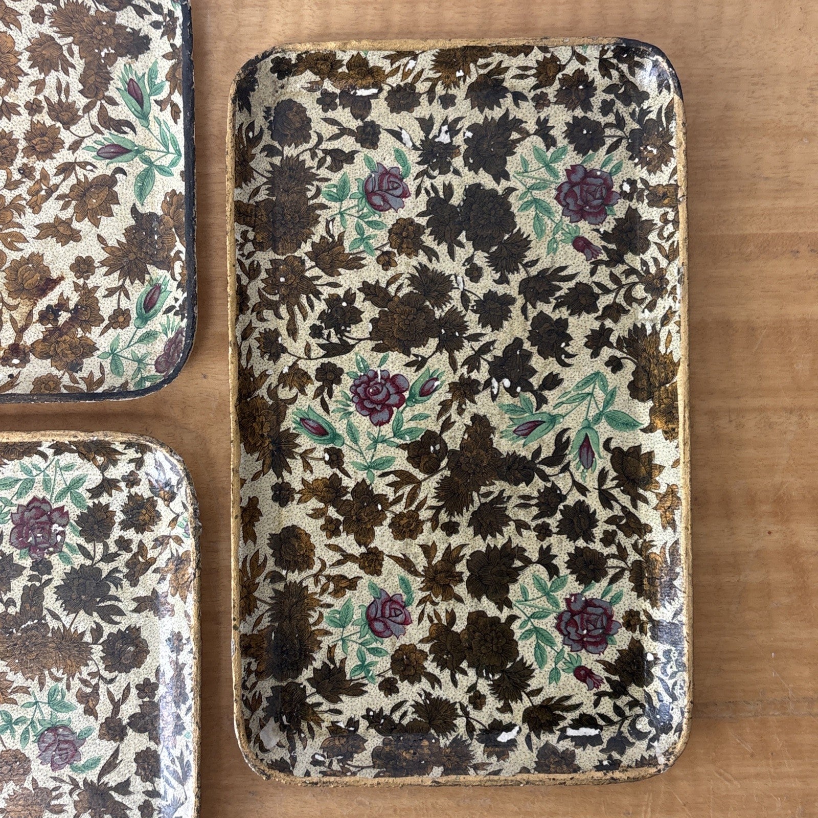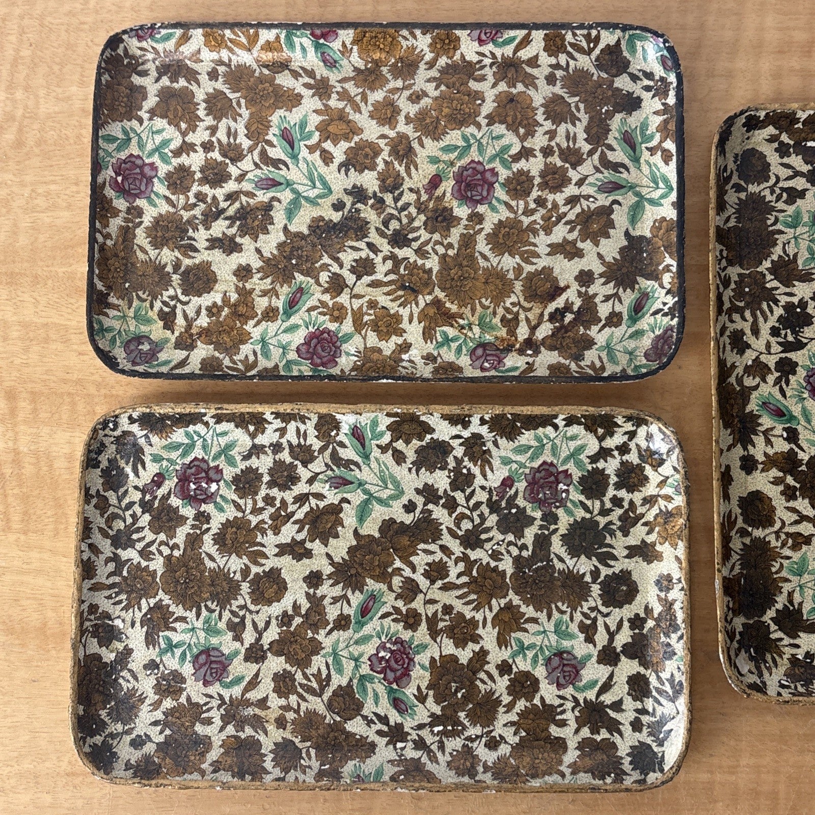 Vintage Paper Mache Alcohol Proof Snack Trays Set of 3 Floral Made in Japan