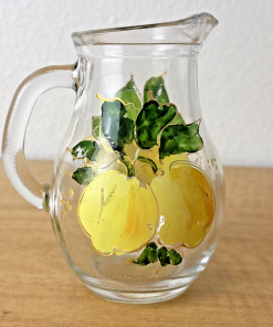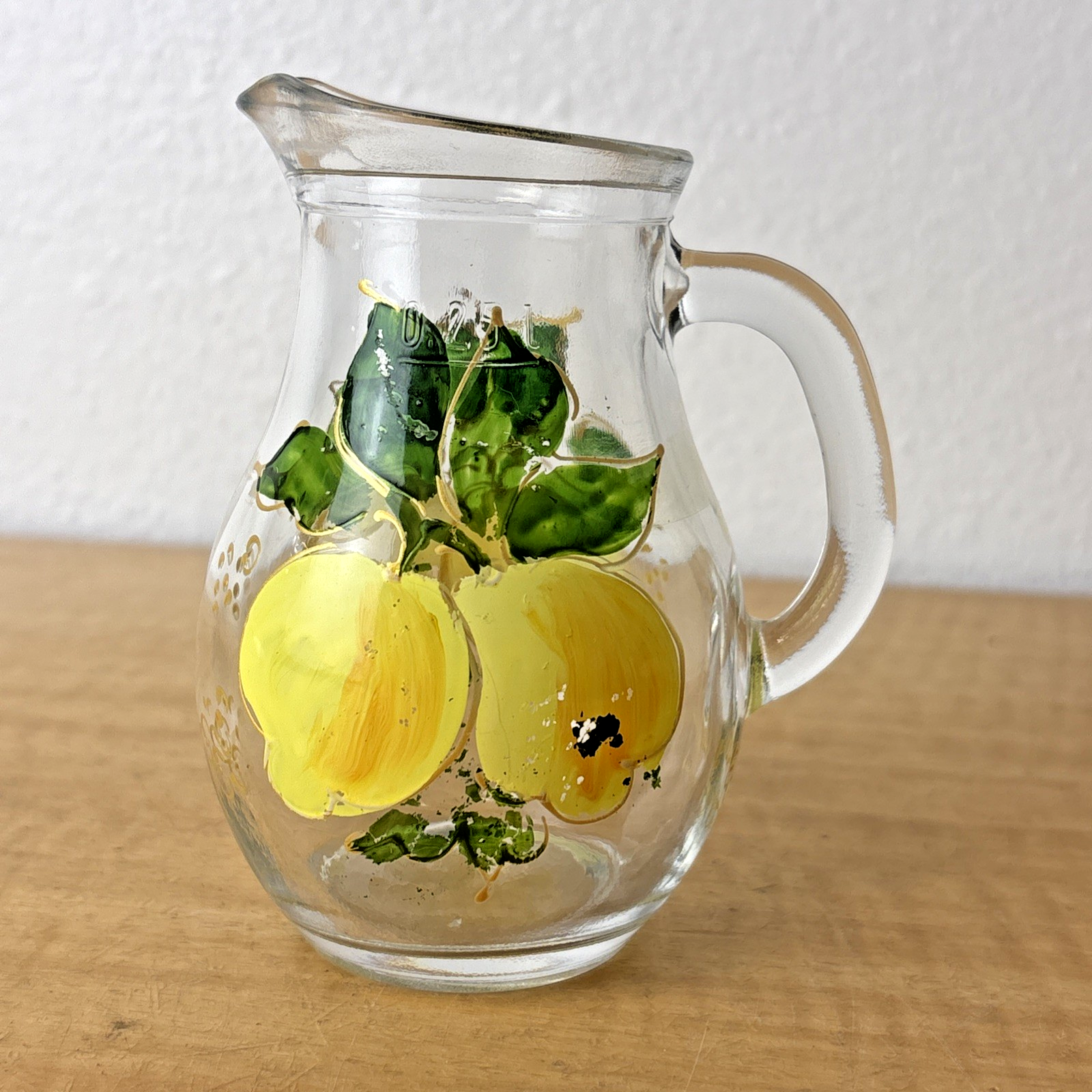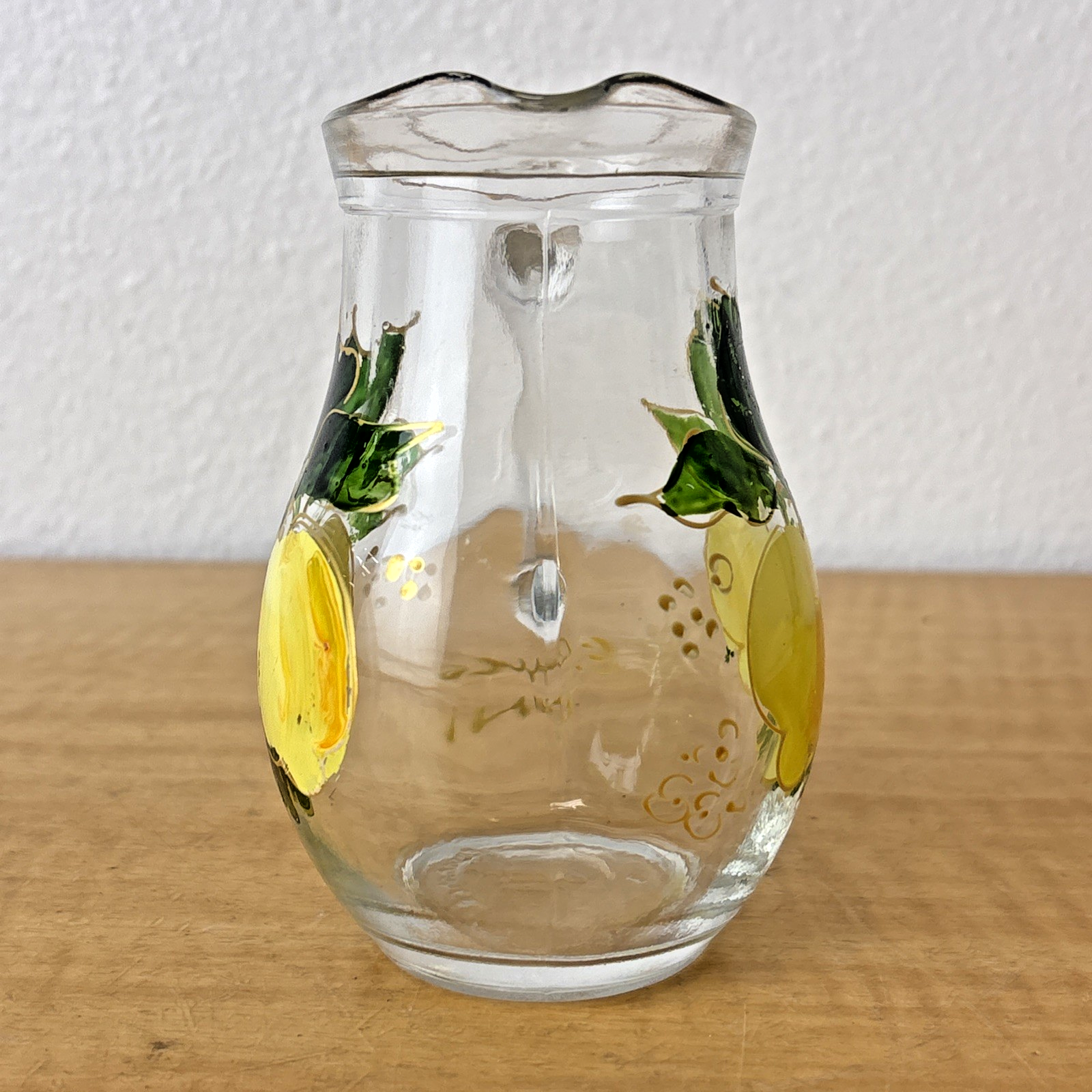 Vintage Pasabahce Small Pitcher 0.25 L Gold Yellow Green Lemon Handpainted