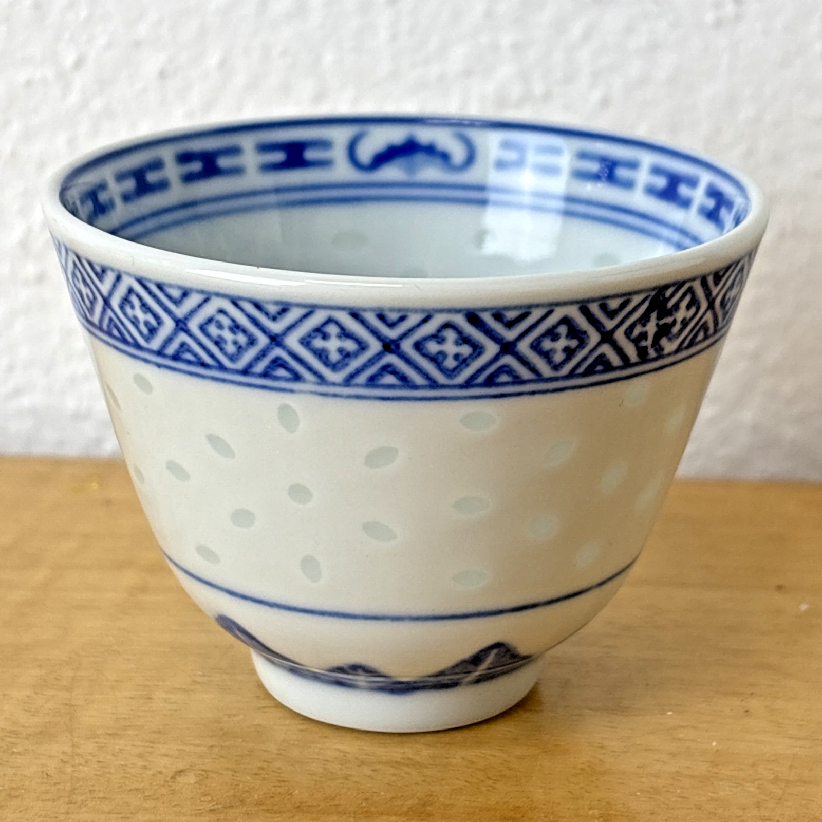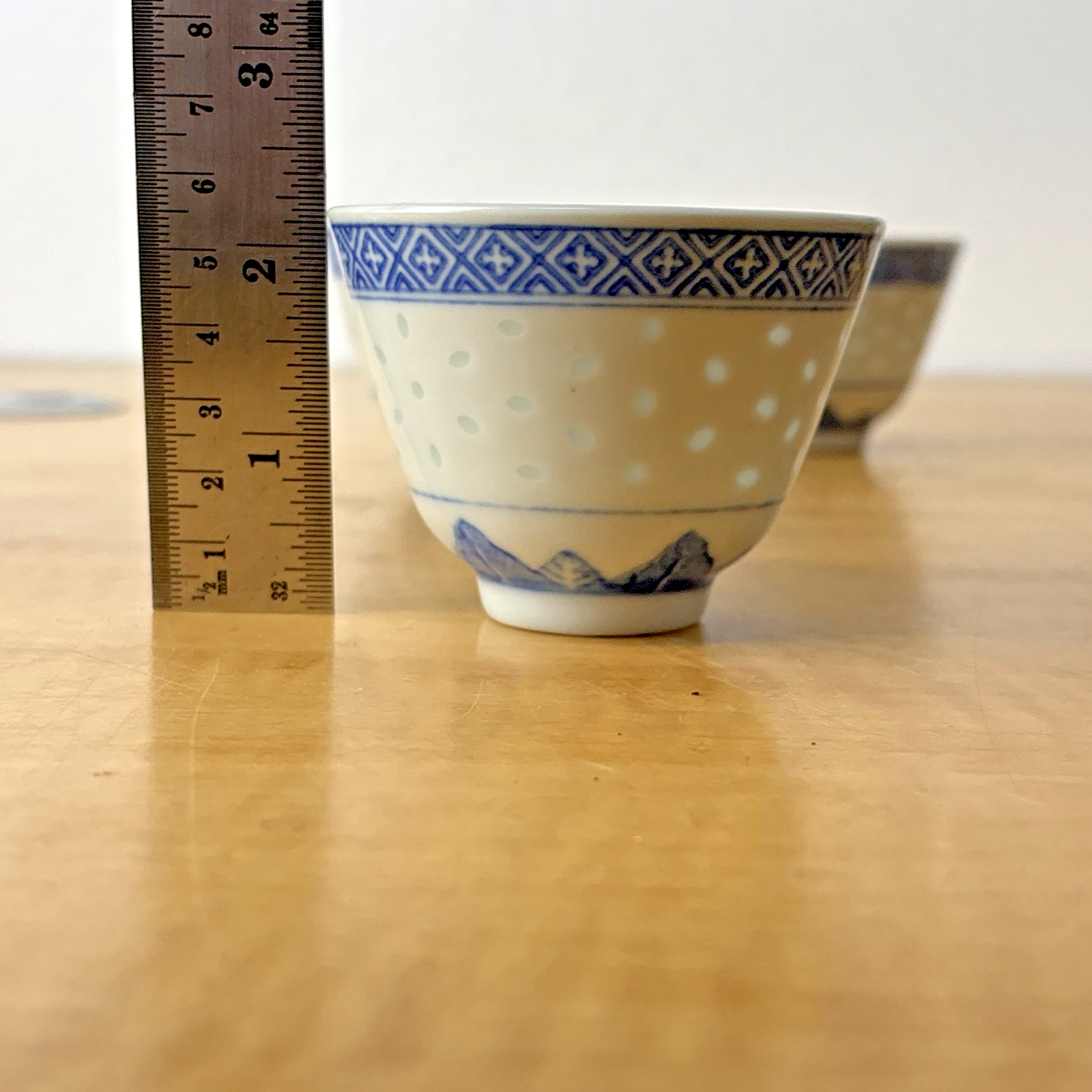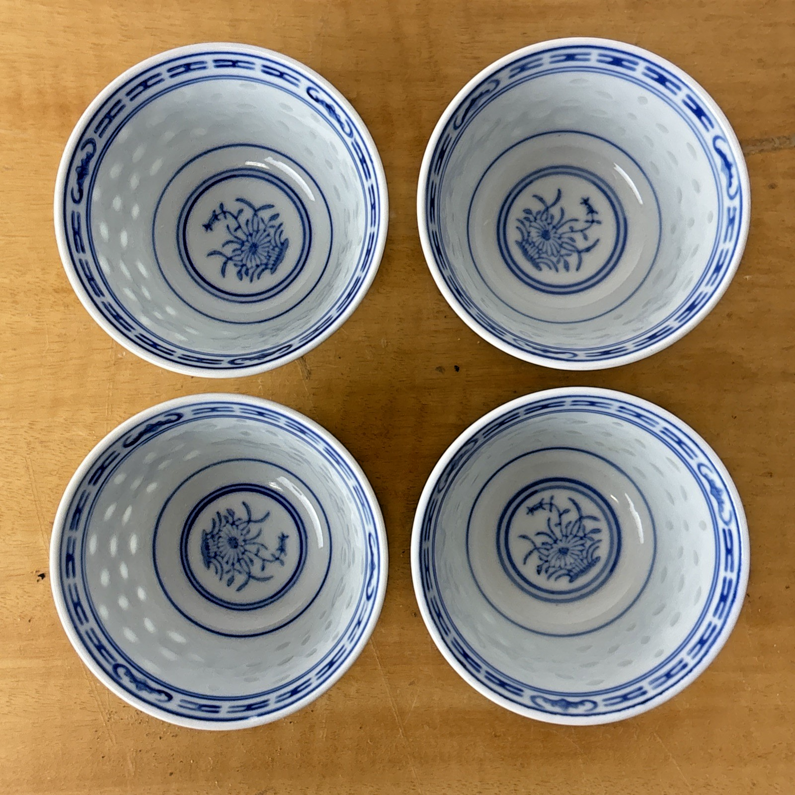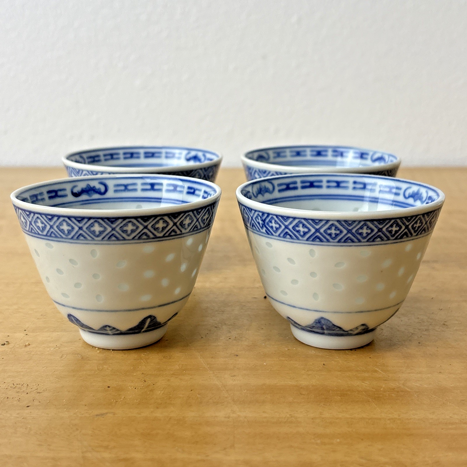 Vintage Porcelain Rice Grain Tea Sake cup CHINA Hand Painted Set of 4