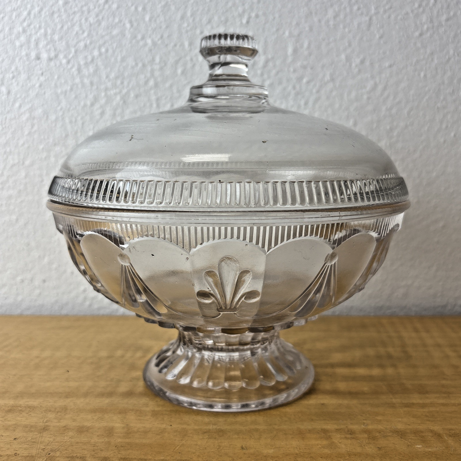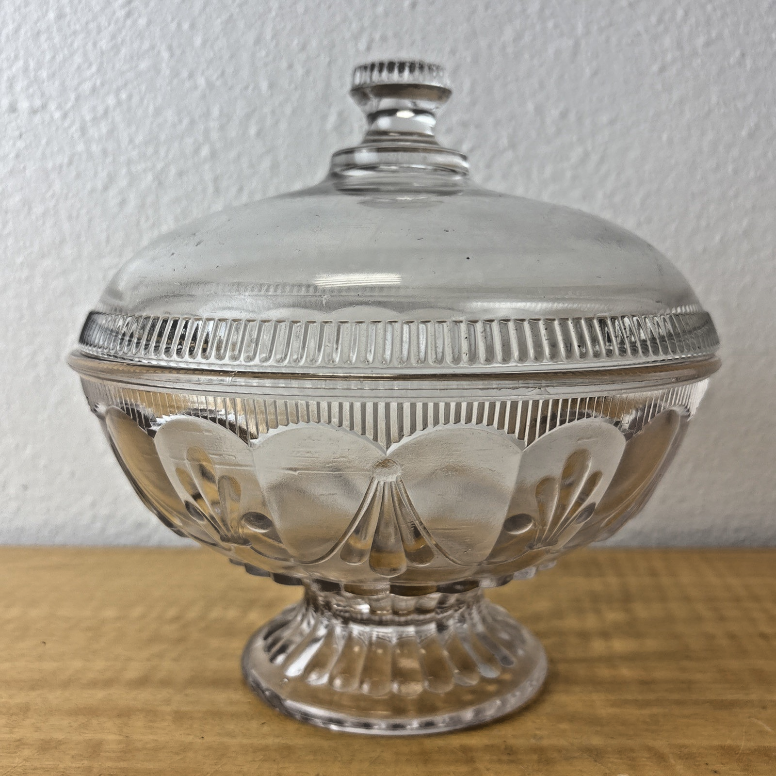 Vintage (Possibly EAPG) Glass Compote with Lid and Stripe Trim 19th Century