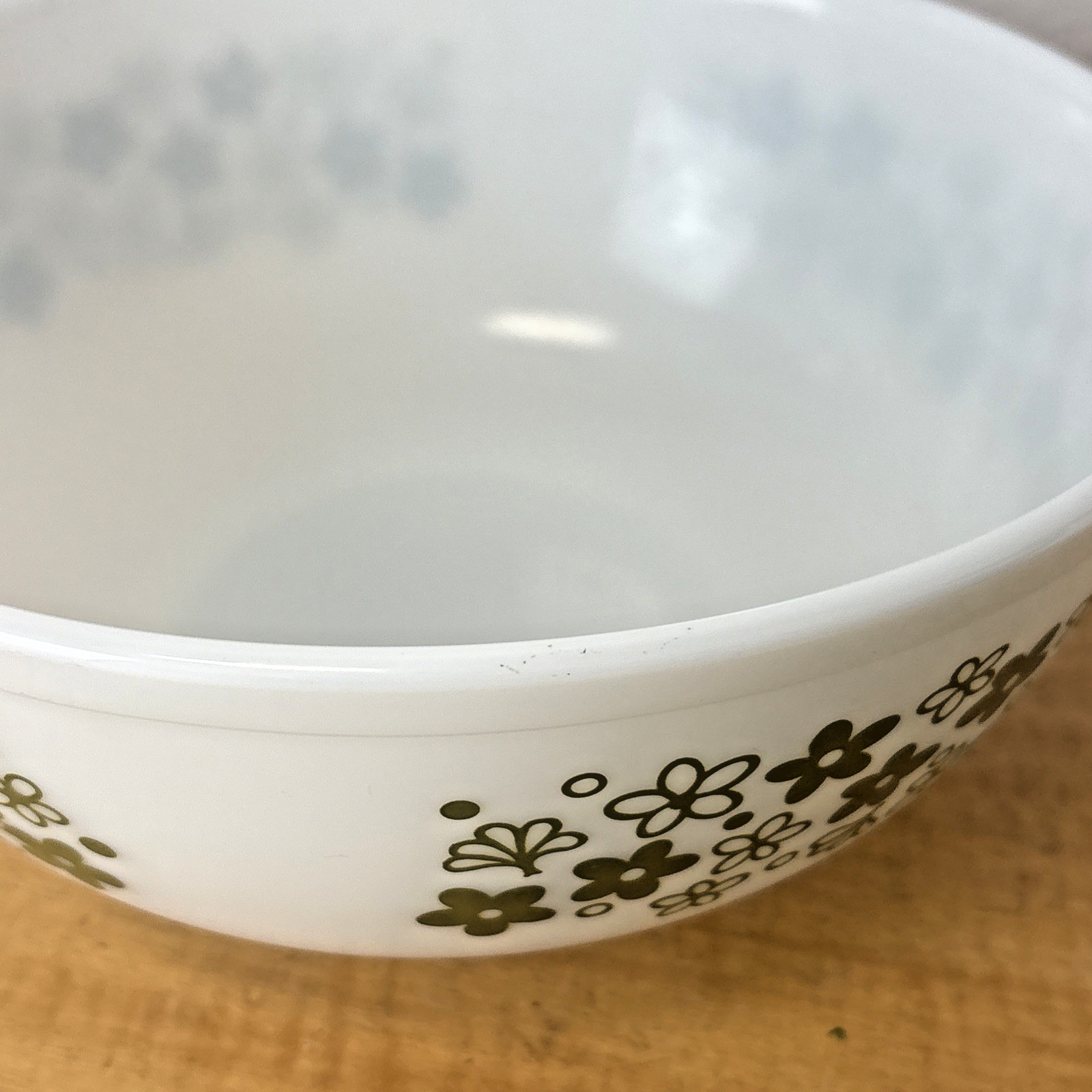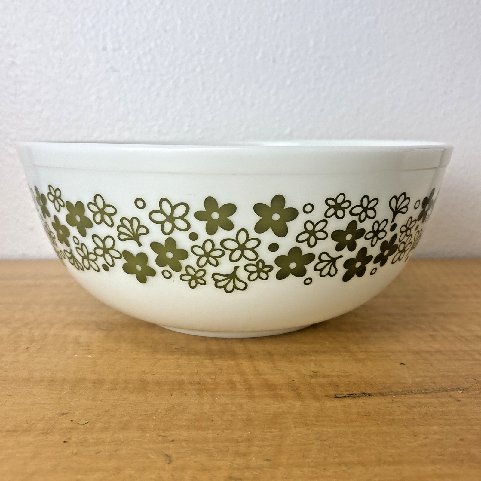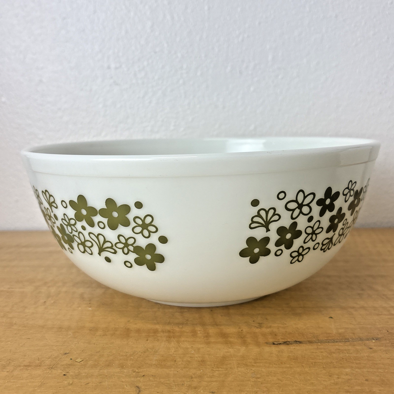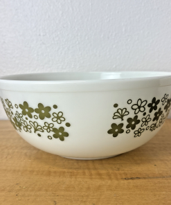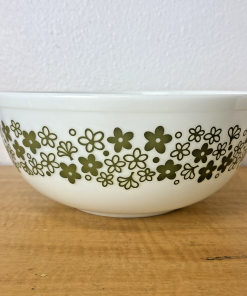 Vintage Pyrex Spring Blossom Crazy Daisy #404 White Green Mixing Bowl 4 Qt