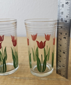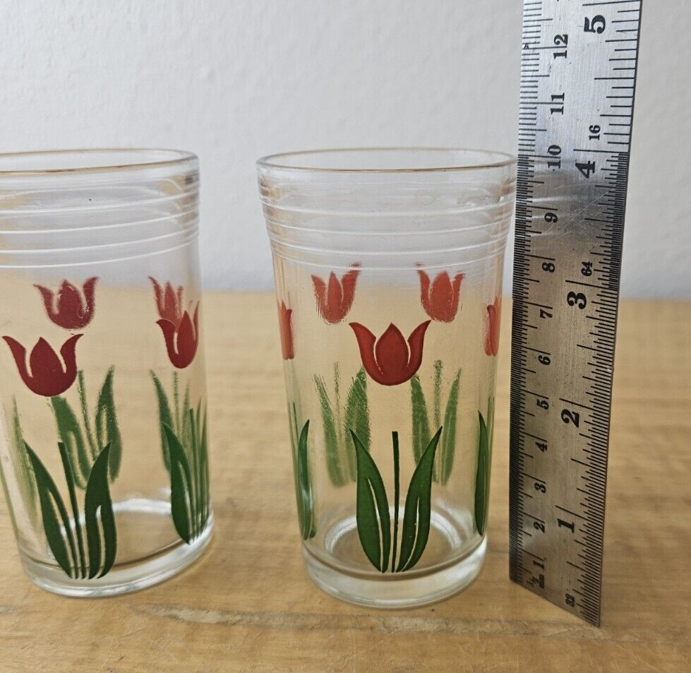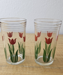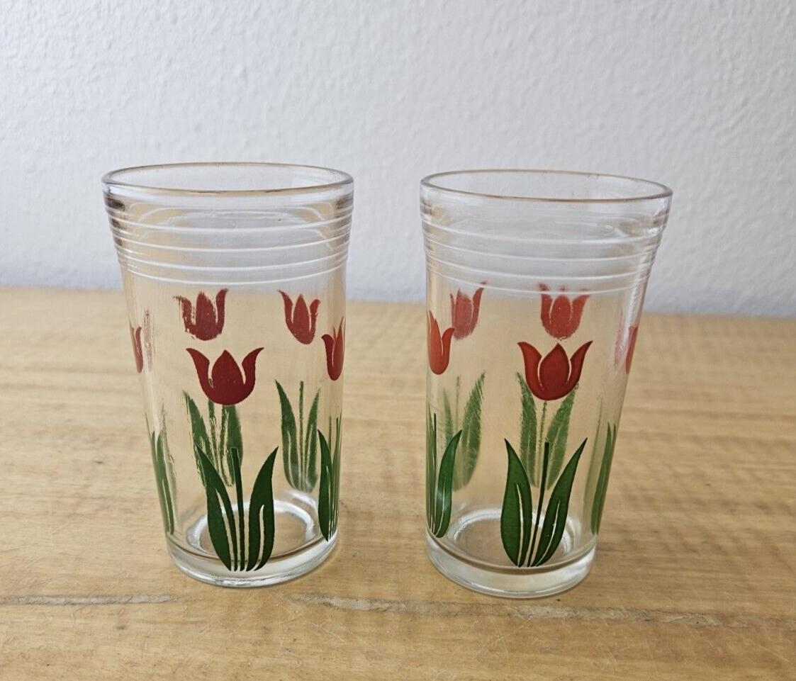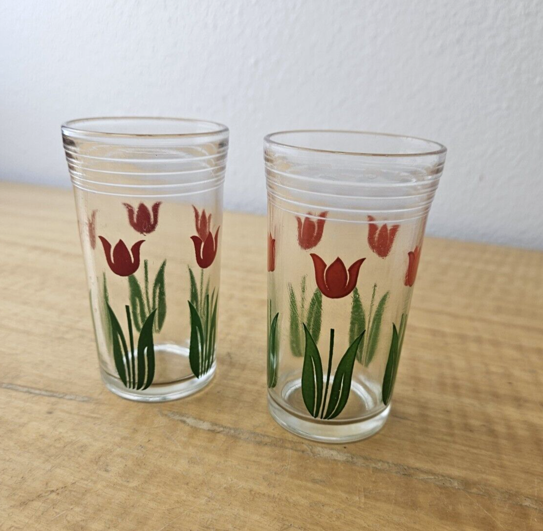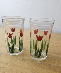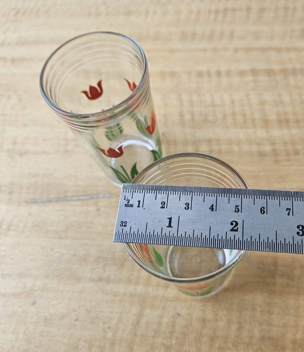 Vintage red tulip juice glasses- set of 2- retro look