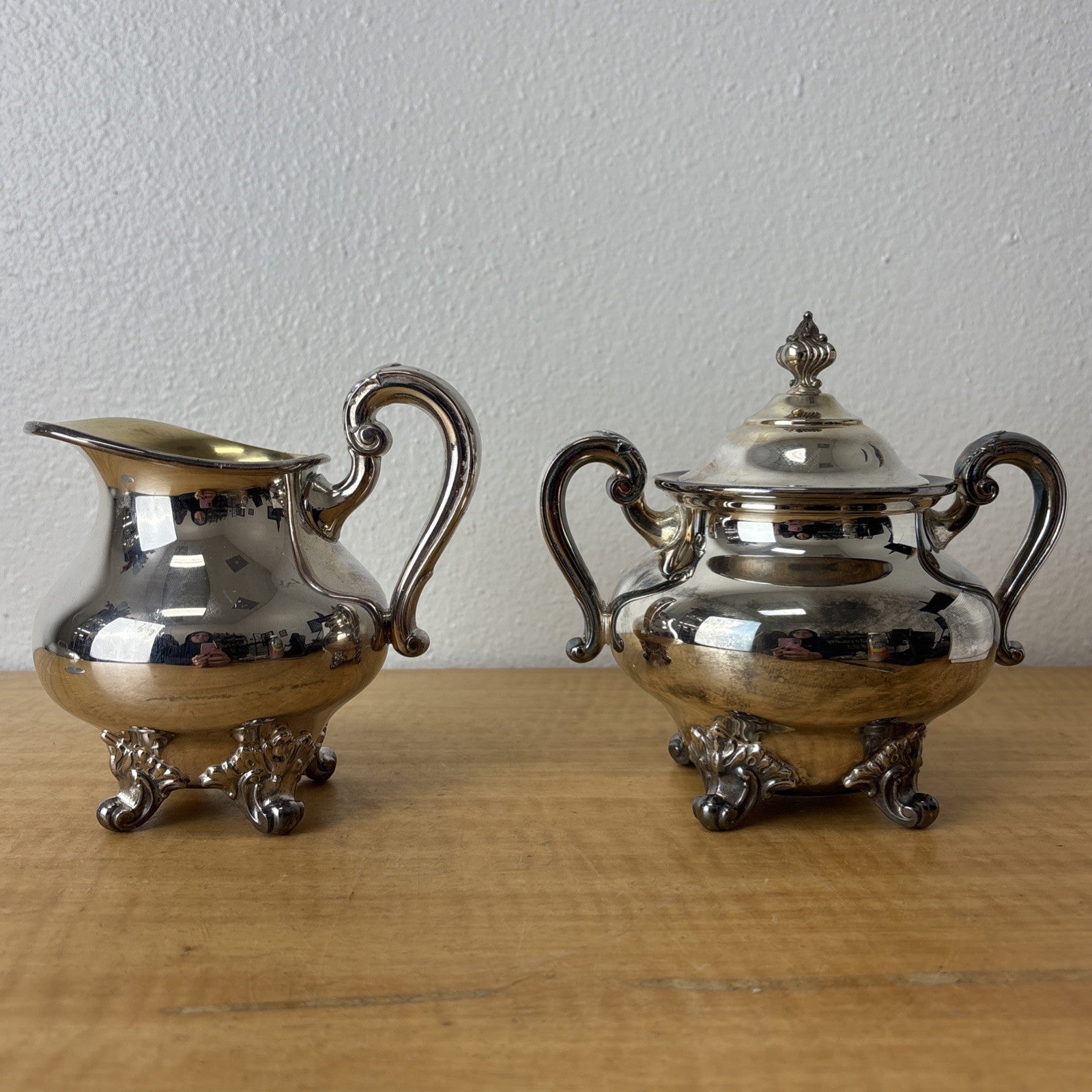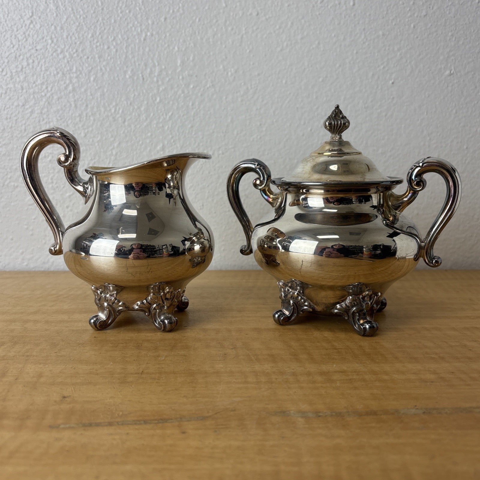 Vintage Reed & Barton Buckingham Silverplate 5600 Regent Creamer Sugar Bowl Set
