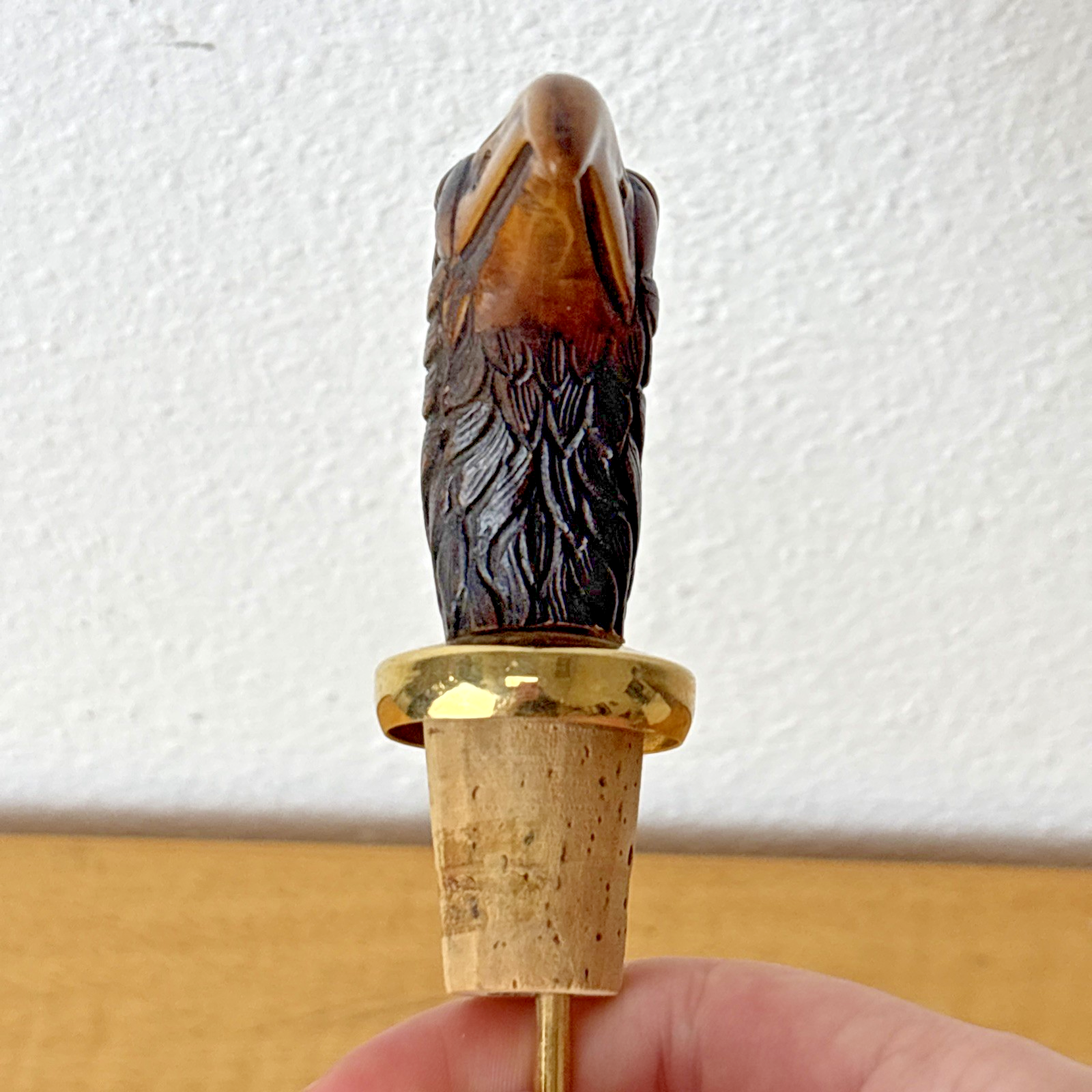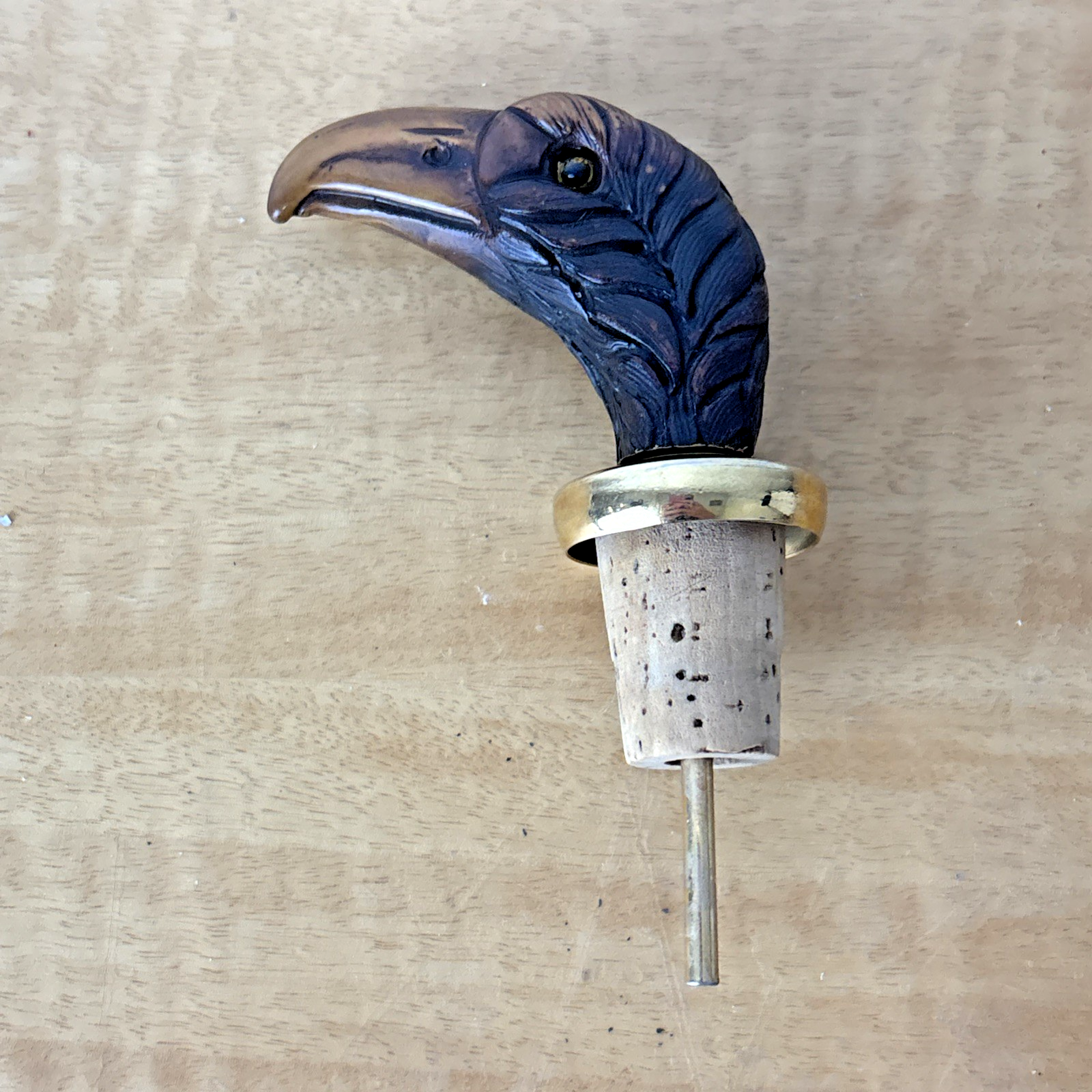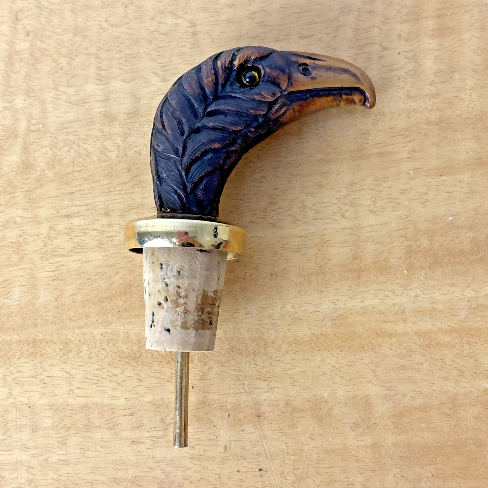 Vintage Regal Eagle Bird Bottle Stopper Carved Wood or Resin Glass Eye