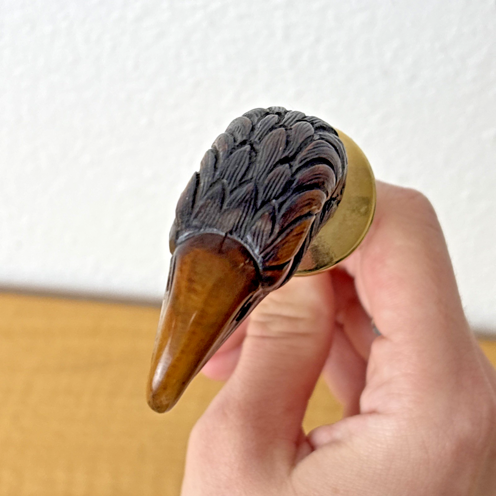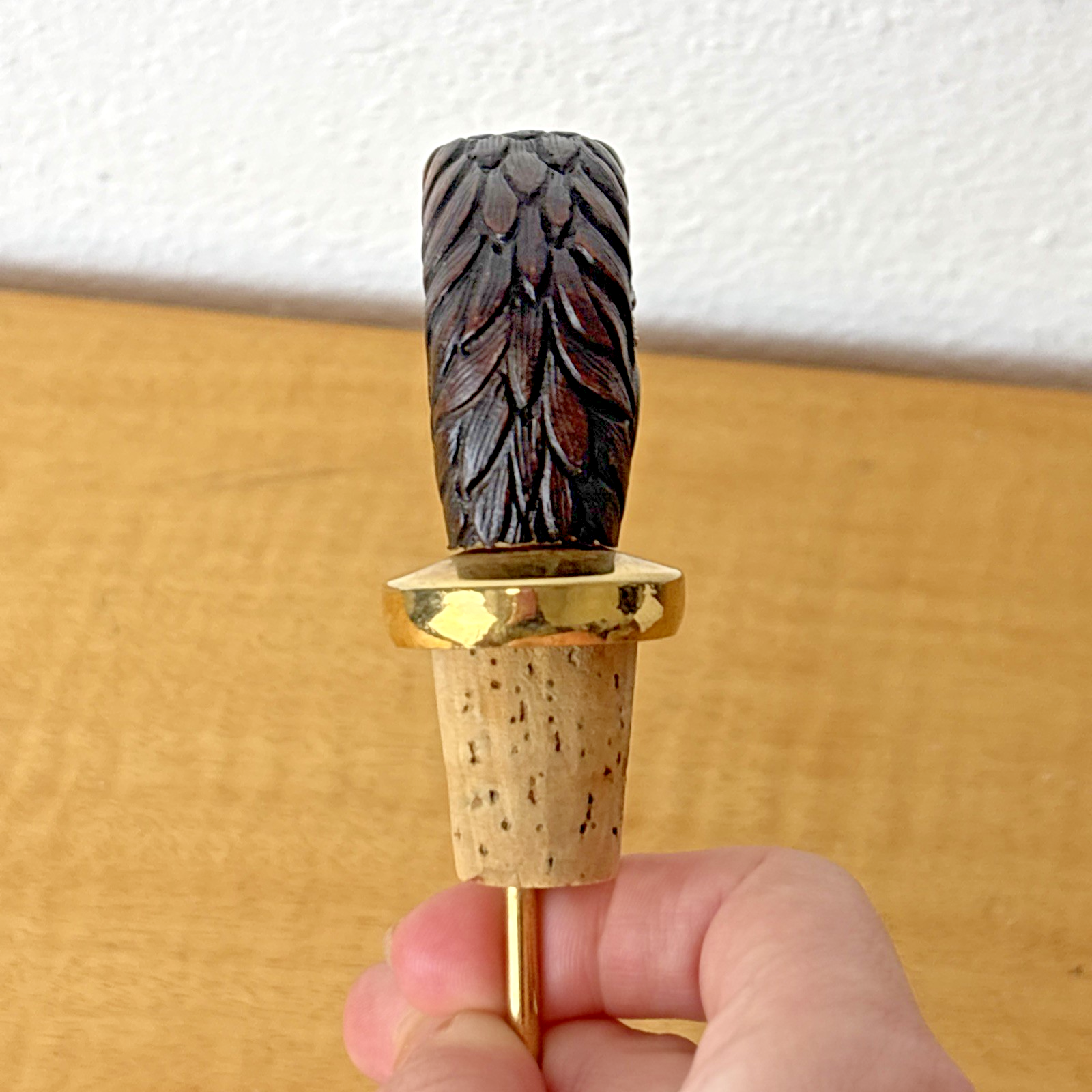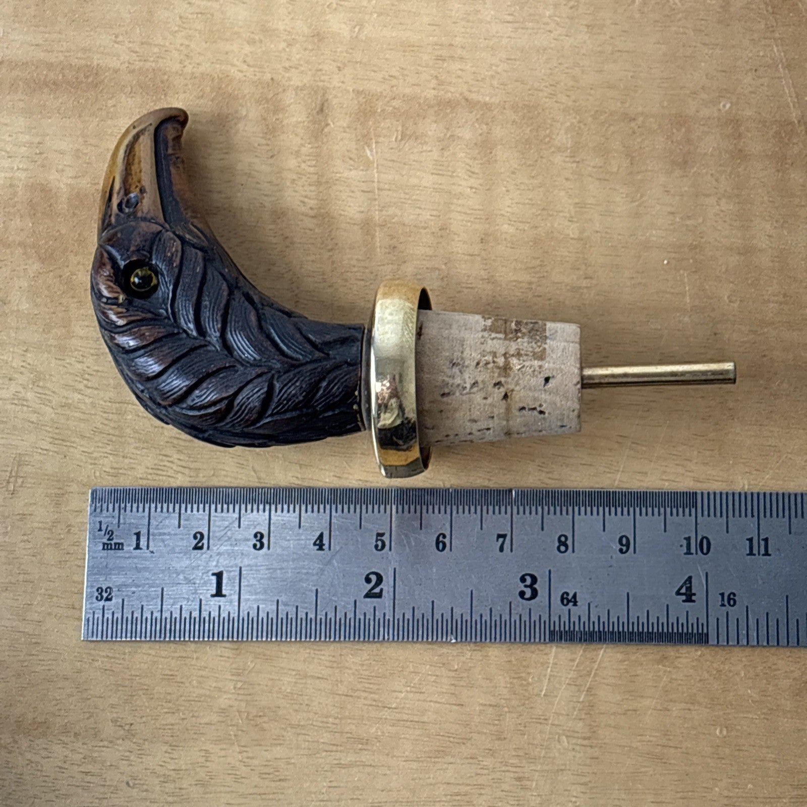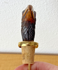 Vintage Regal Eagle Bird Bottle Stopper Carved Wood or Resin Glass Eye