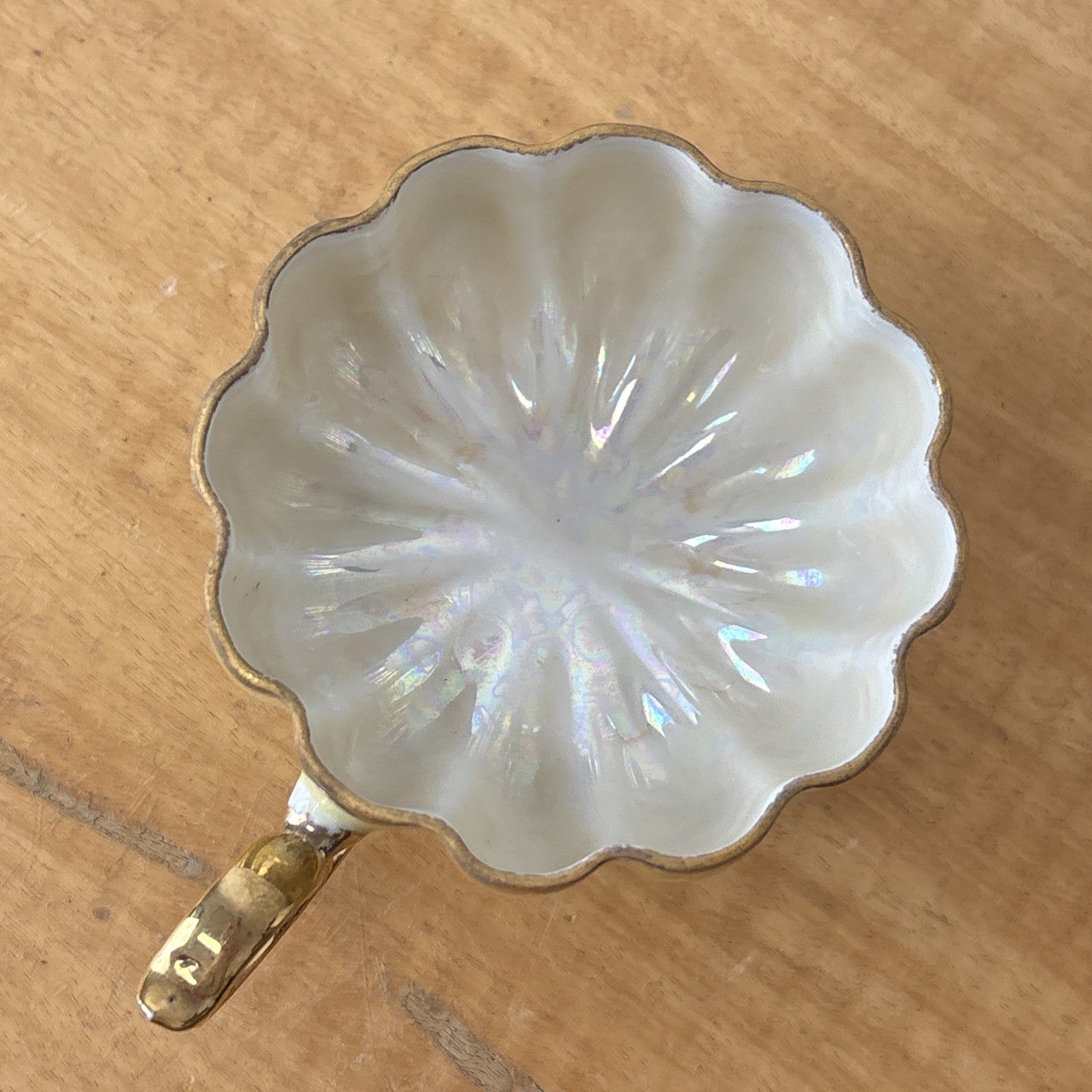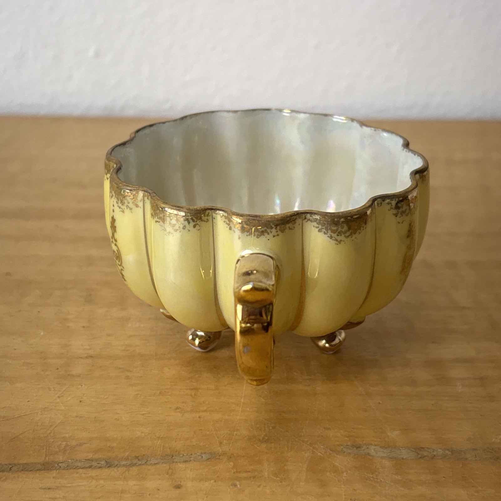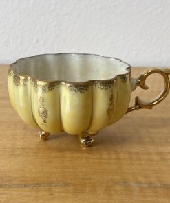 Vintage Royal Sealy China Green & Gold Footed Tea Cup & Saucer Japan Iridescent