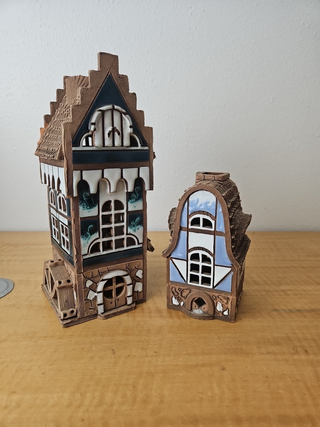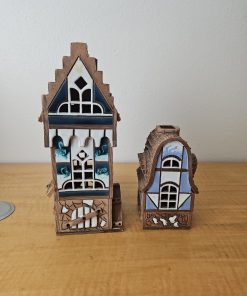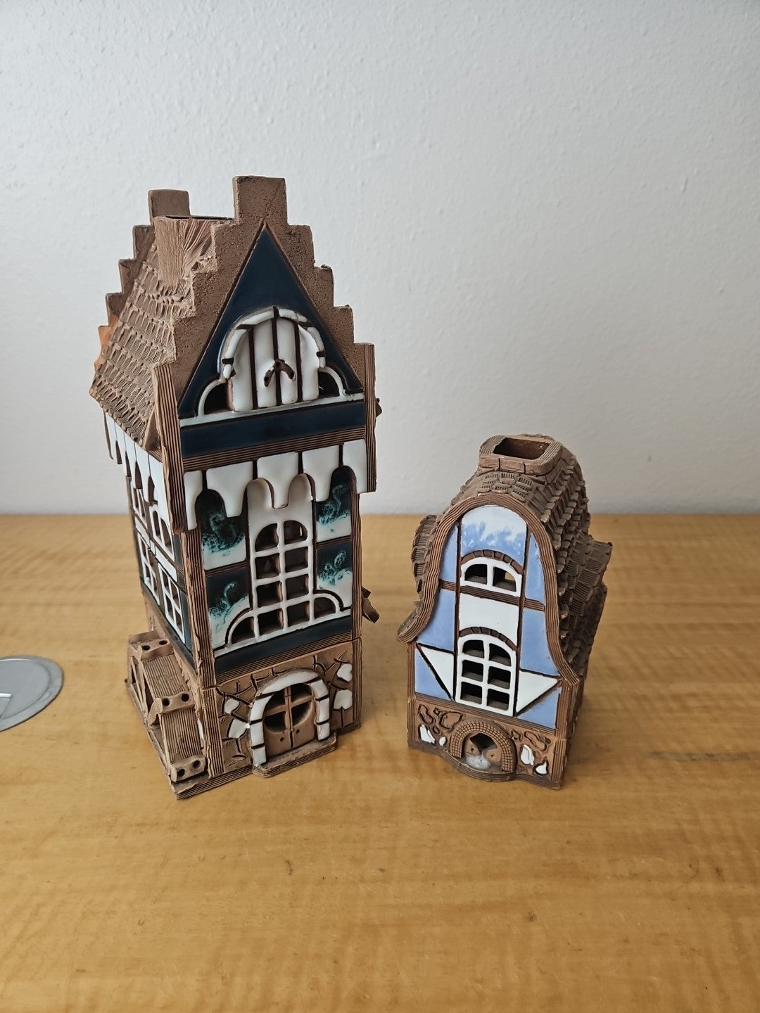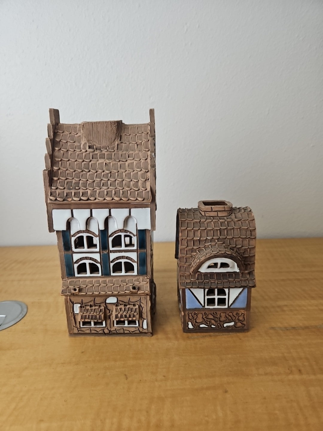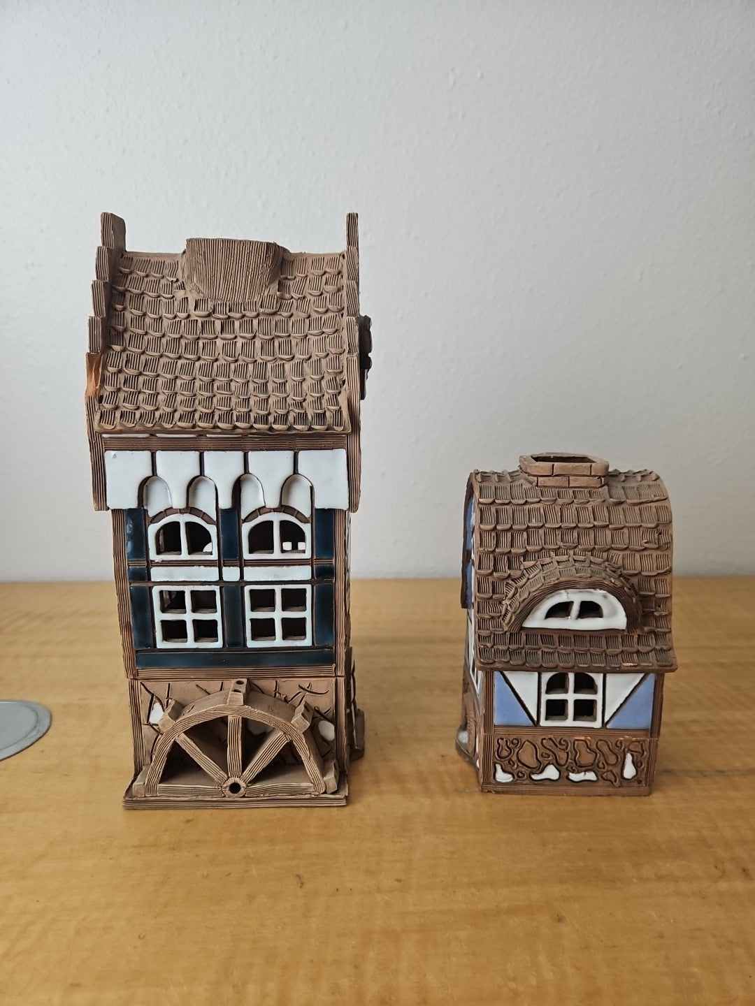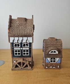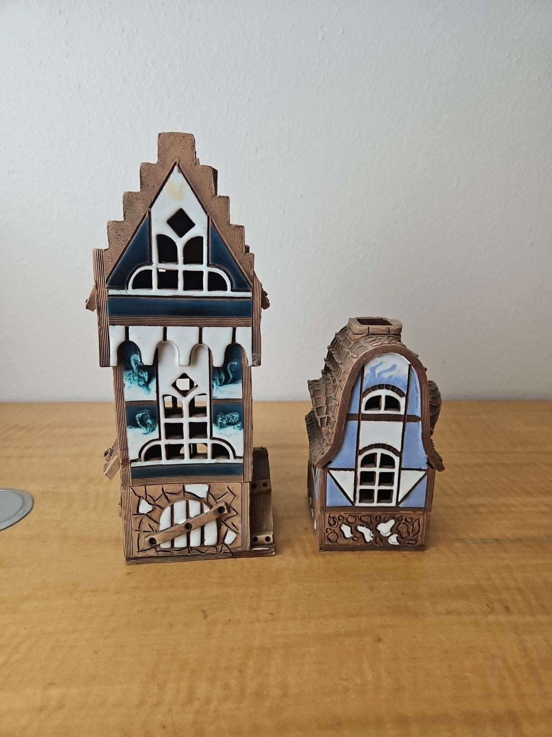 Vintage Set of 2 Cottage House tea light Candle Holder pottery Lithuania style
