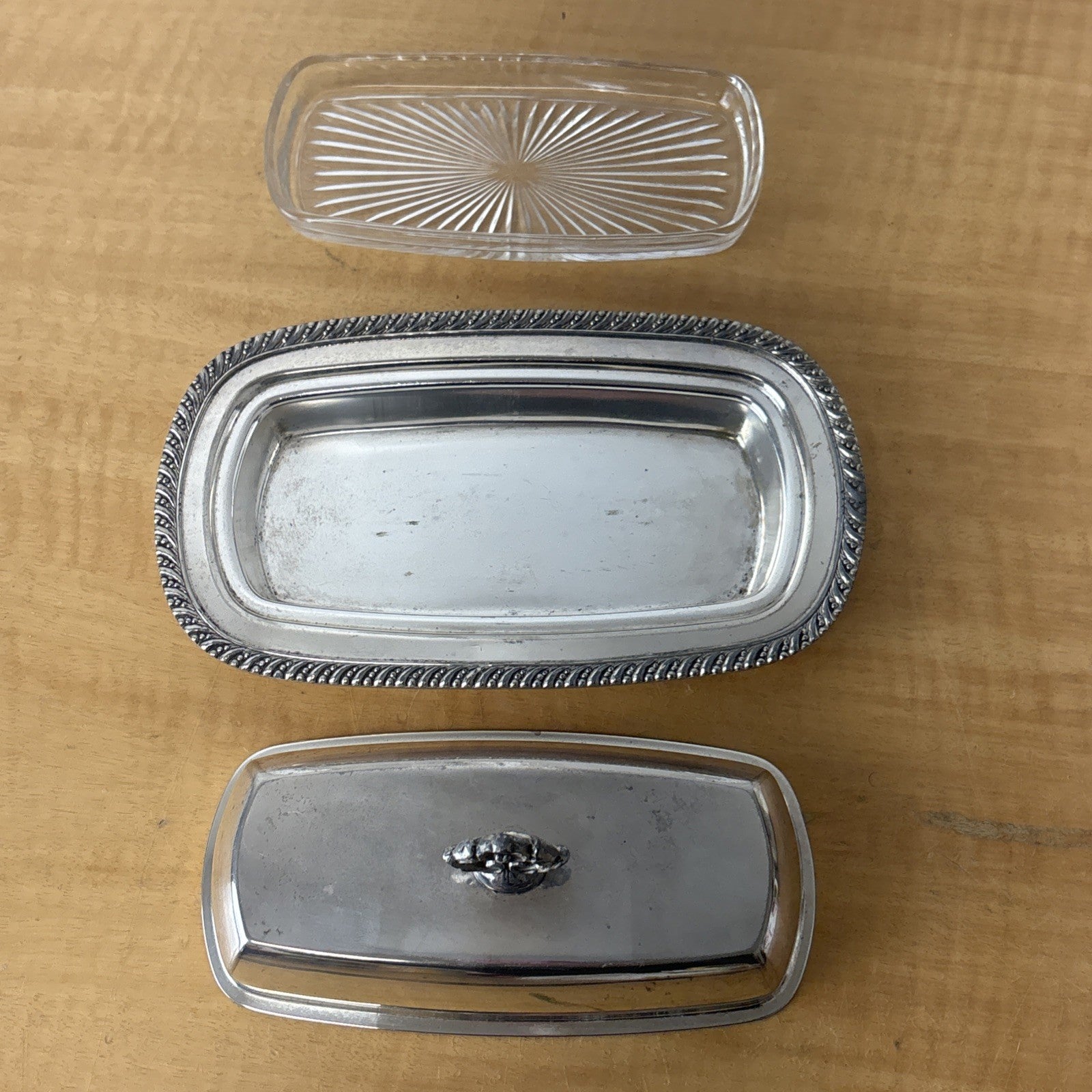 Vintage Silver on Copper Hartford Sterling Co. Butter Dish w/ Glass Insert