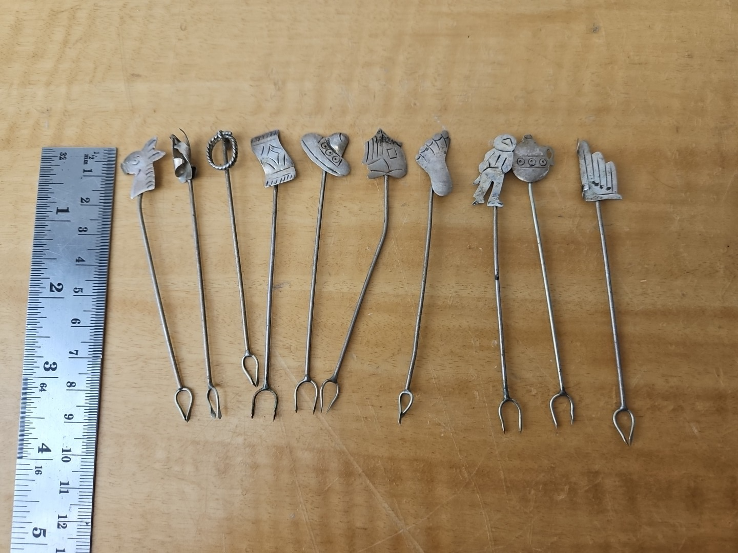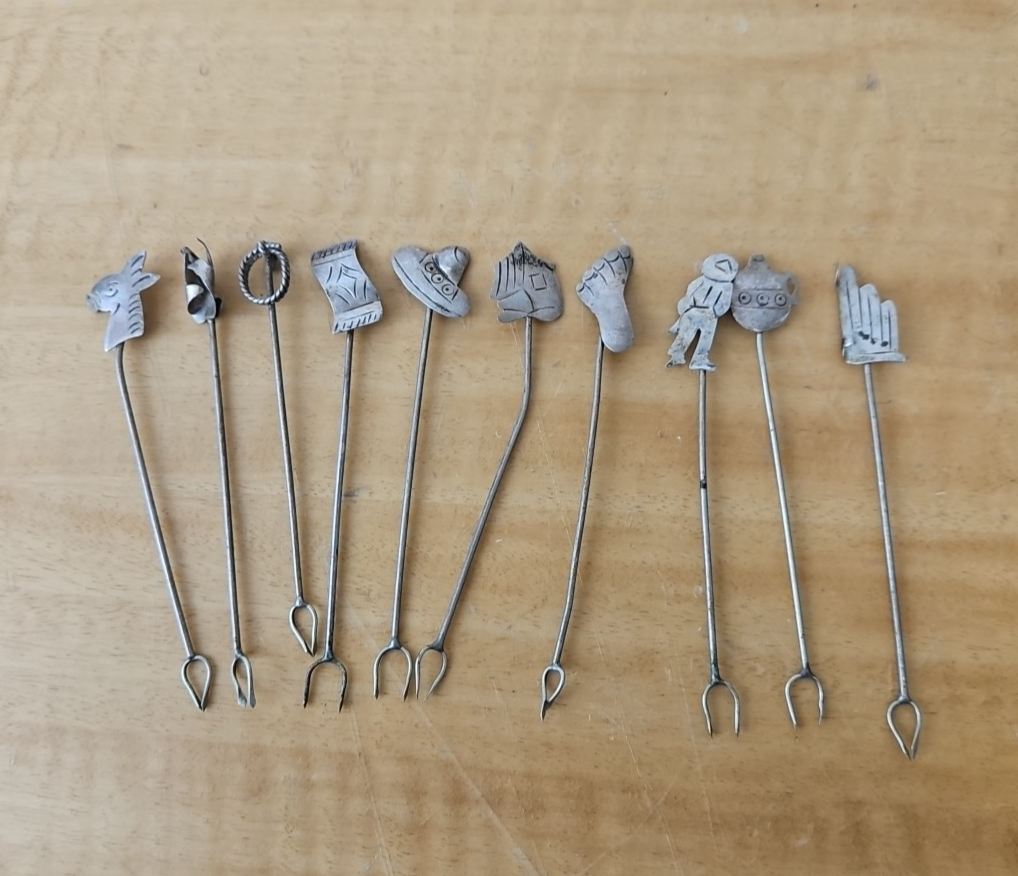 Vintage Southwestern Mexico STERLING SILVER Hors D’oeuvre 10 Cocktail Pick Fork