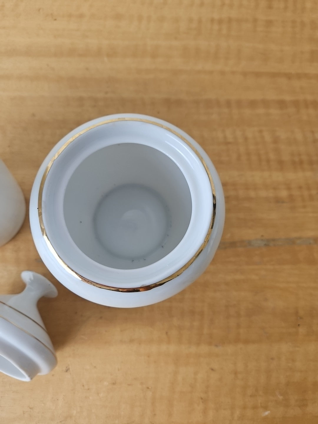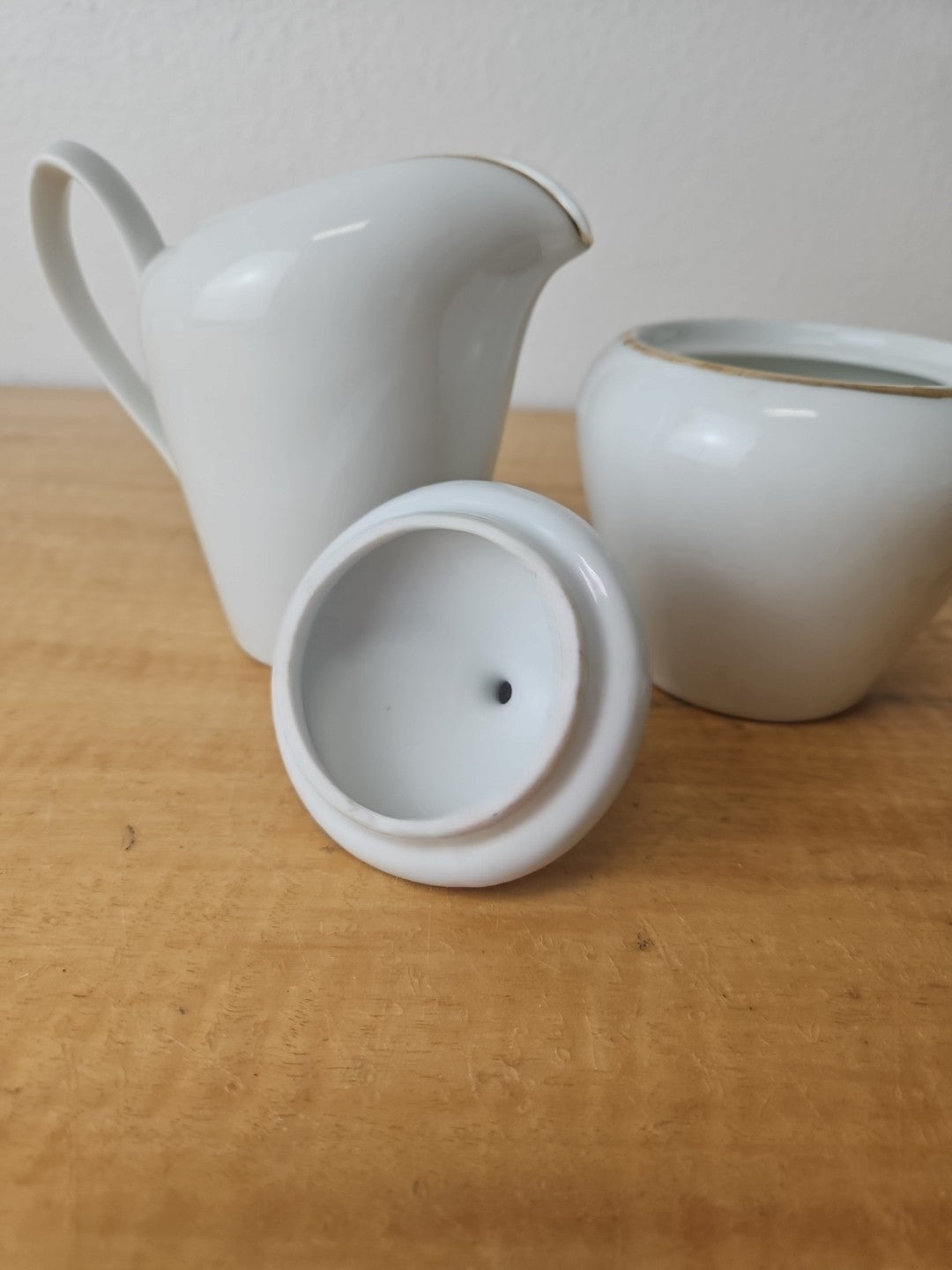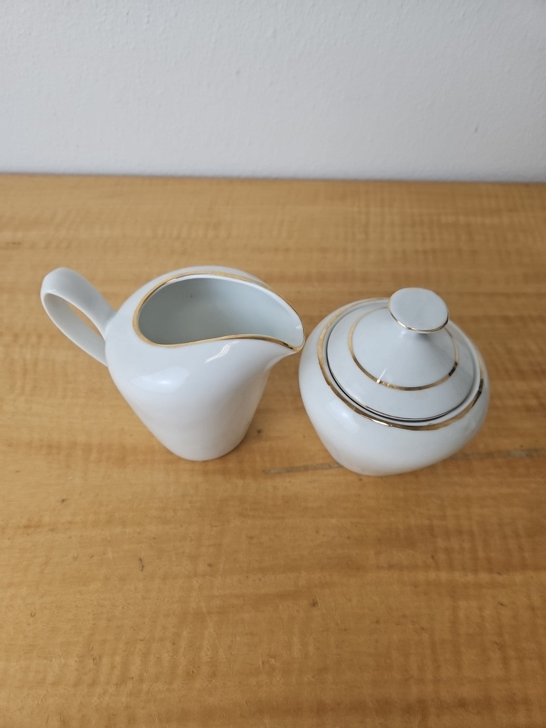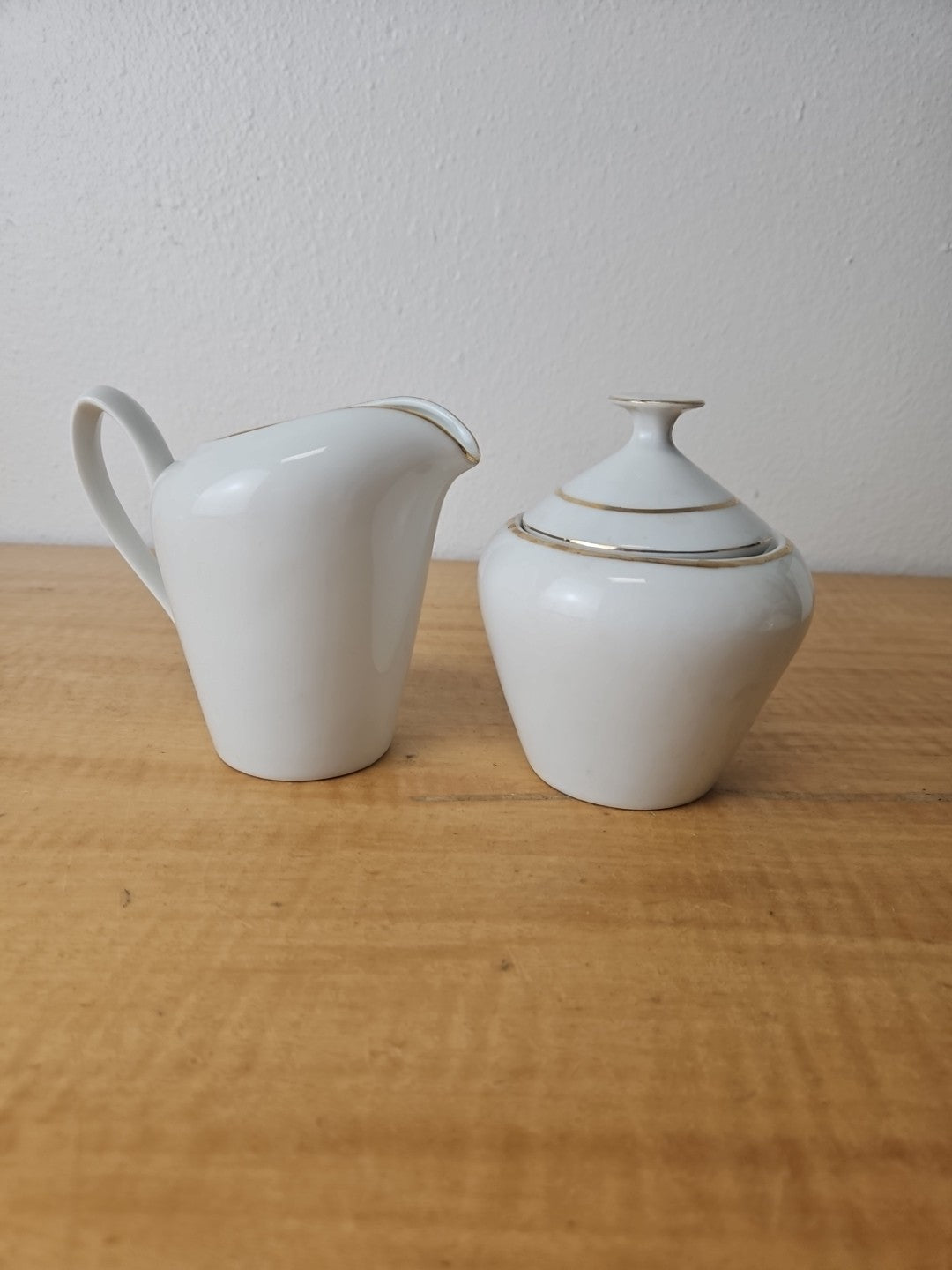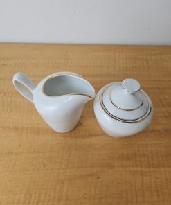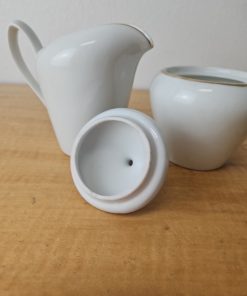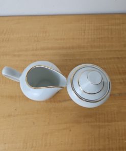 Vintage SRS Brazil China Creamer & Sugar Set White Gold Band Lid