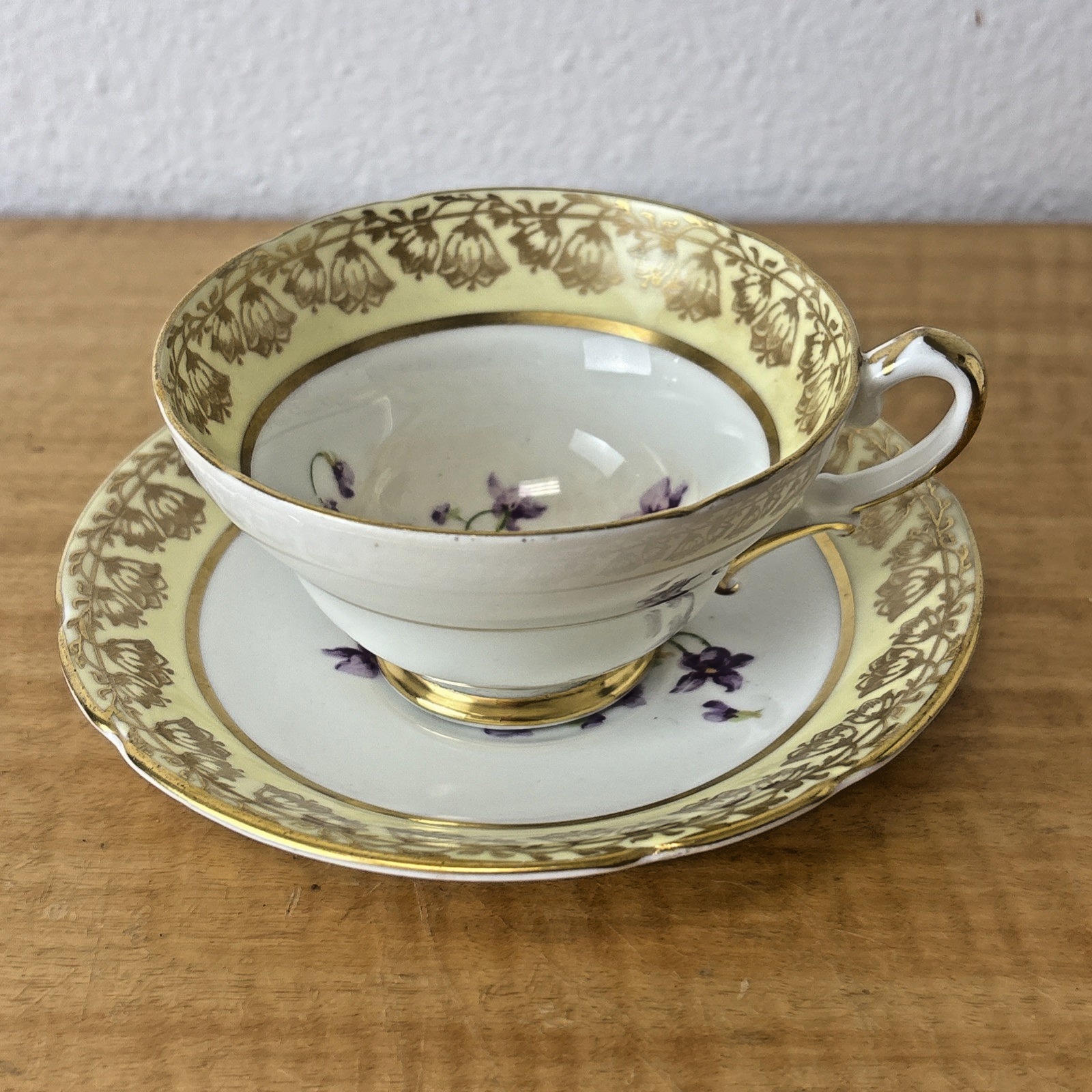Vintage Stanley Bone China Cup And Saucer Pale Floral Print Yellow England
