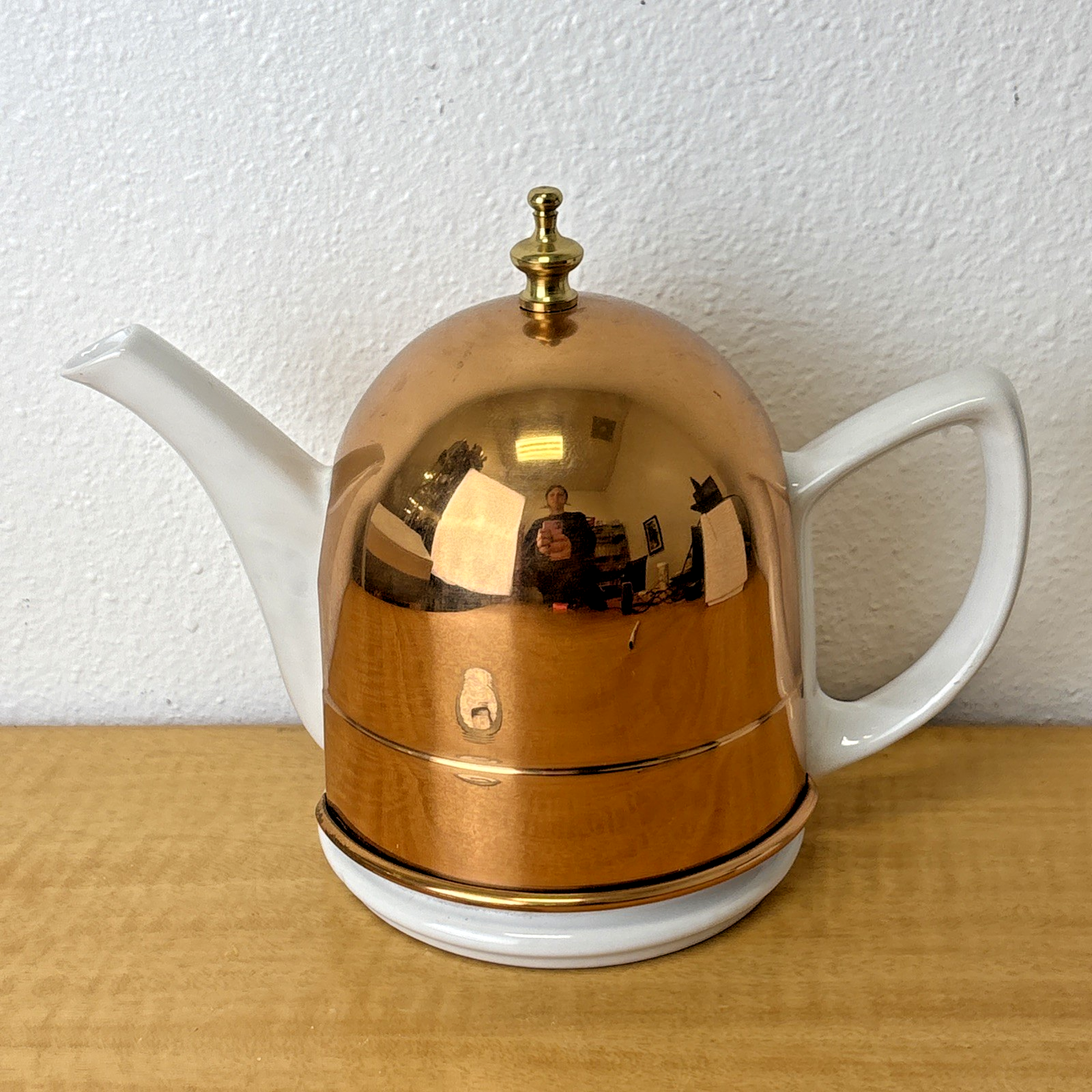 Vintage Stuart Hart Korea Copper Insulated Cozy Covered Ceramic Teapot Kettle