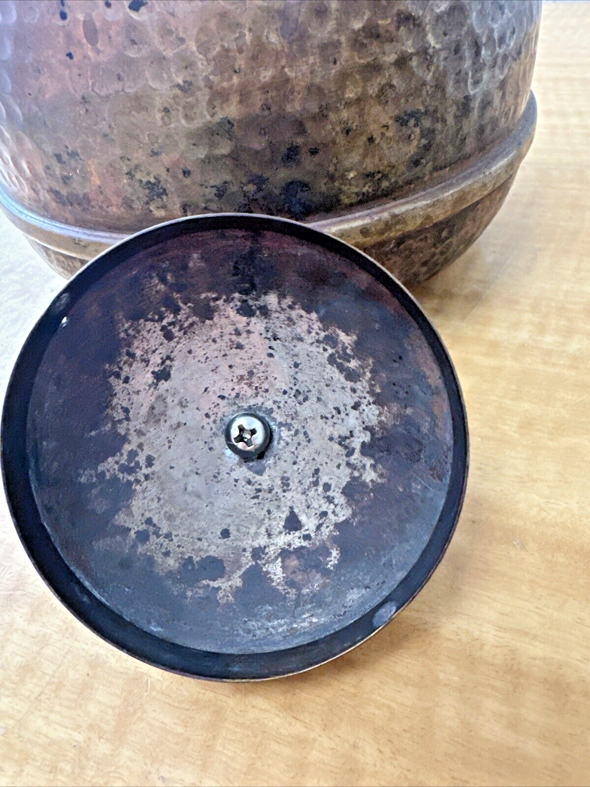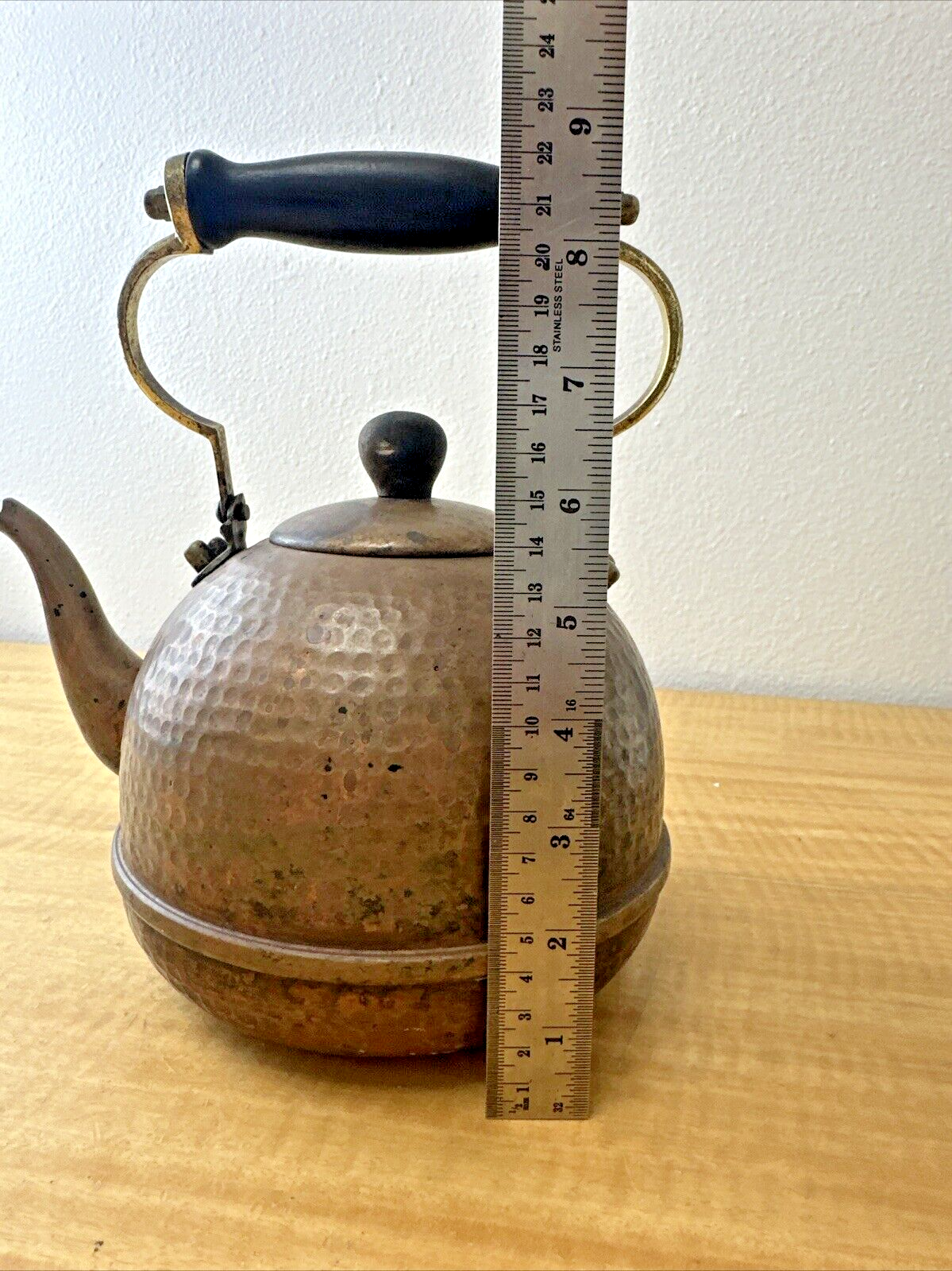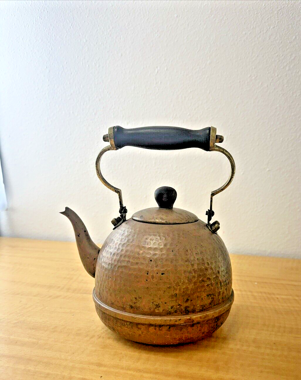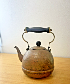 Vintage Tea Kettle Pot Handcrafted Hammered Copper Brass Finish Handle
