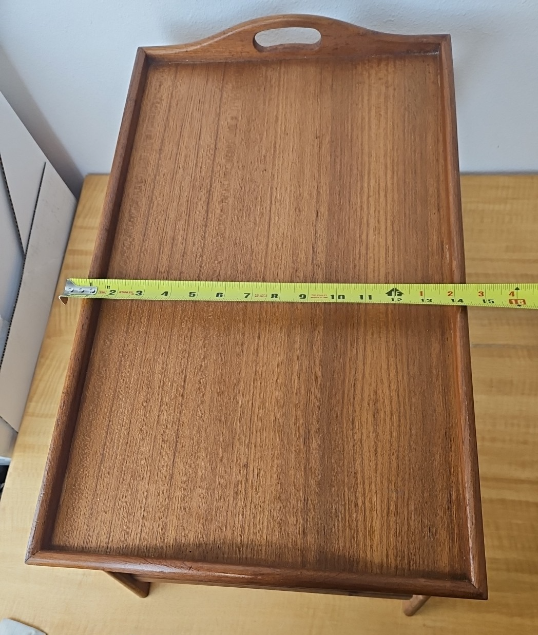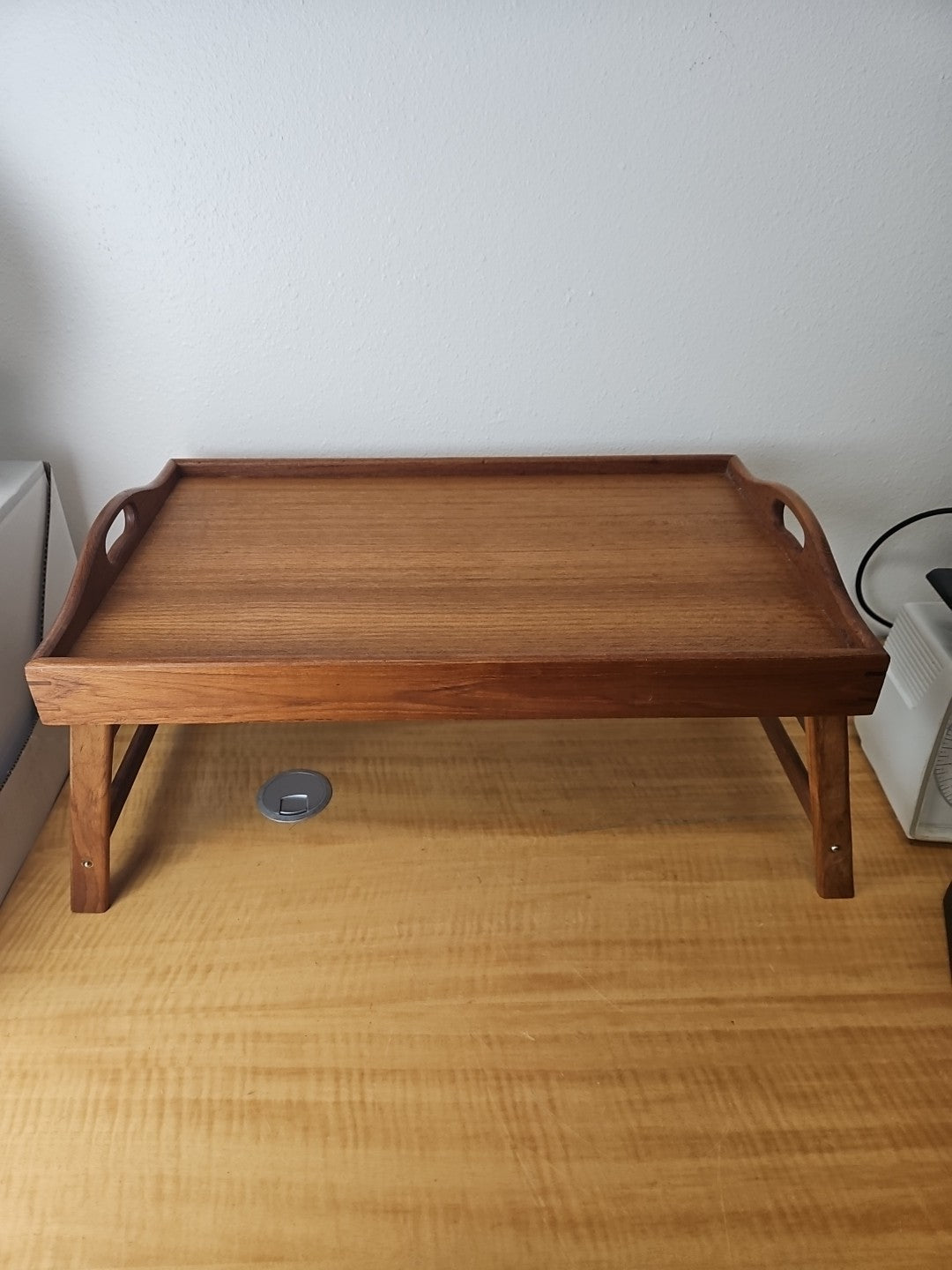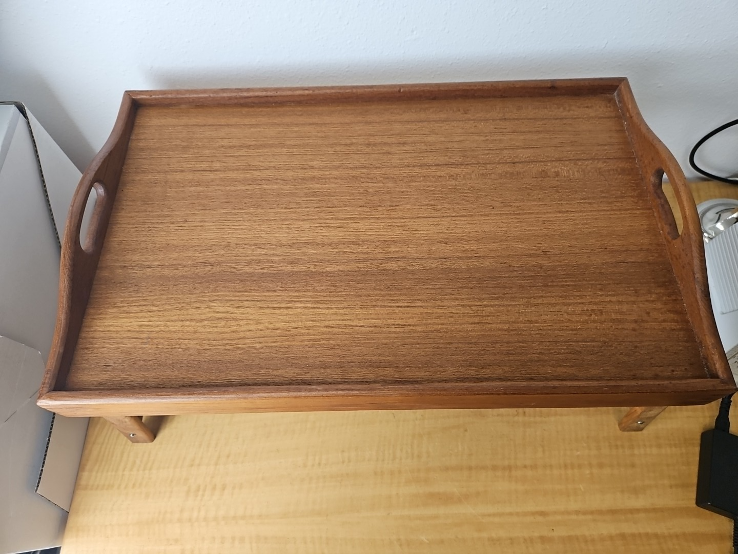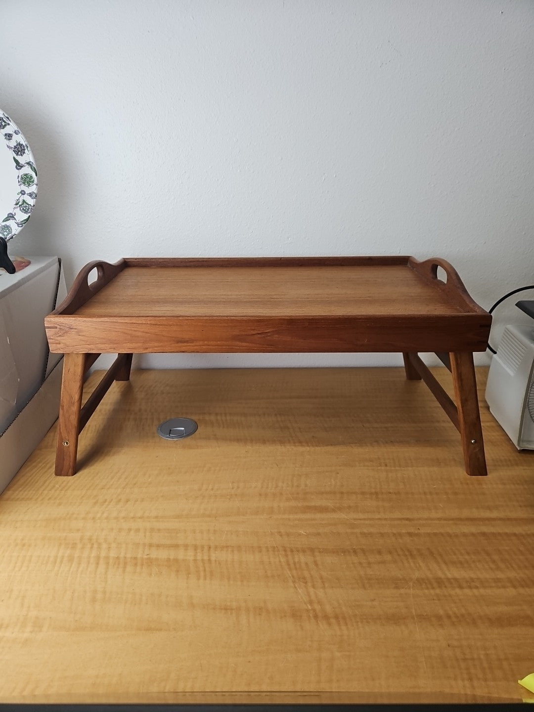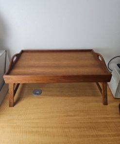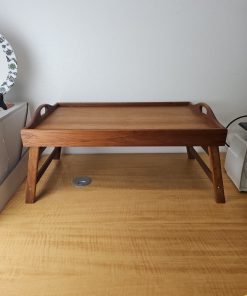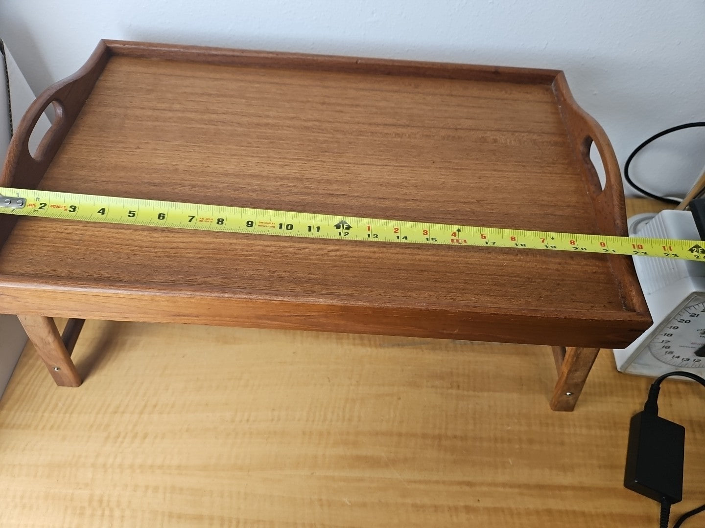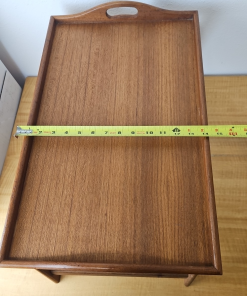 Vintage Teakwood Folding Bed Serving Tray Table with Handles (maybe Dolphin) 22″