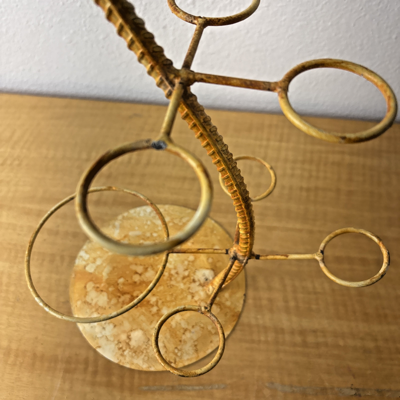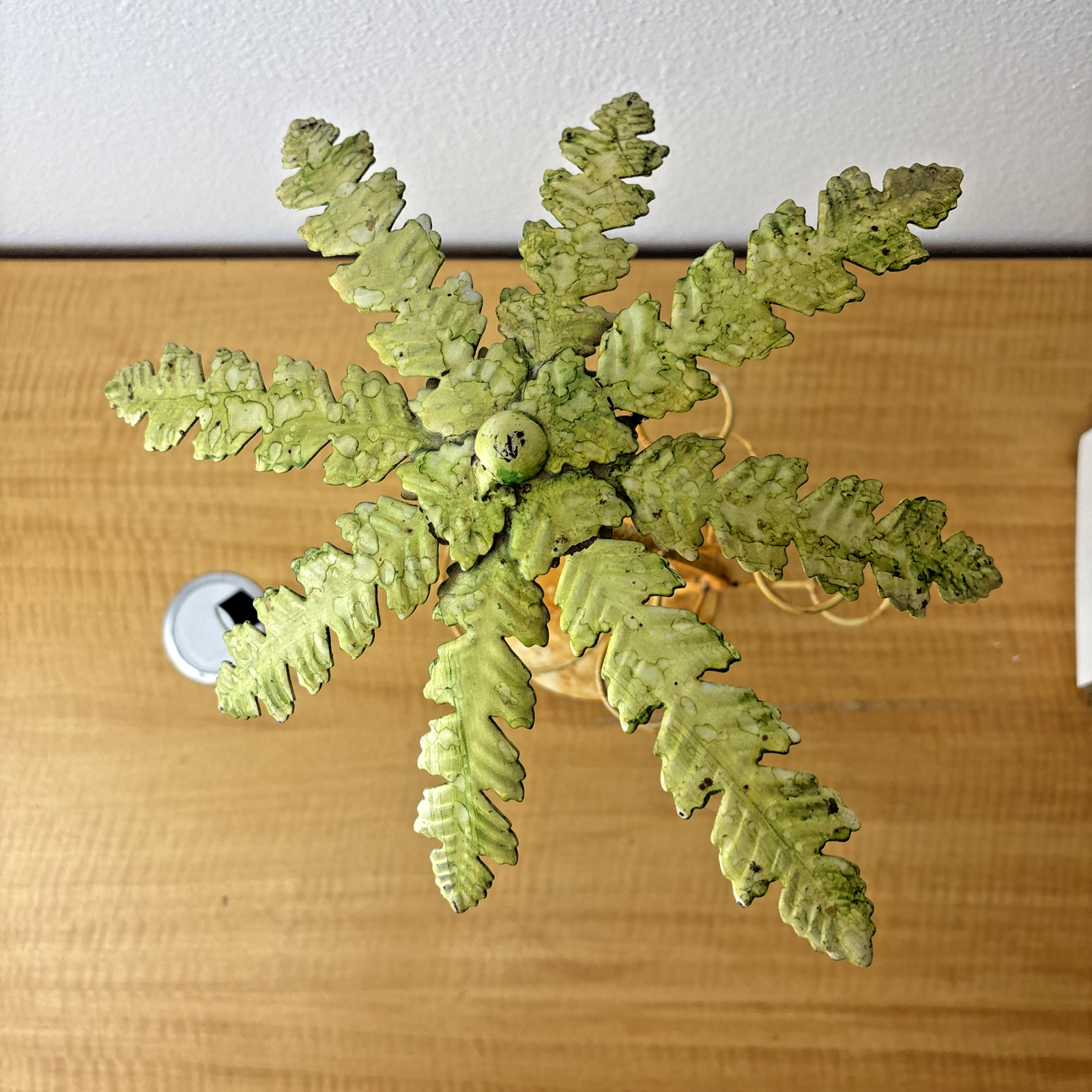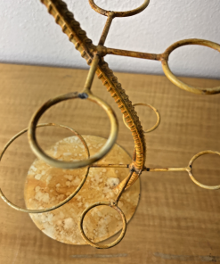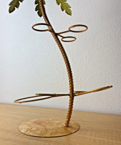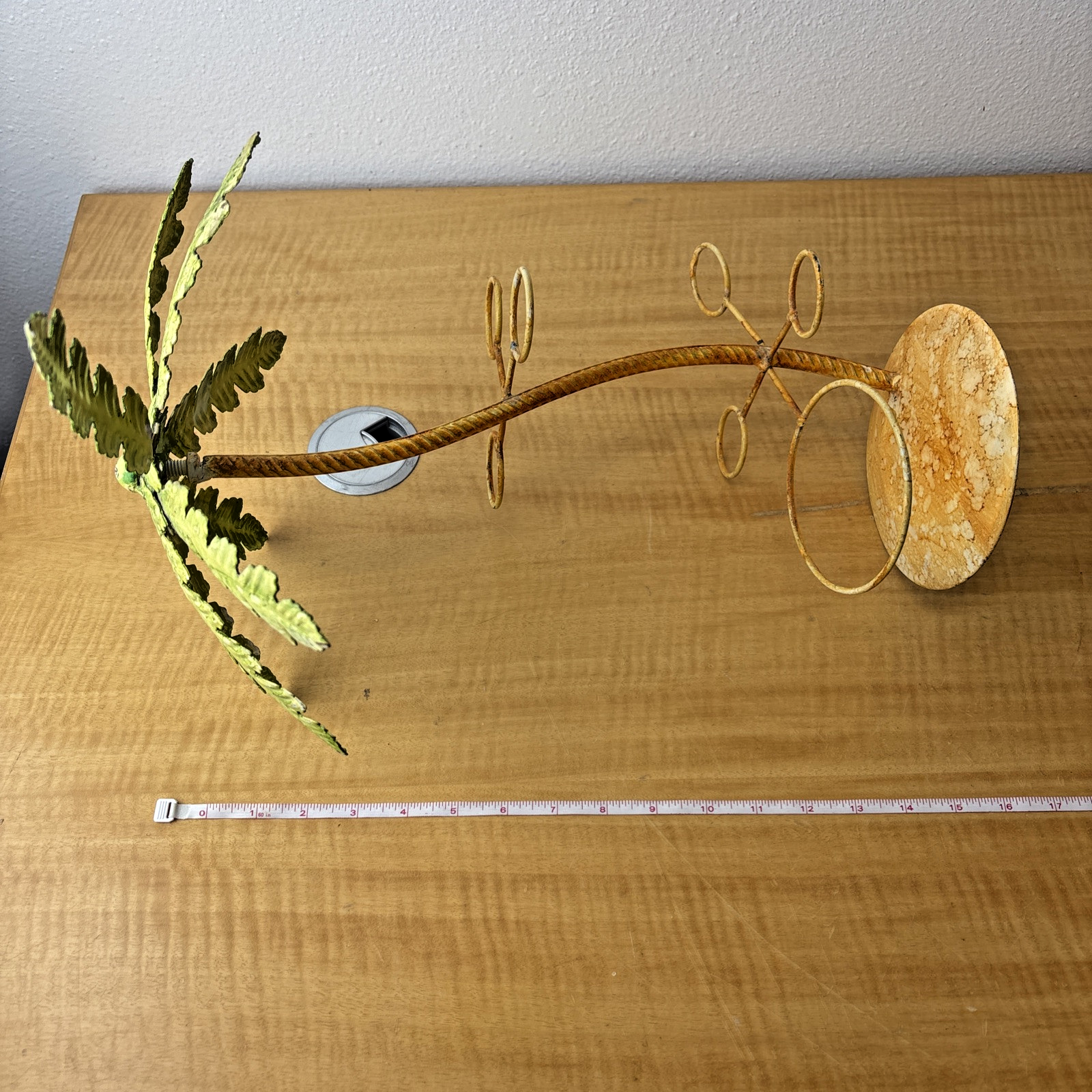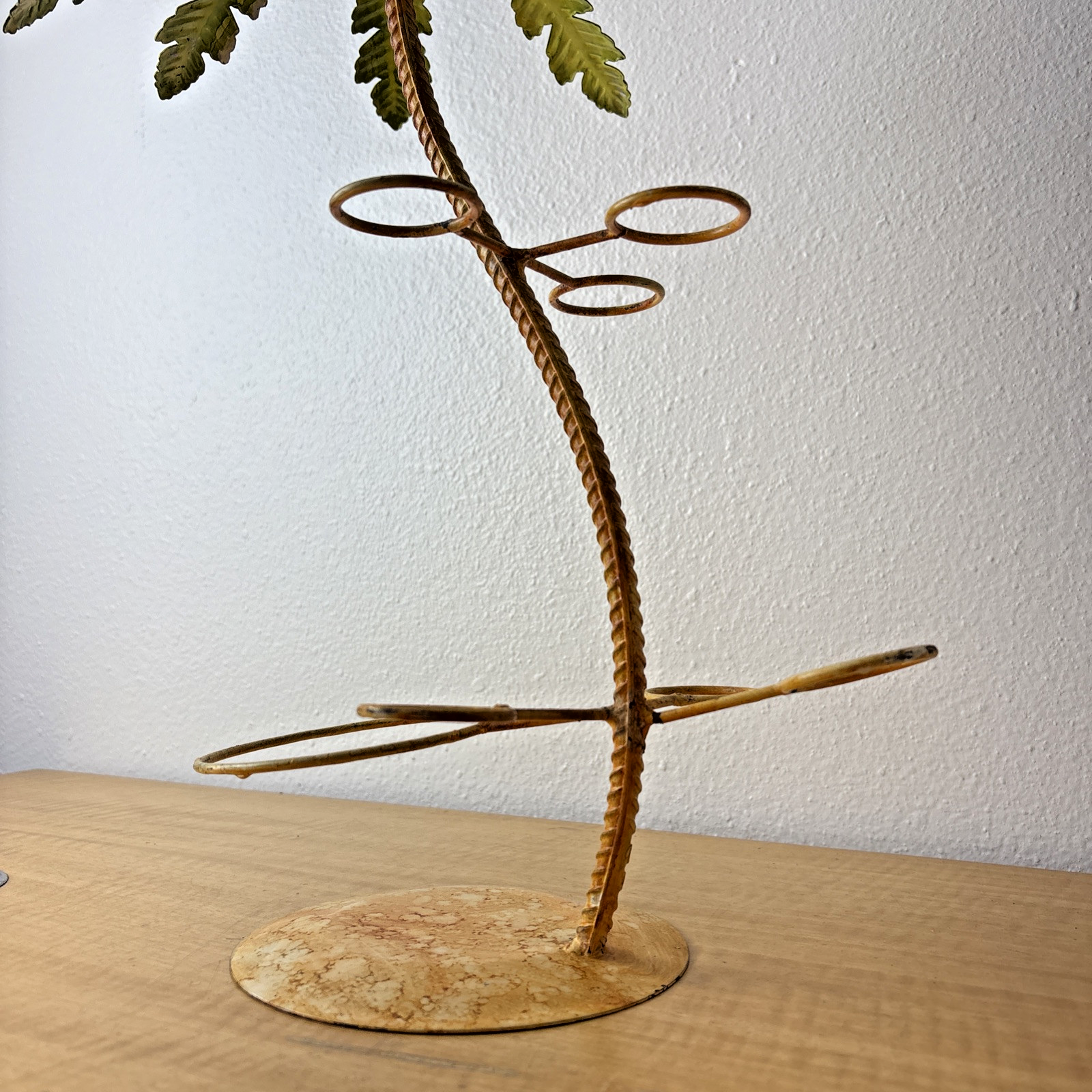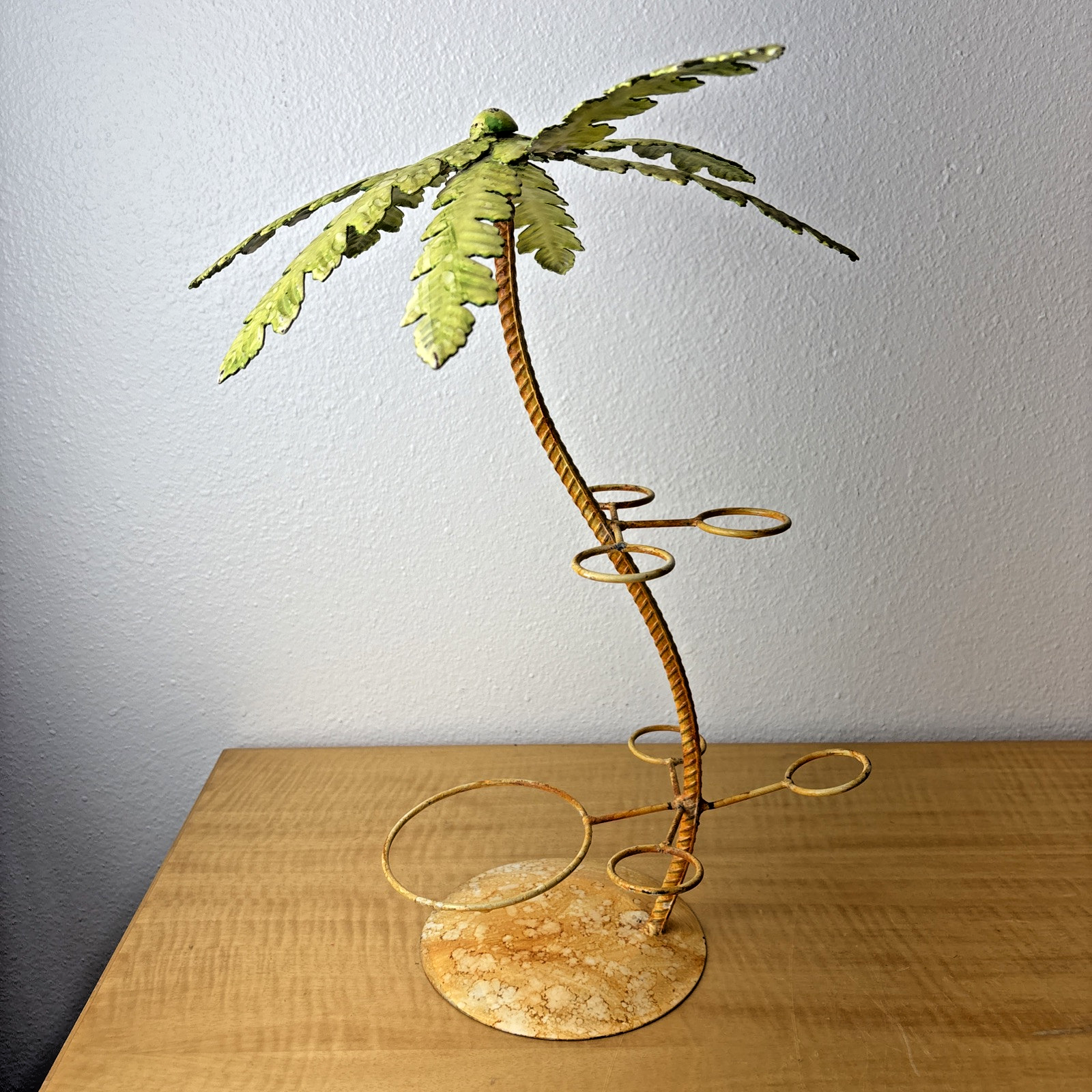 Vintage Under Palm Tree Art Metal Bottle Decanter & Glass Holder