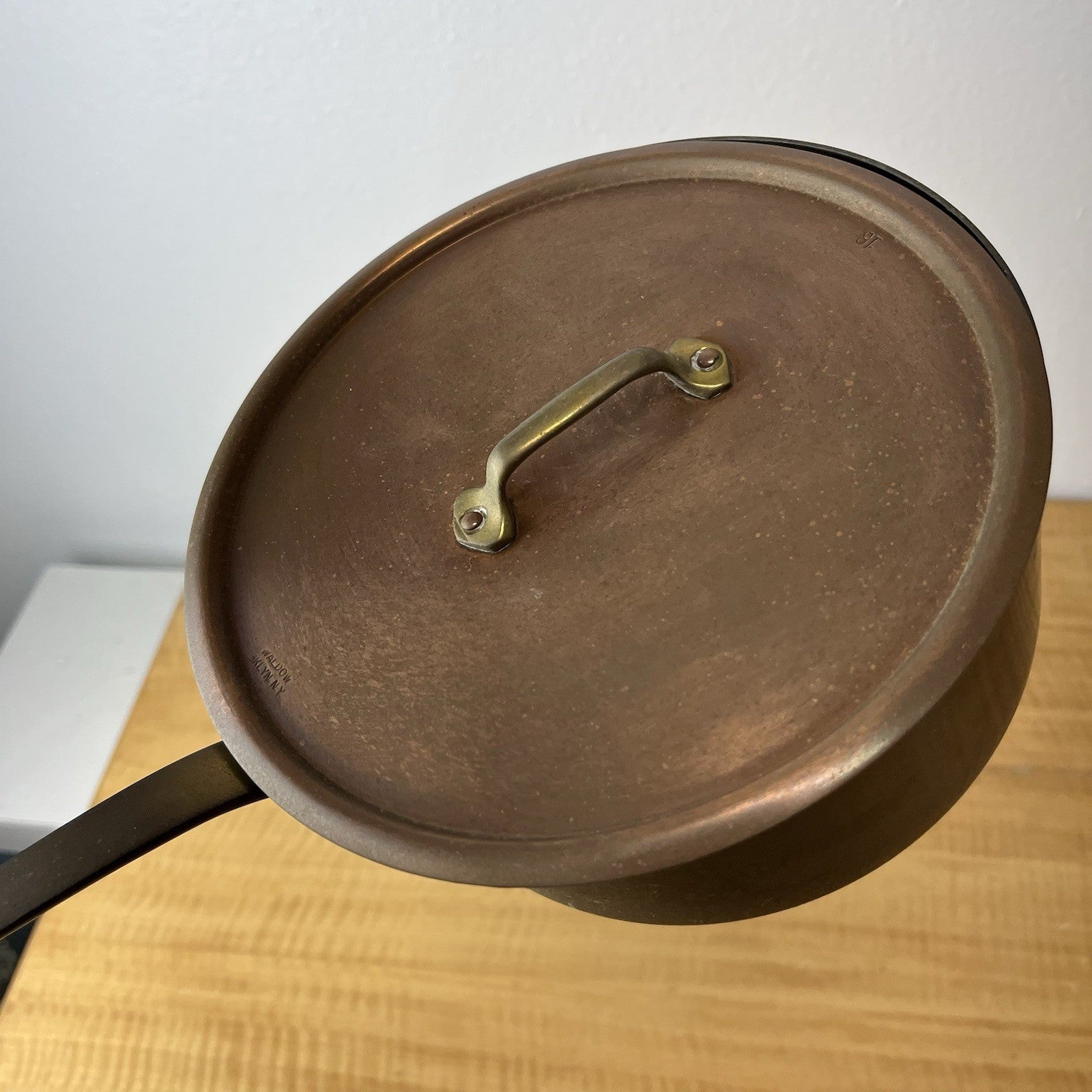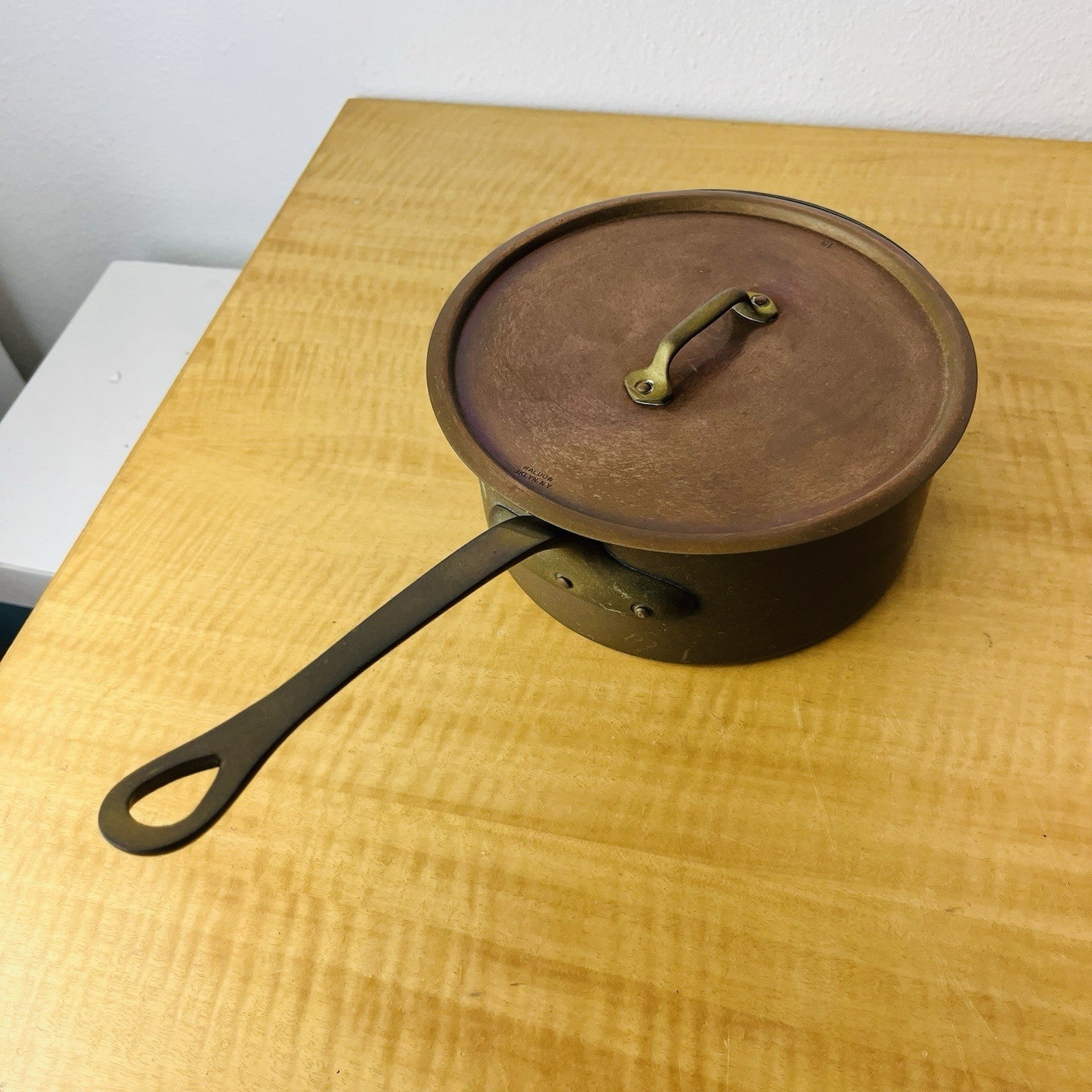 Vintage Waldow Brooklyn NY #18 Copper Saucepan 7.5″ Brass Handle w Lid