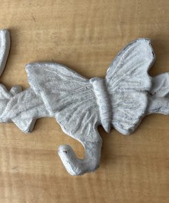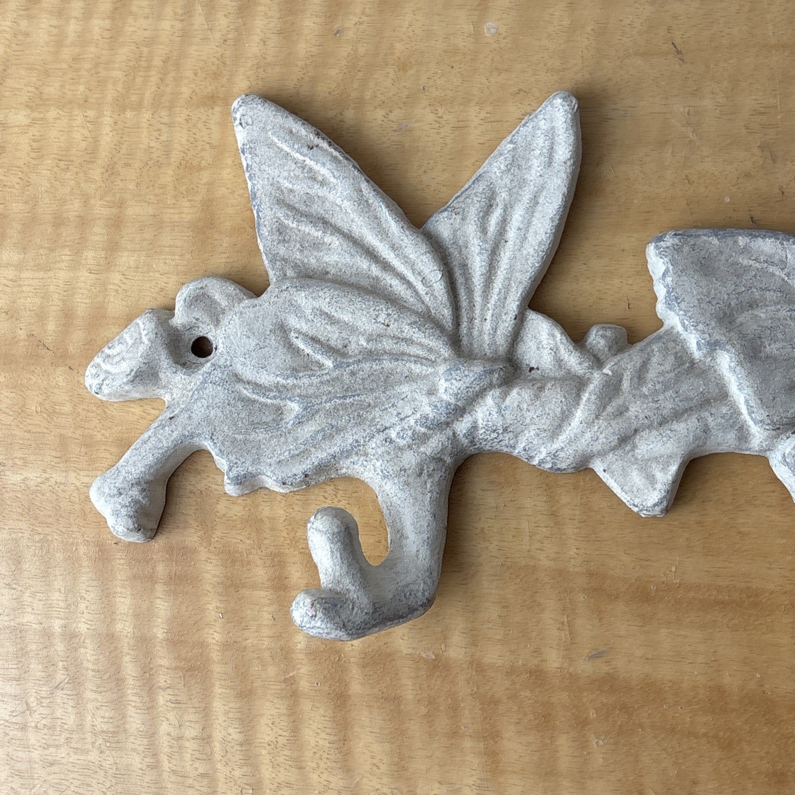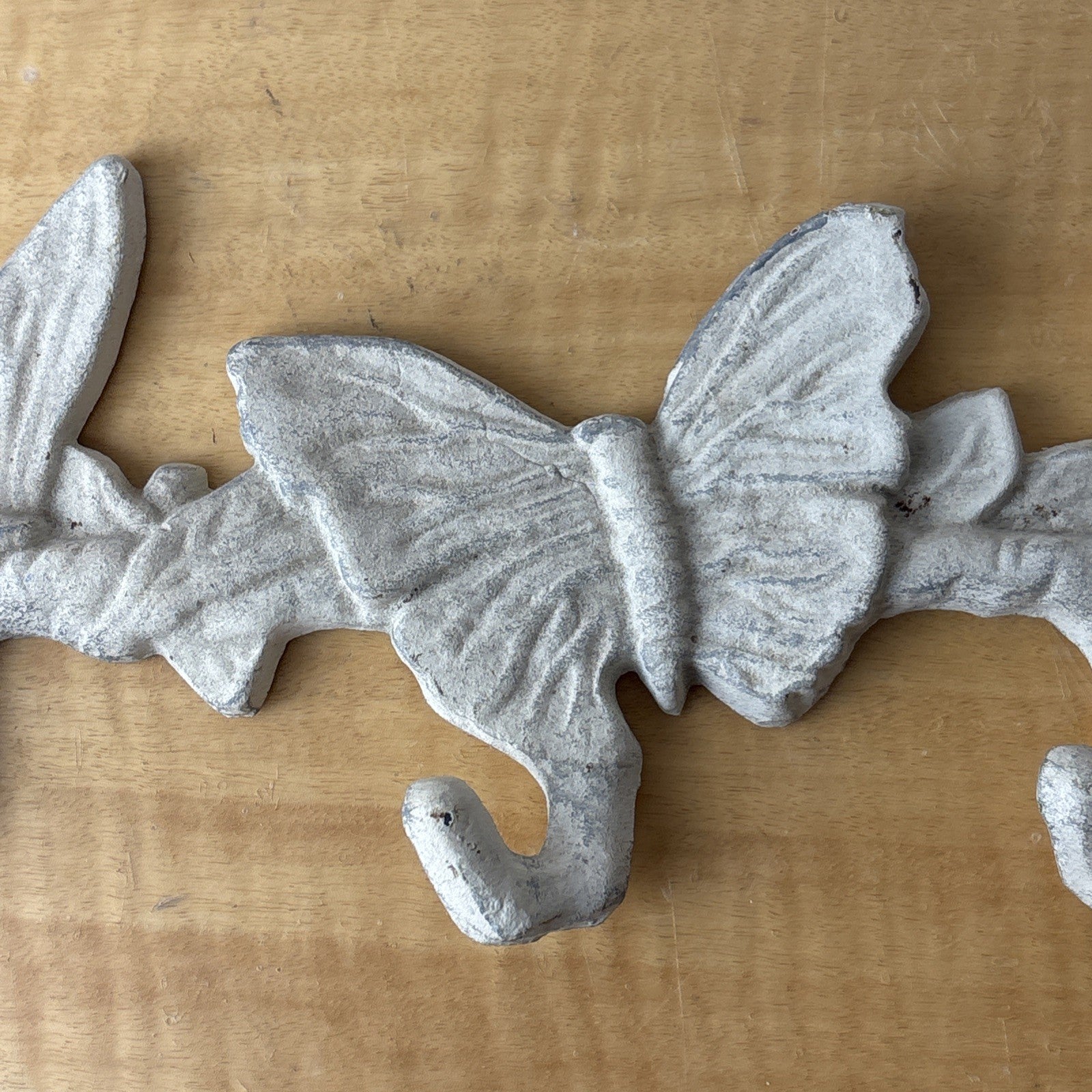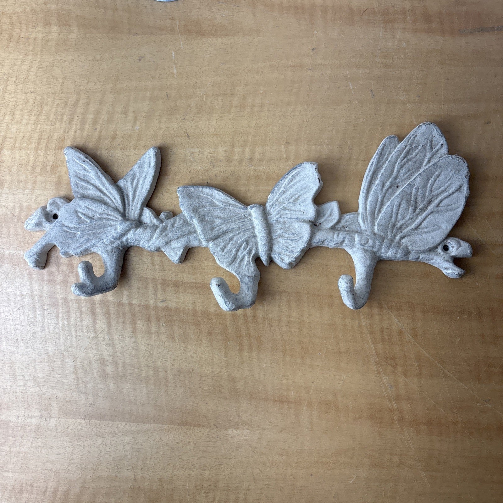 Vintage Wall Hanging Hooks Butterfly 15″ Long Charcoal Gray Dragonfly Cast Iron