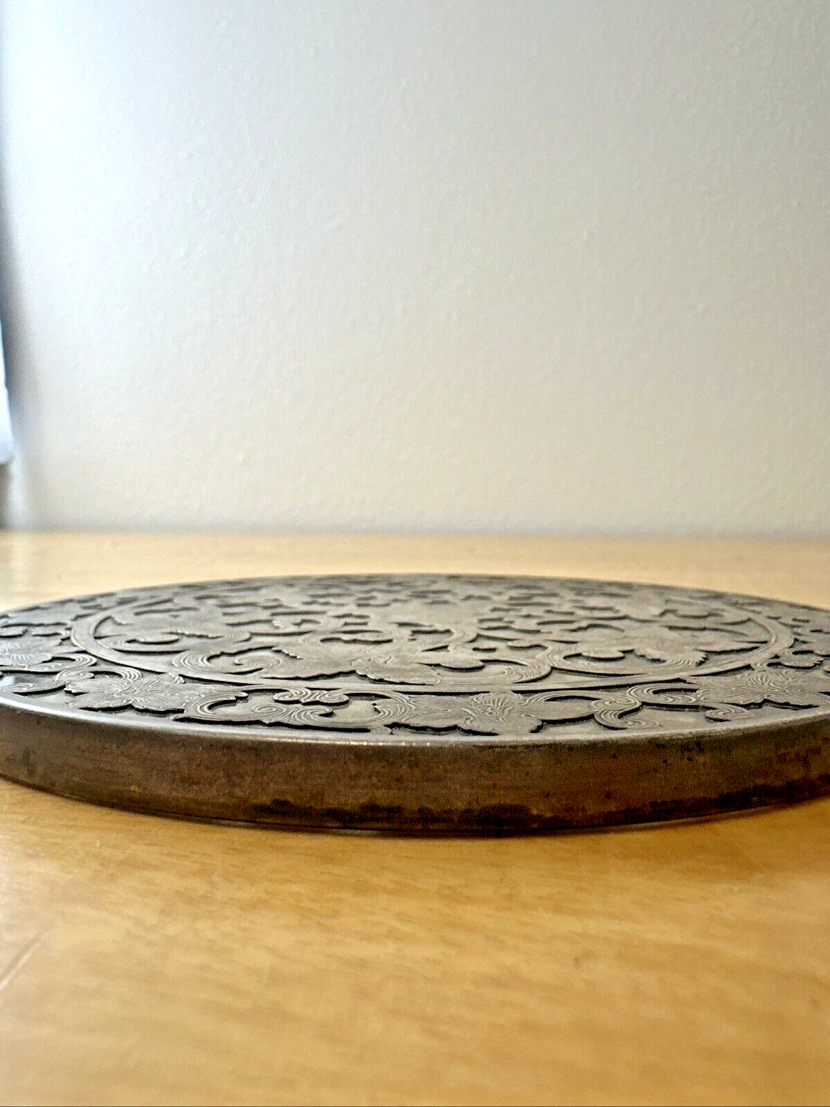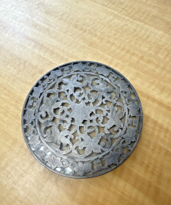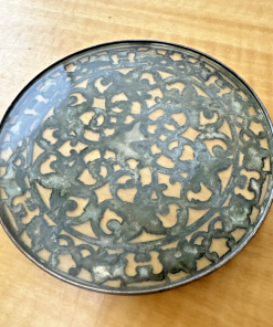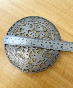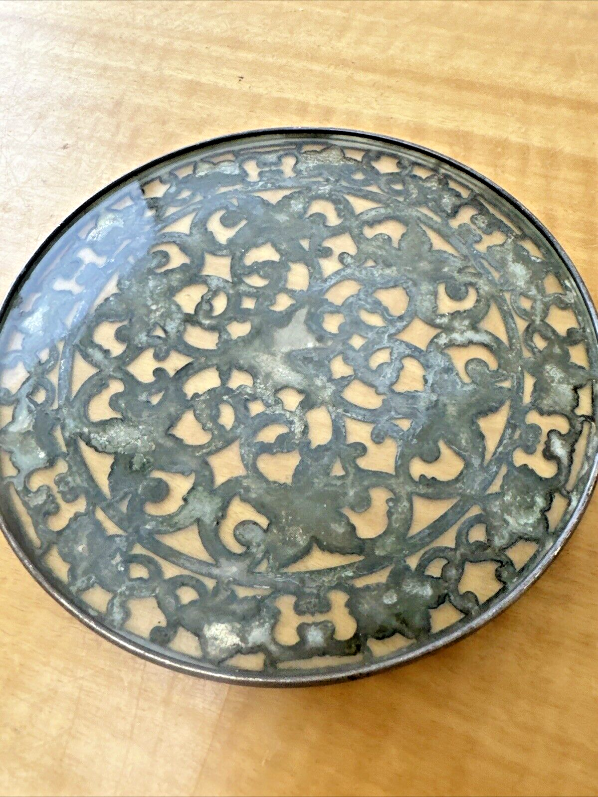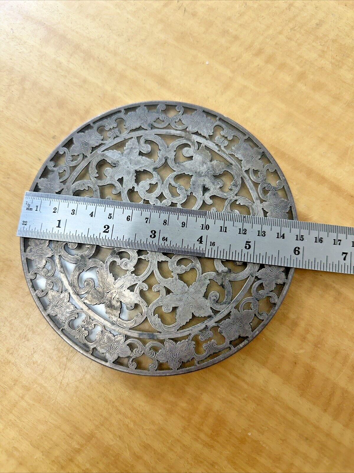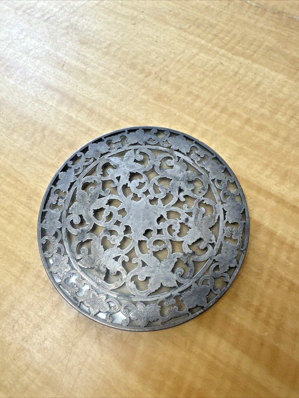 Vintage Webster Sterling Silver Floral Overlay Glass Trivet 6”