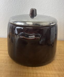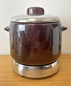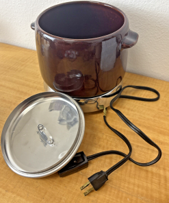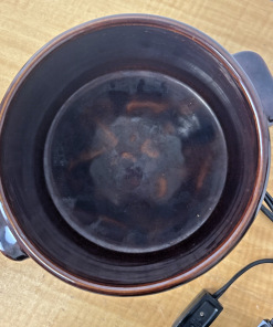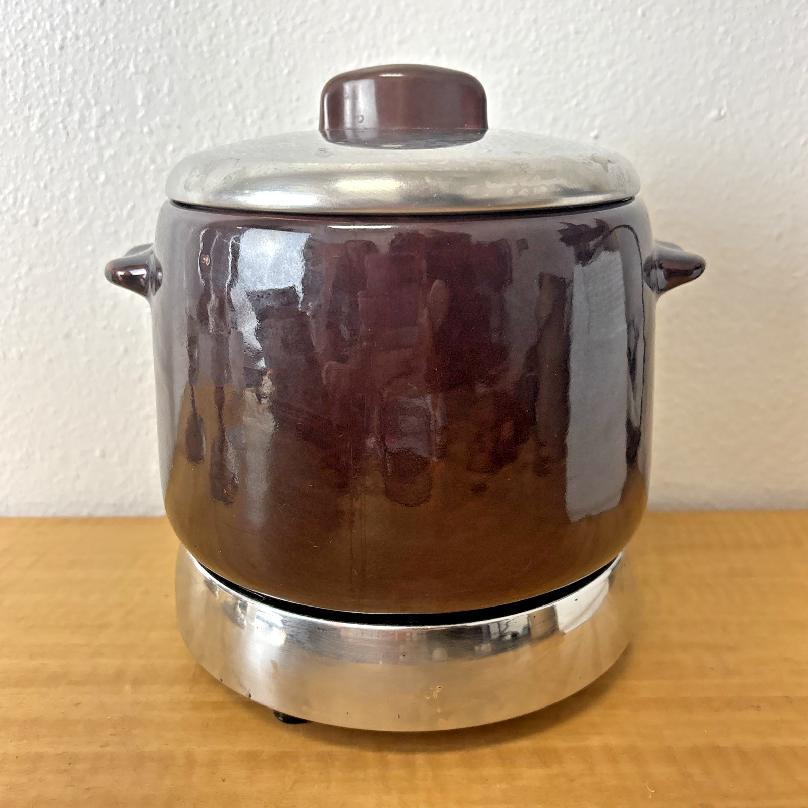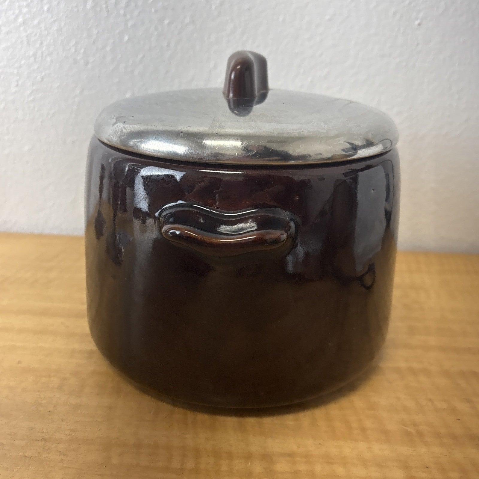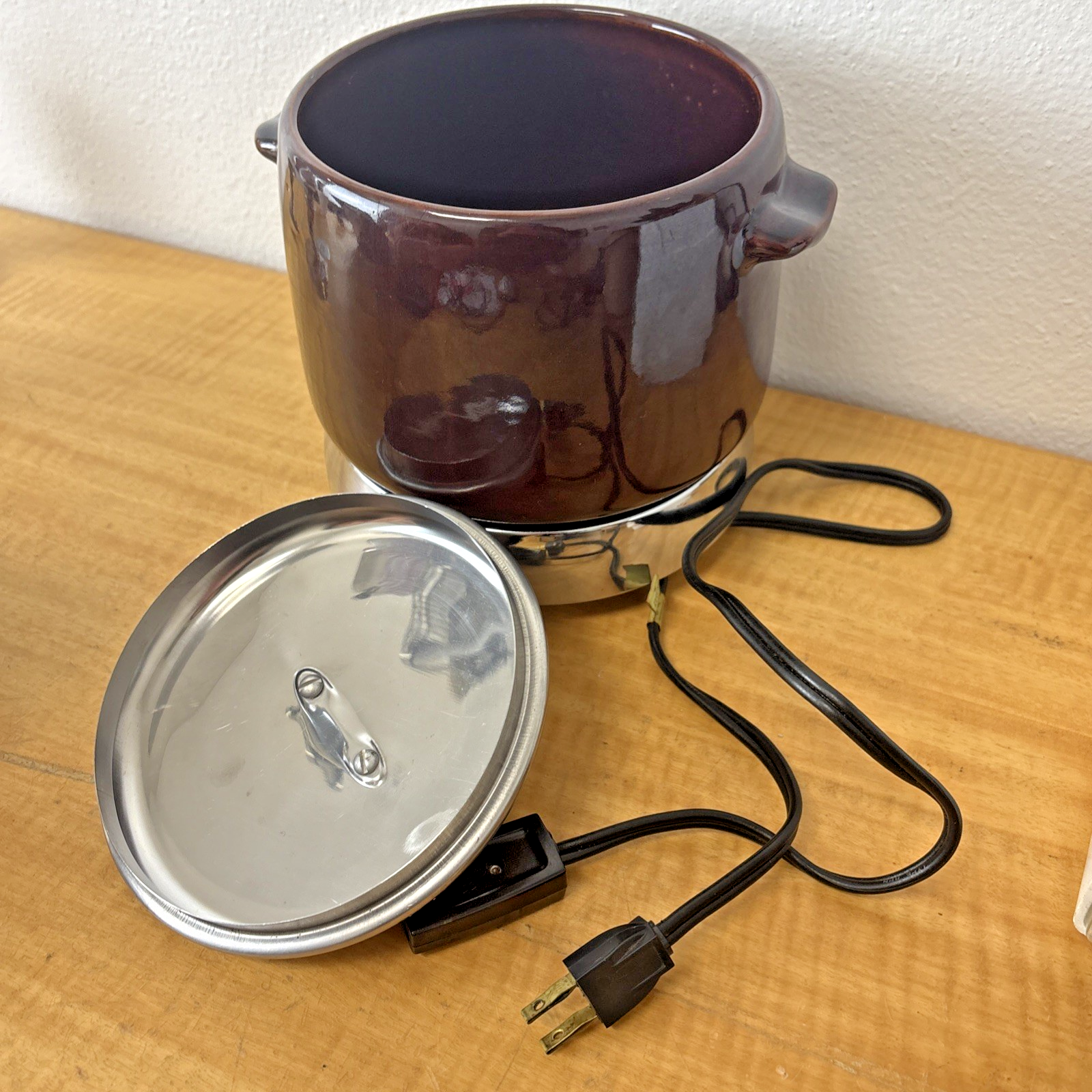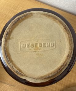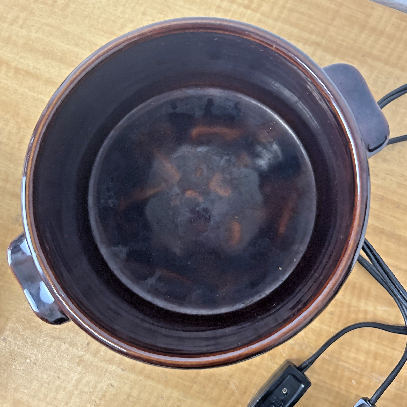 Vintage West Bend Bean Pot Stoneware with Metal Lid Brown Glazed w/ Chord