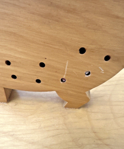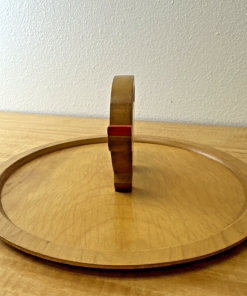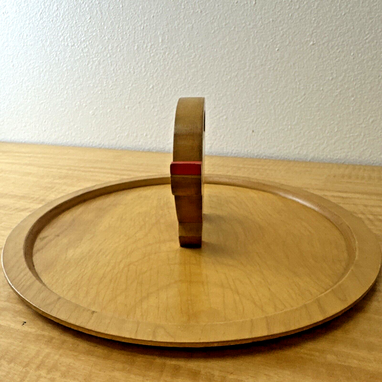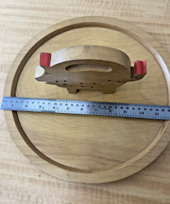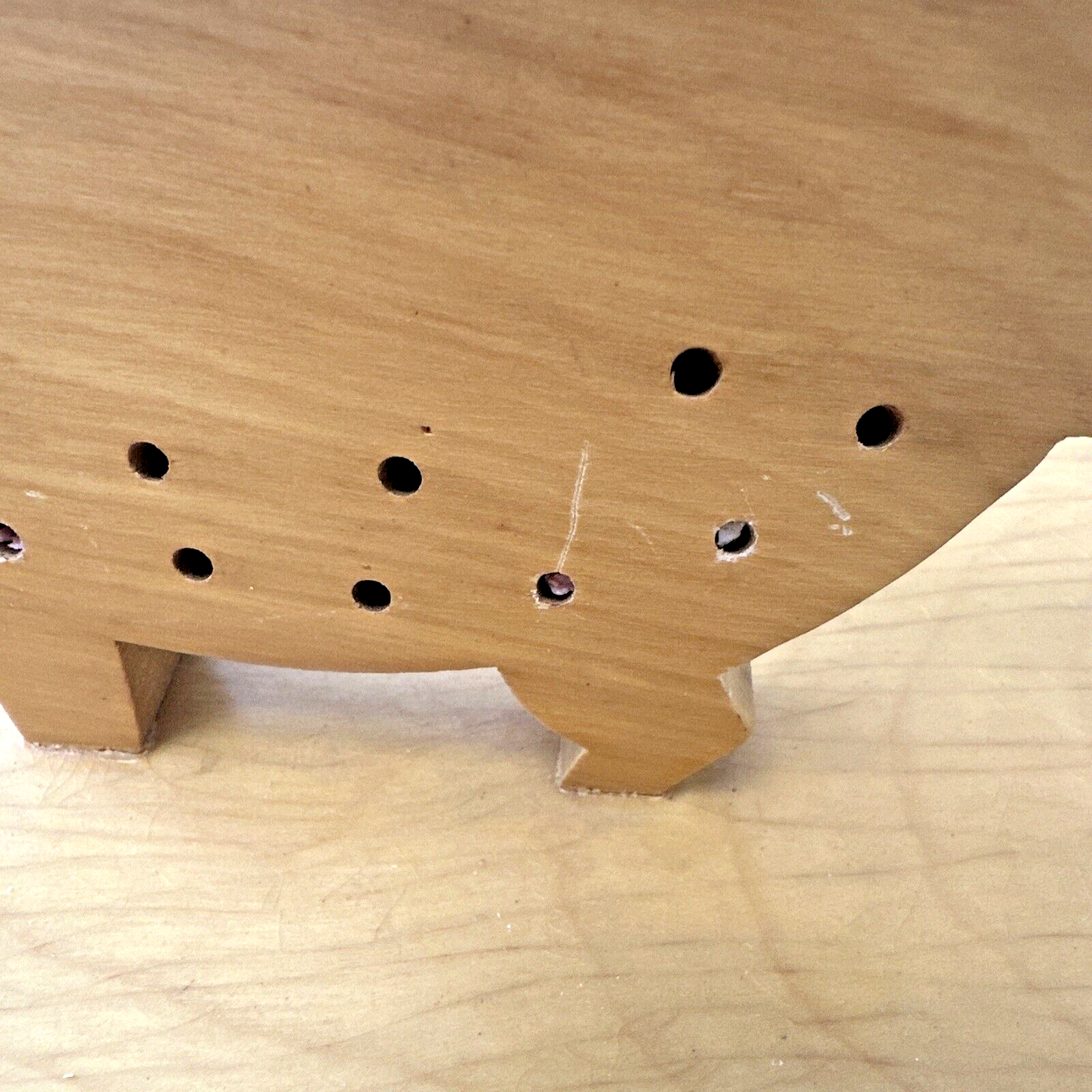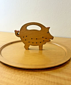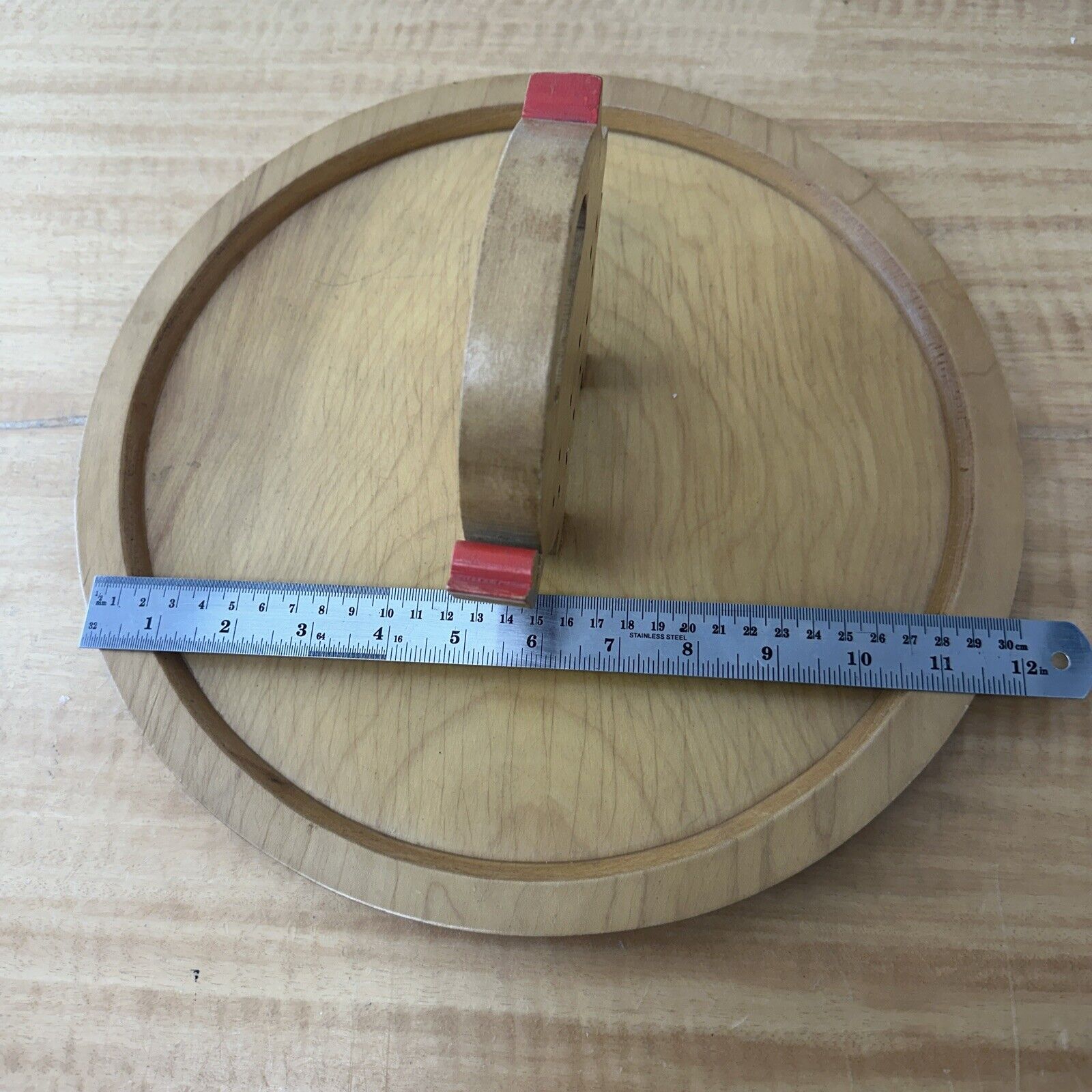 Vintage Wood Farmhouse Round 13″ Tidbit Tray with Center Pig Handle Folk Art