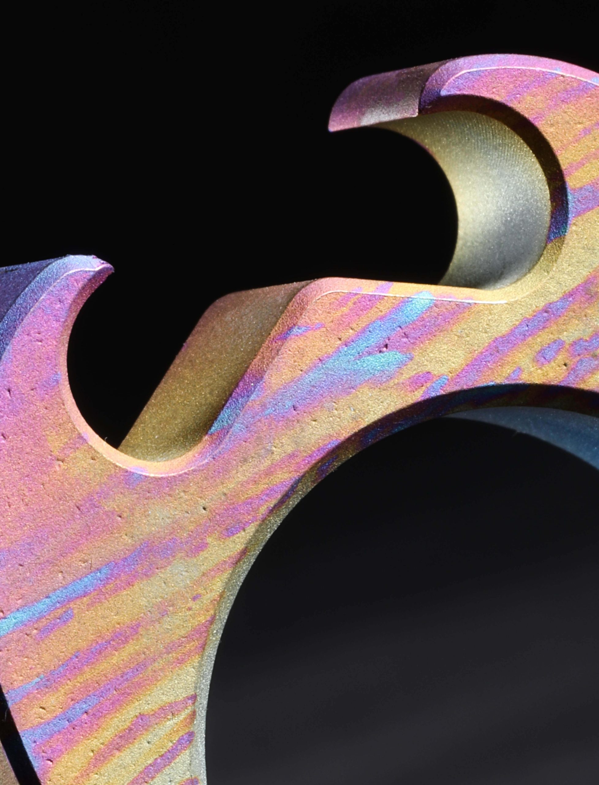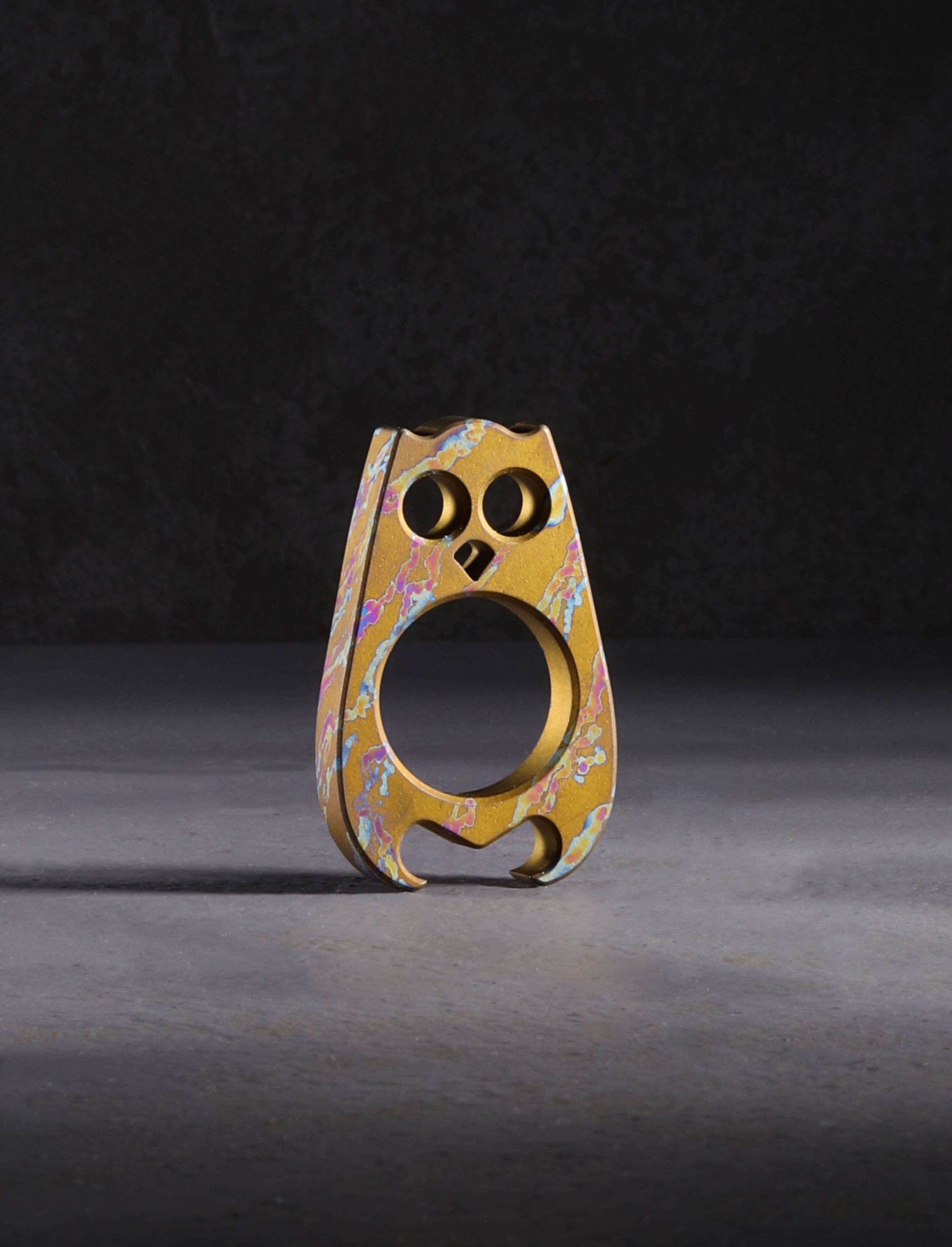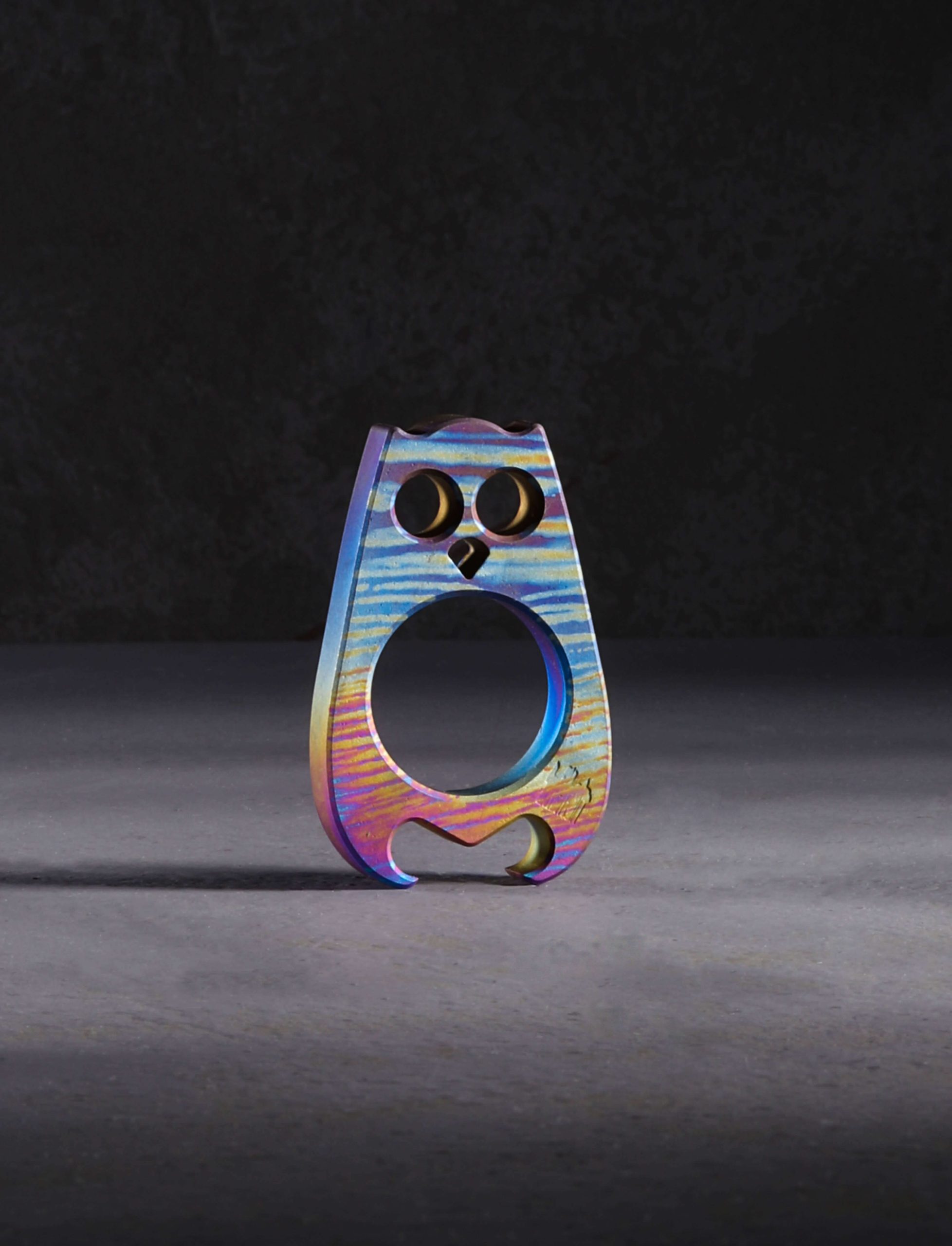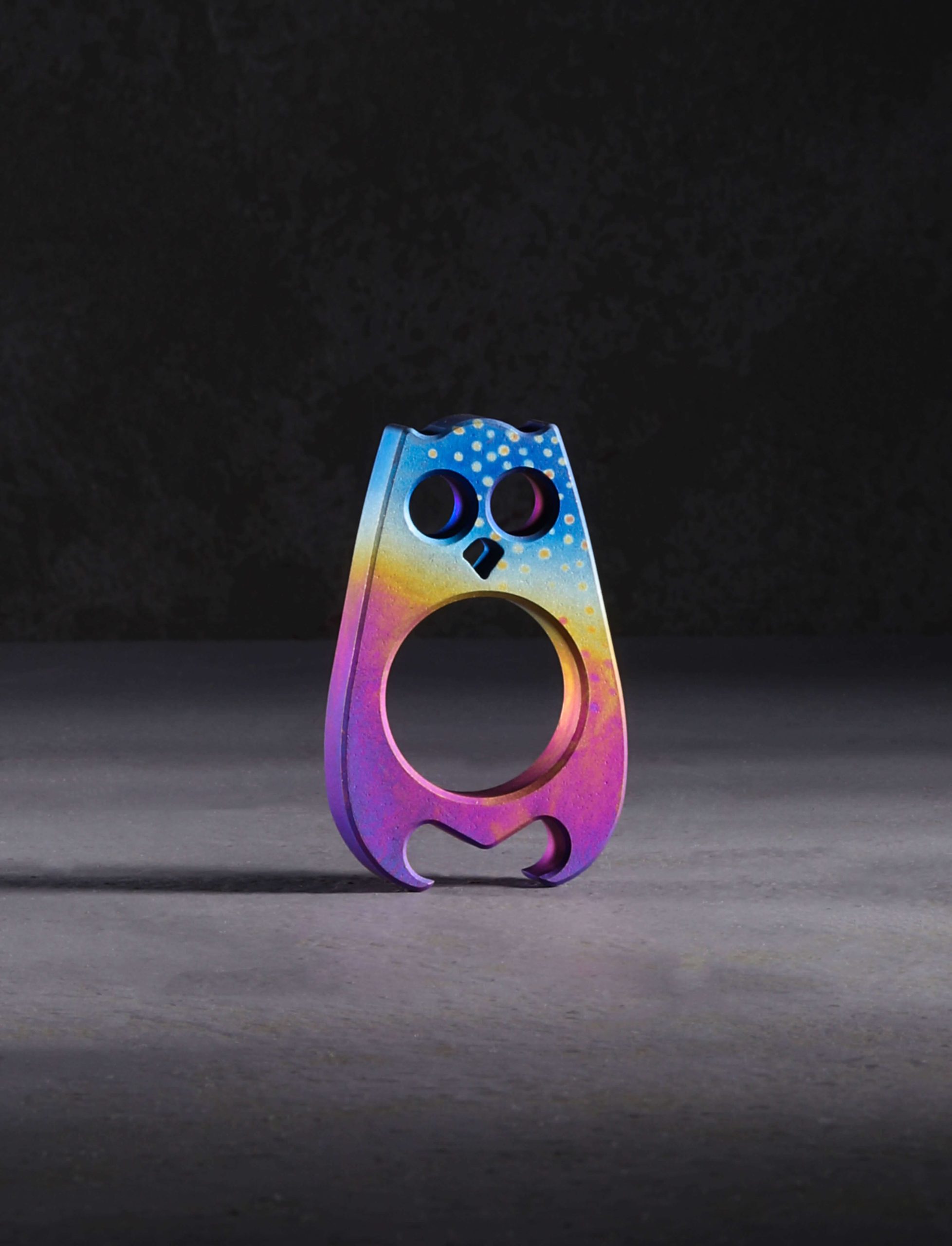 Traversing the night skies under the cover of dark, lit only by the moon and its reflection off the rough Atlantic waters, Orwell flies West to America’s shores, settling in Staten Island, ready for adventures anew. Born of the mind of Dane Jesper Voxnaes, Orwell is conjured into titanium reality at the VoxDesign workshop’s headquarters before being set free to spread its wings and soar. Ever vigilant, on the prowl for bottle to open and pockets to call home, Orwell masquerades not as a single being but as many, a unique costume for each applied at the hands of titanium artist Si Golraine of Eatingtools fame.