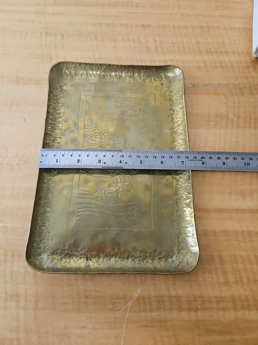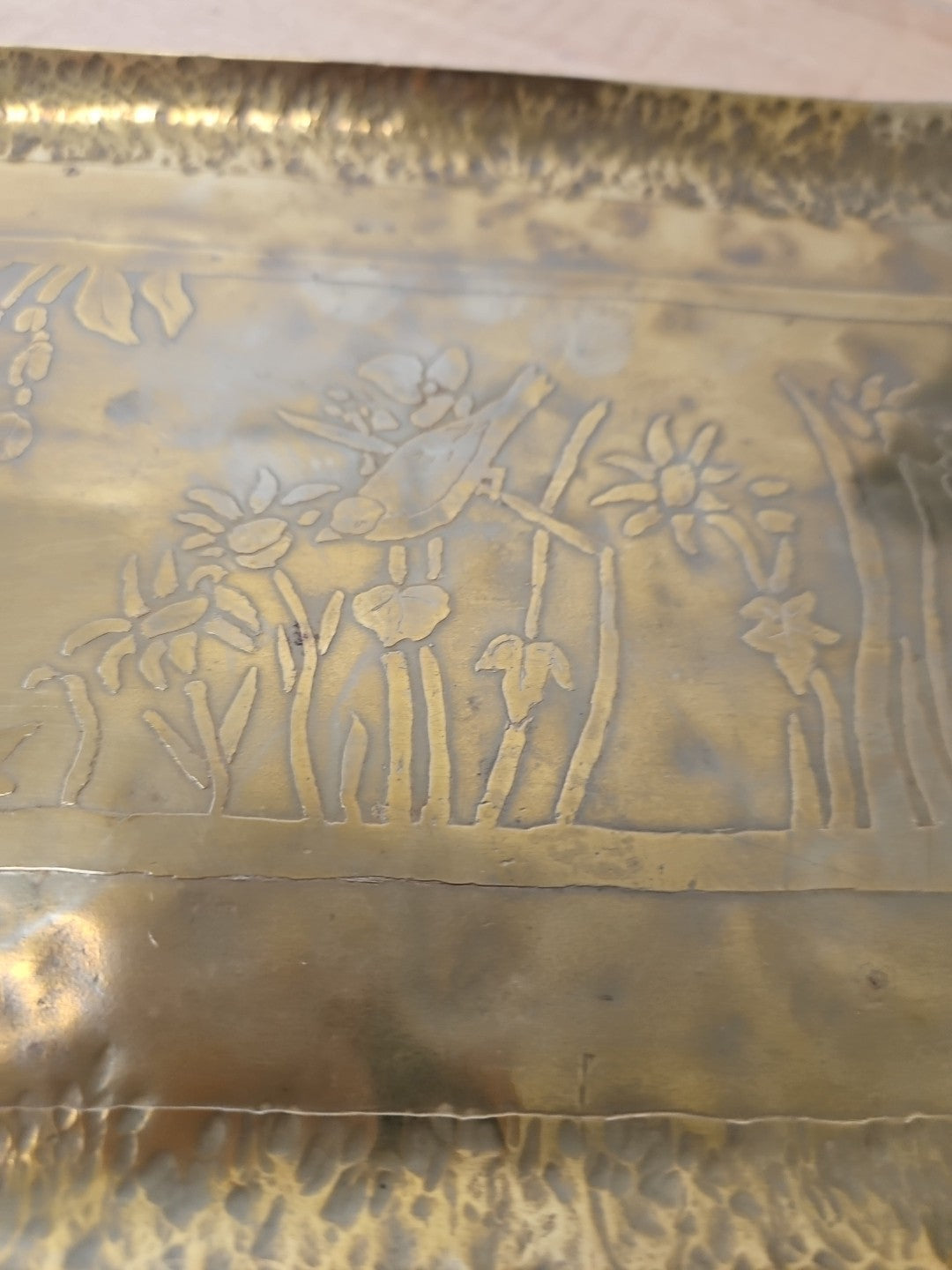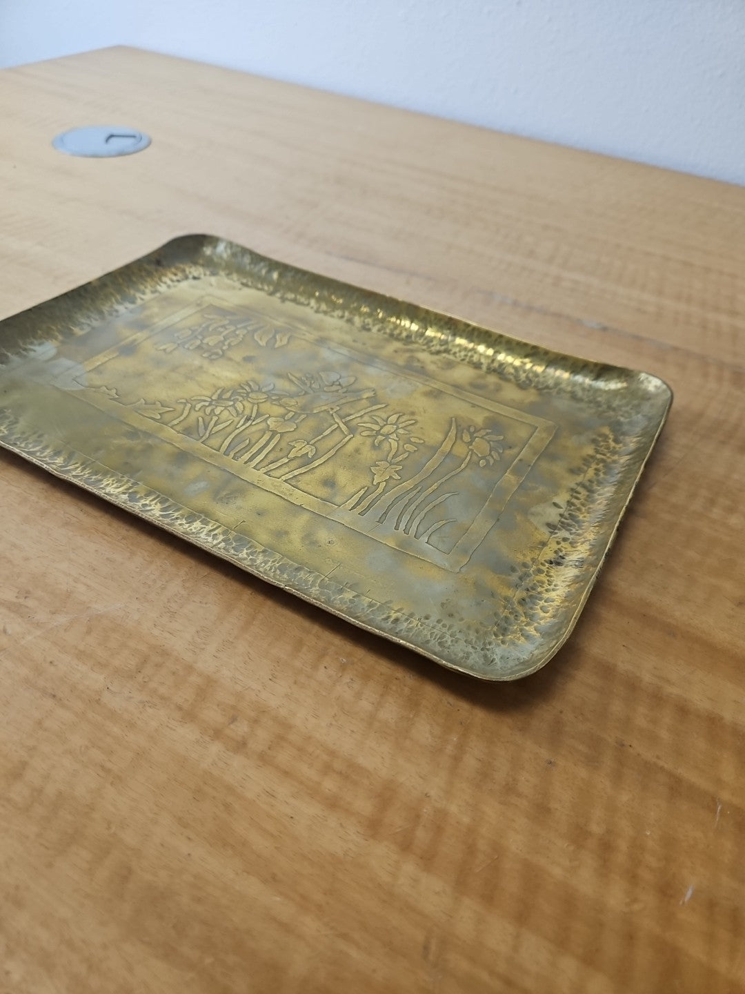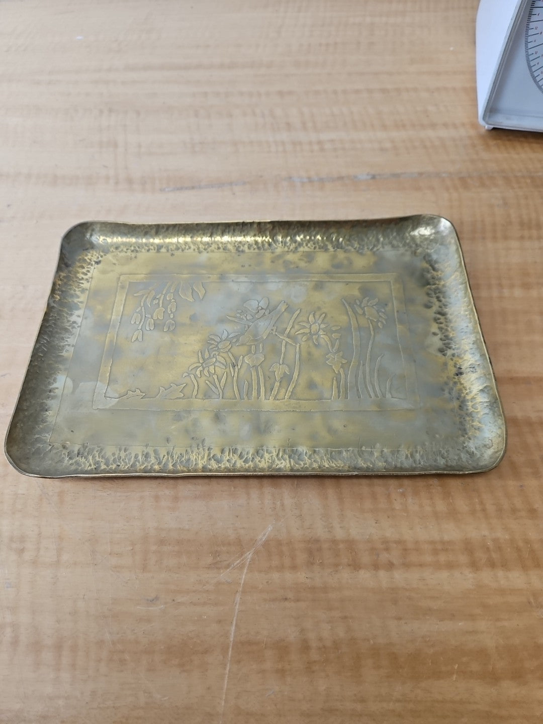 Vtg. Brass Serving Tray bird, flowers hammered 10 5/8″ x 7 1/4″