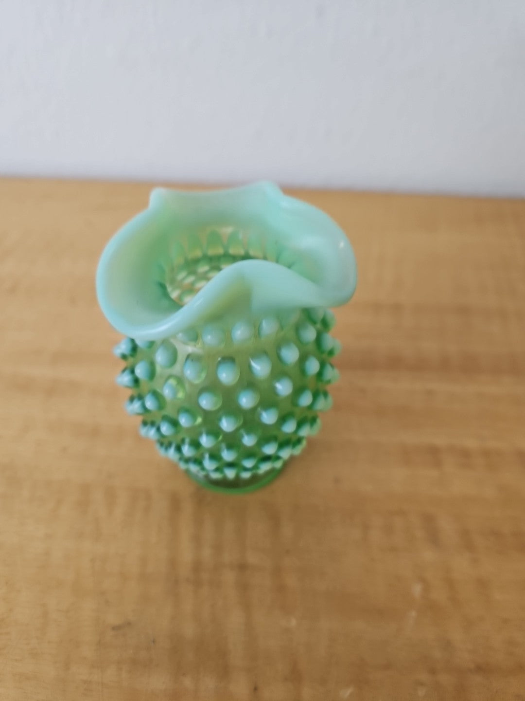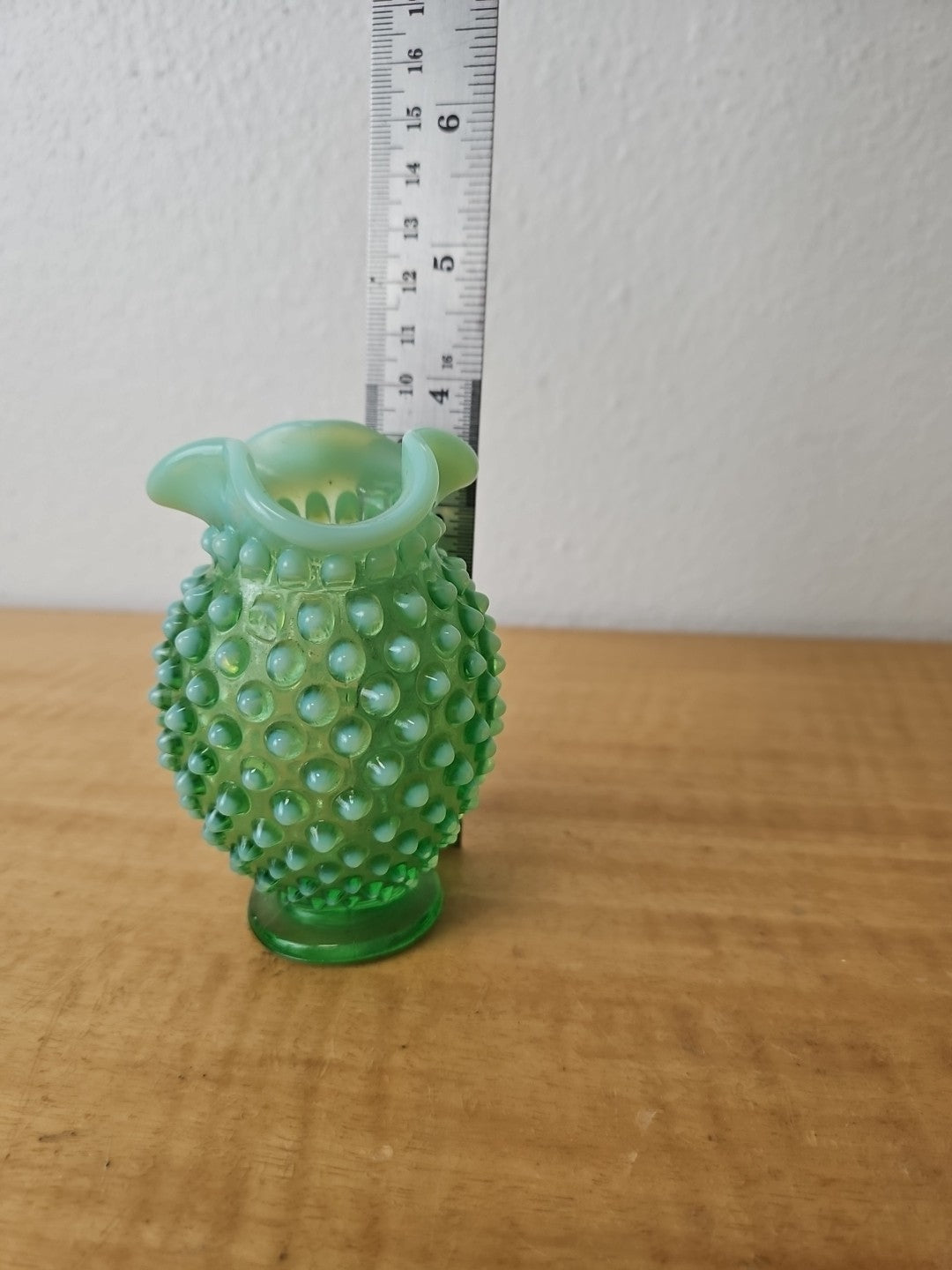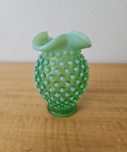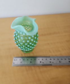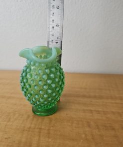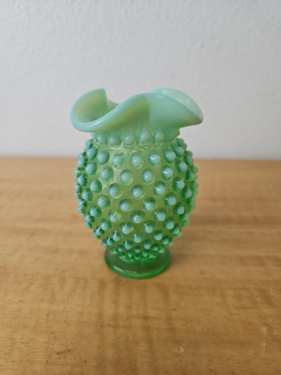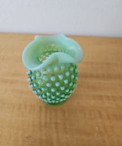 VTG Fenton Uranium Green Opalescent Hobnail Ruffled Mini Vase MCM GLOWS