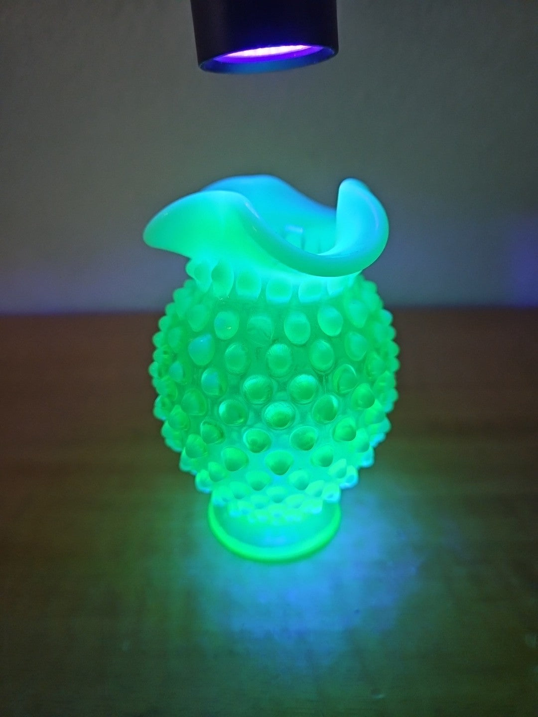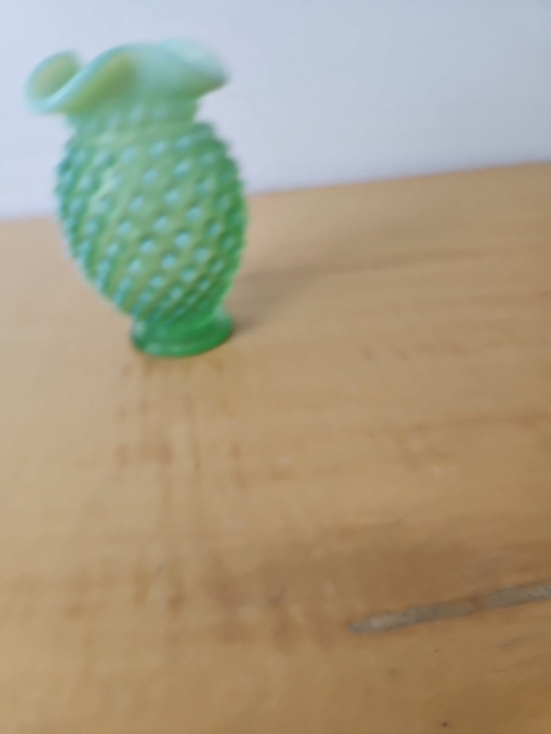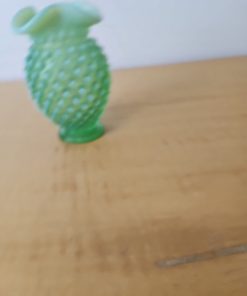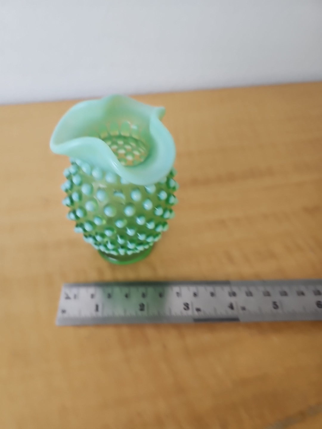VTG Fenton Uranium Green Opalescent Hobnail Ruffled Mini Vase MCM GLOWS