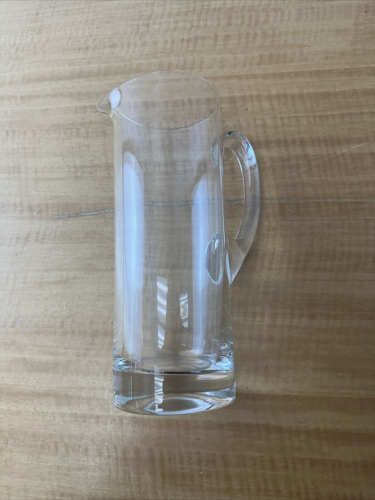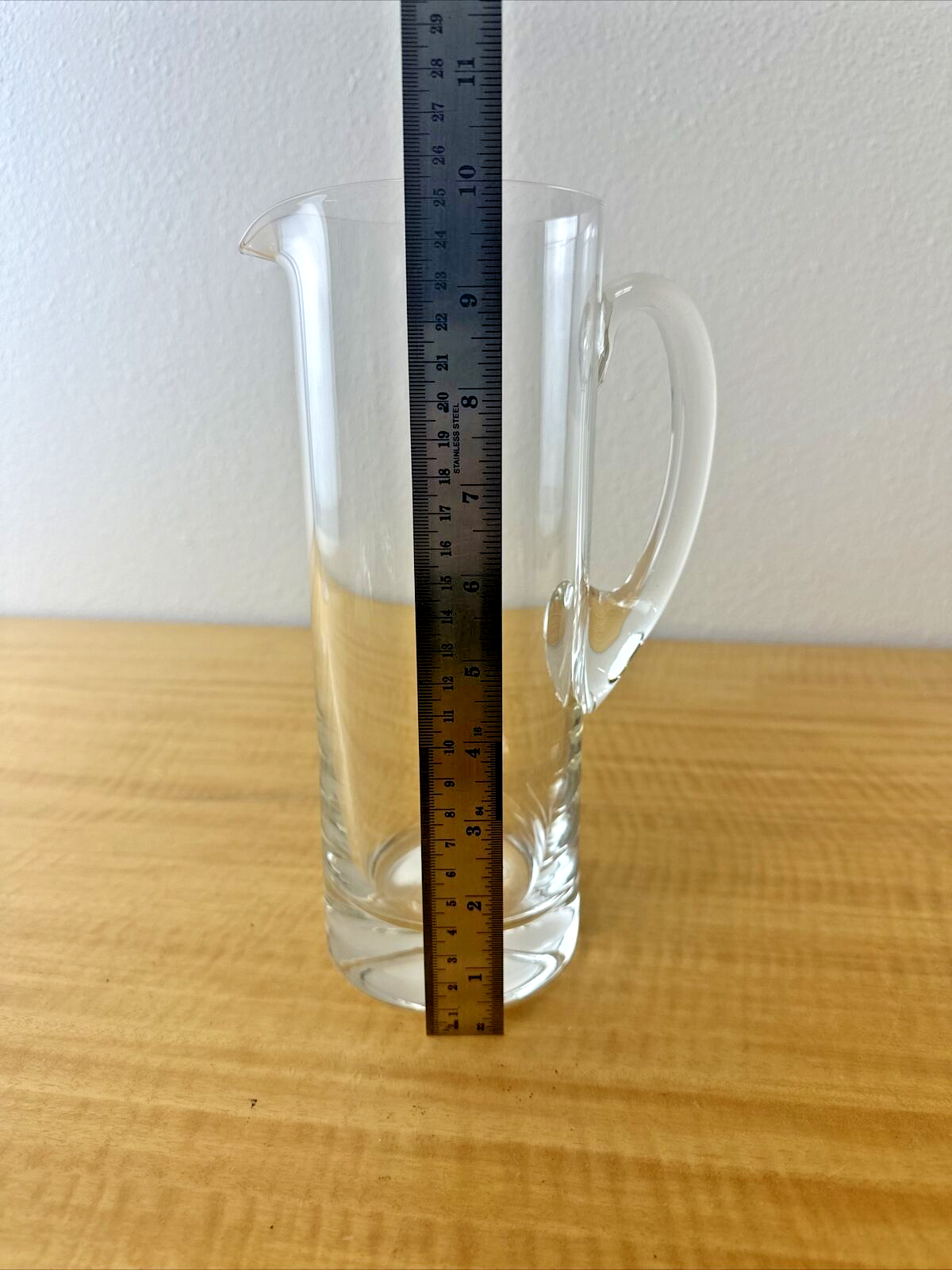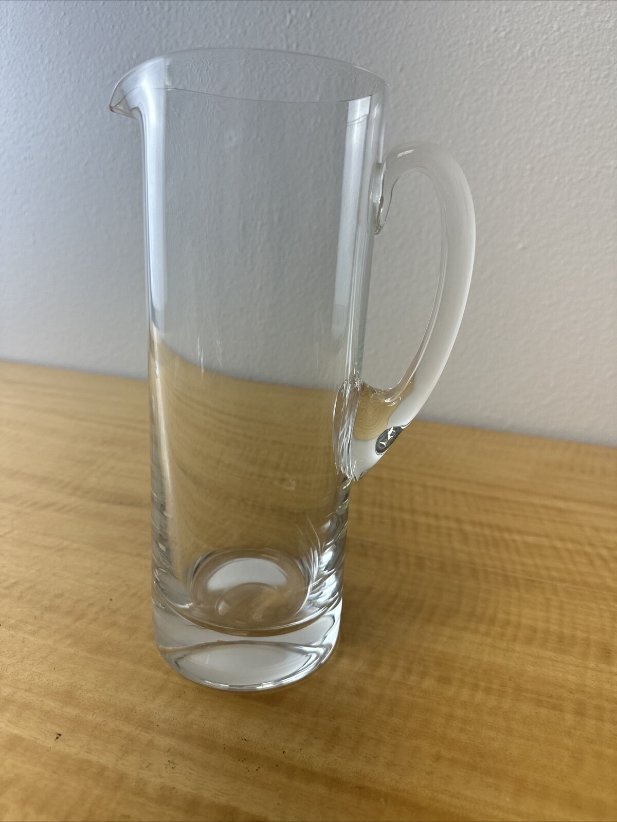 Vtg Hand Blown Clear Glass Martini Pitcher Applied Handle Pinch Spout 6 Cup EUC