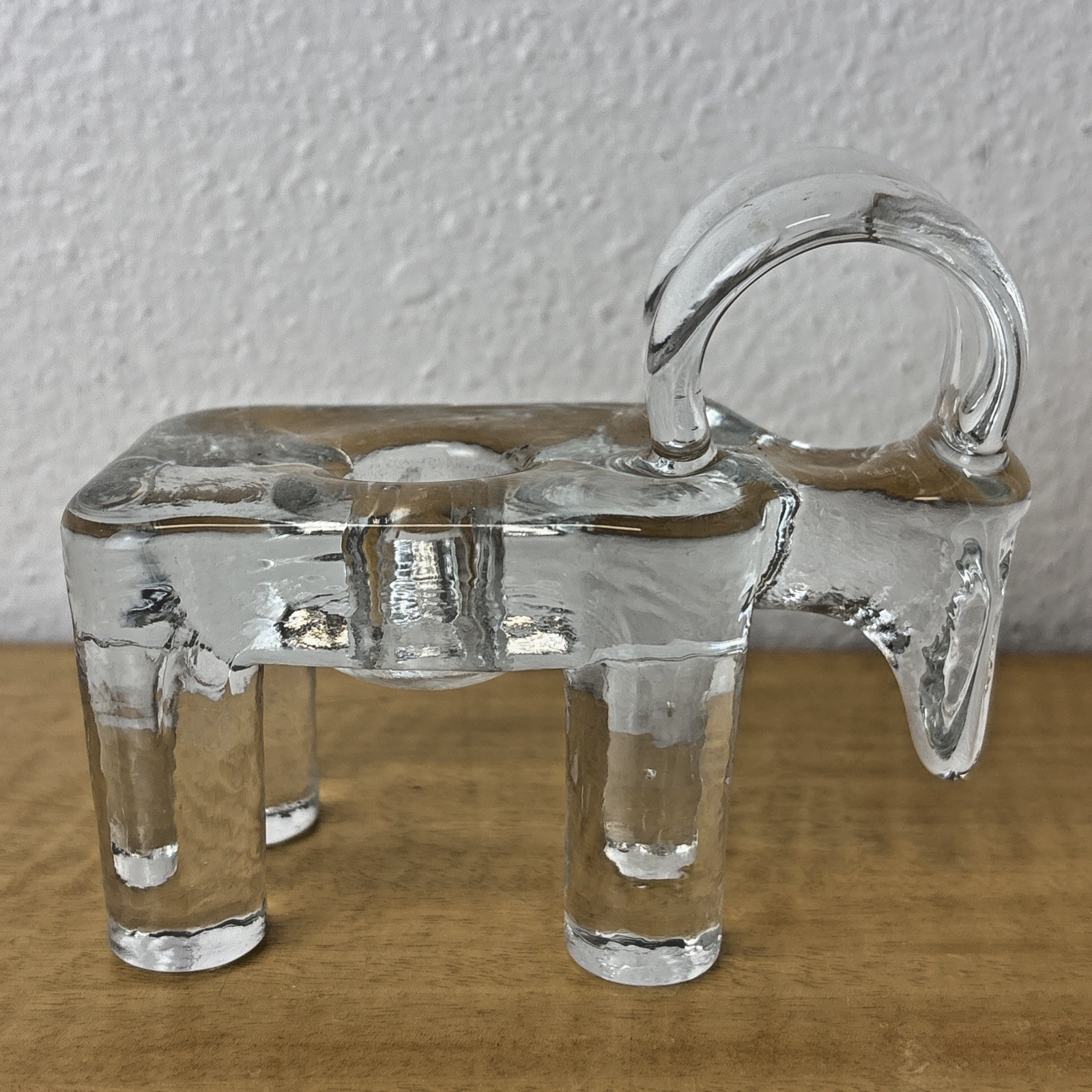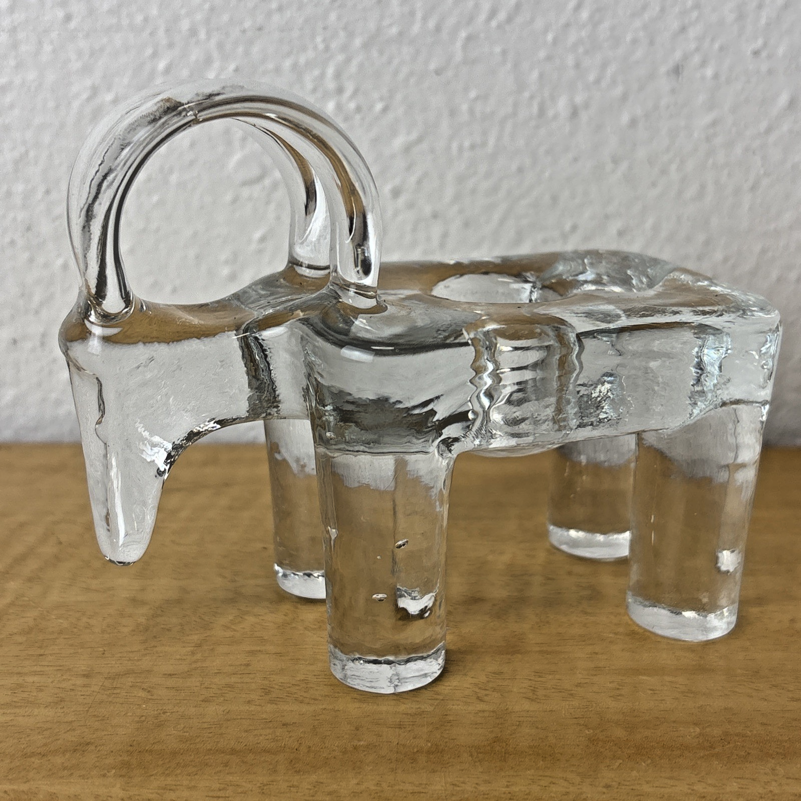 VTG Kosta Boda Clear Crystal Longhorn Goat Julbock Taper Candle Holder – Sweden