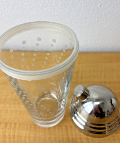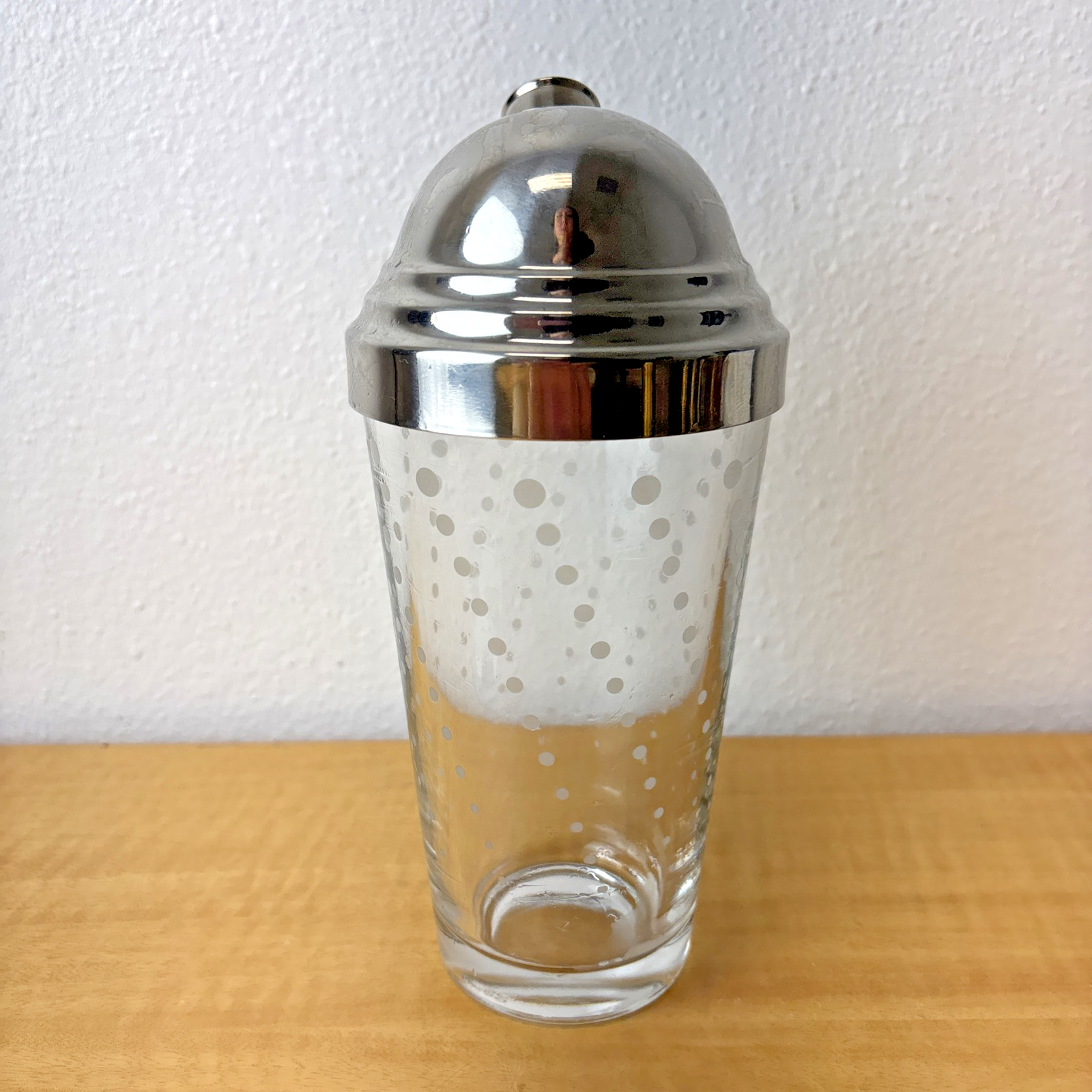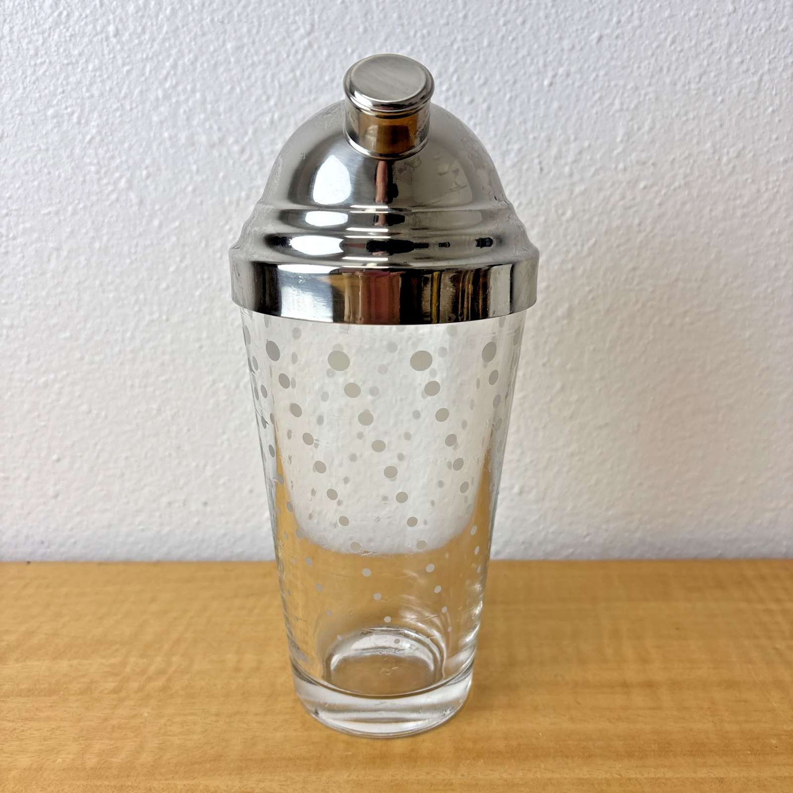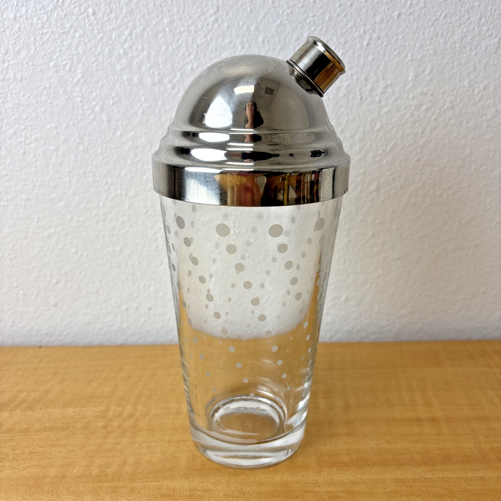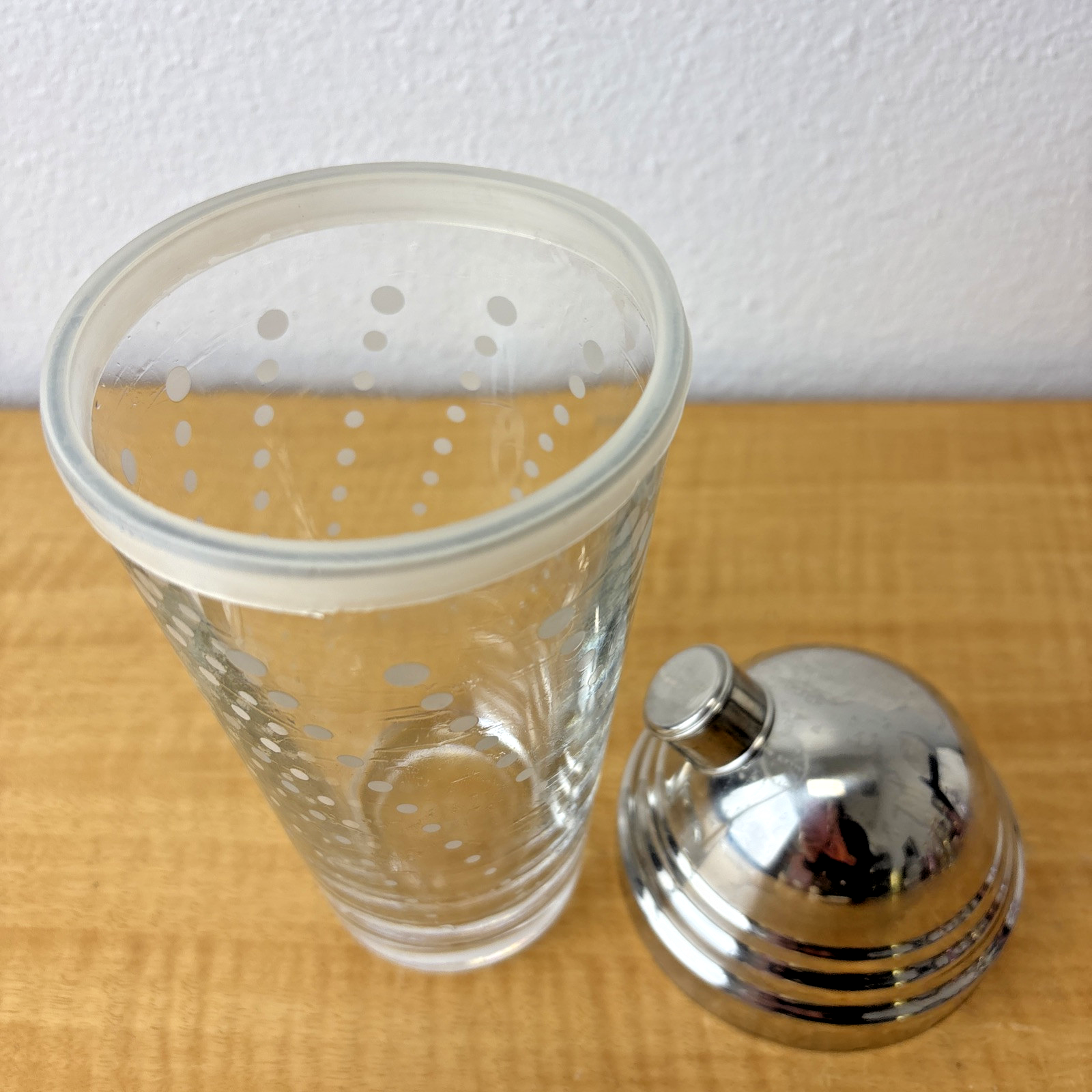 Vtg Libbey Glass Cocktail Drink Shaker Chrome Etched Dots Bar MCM Retro