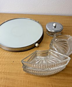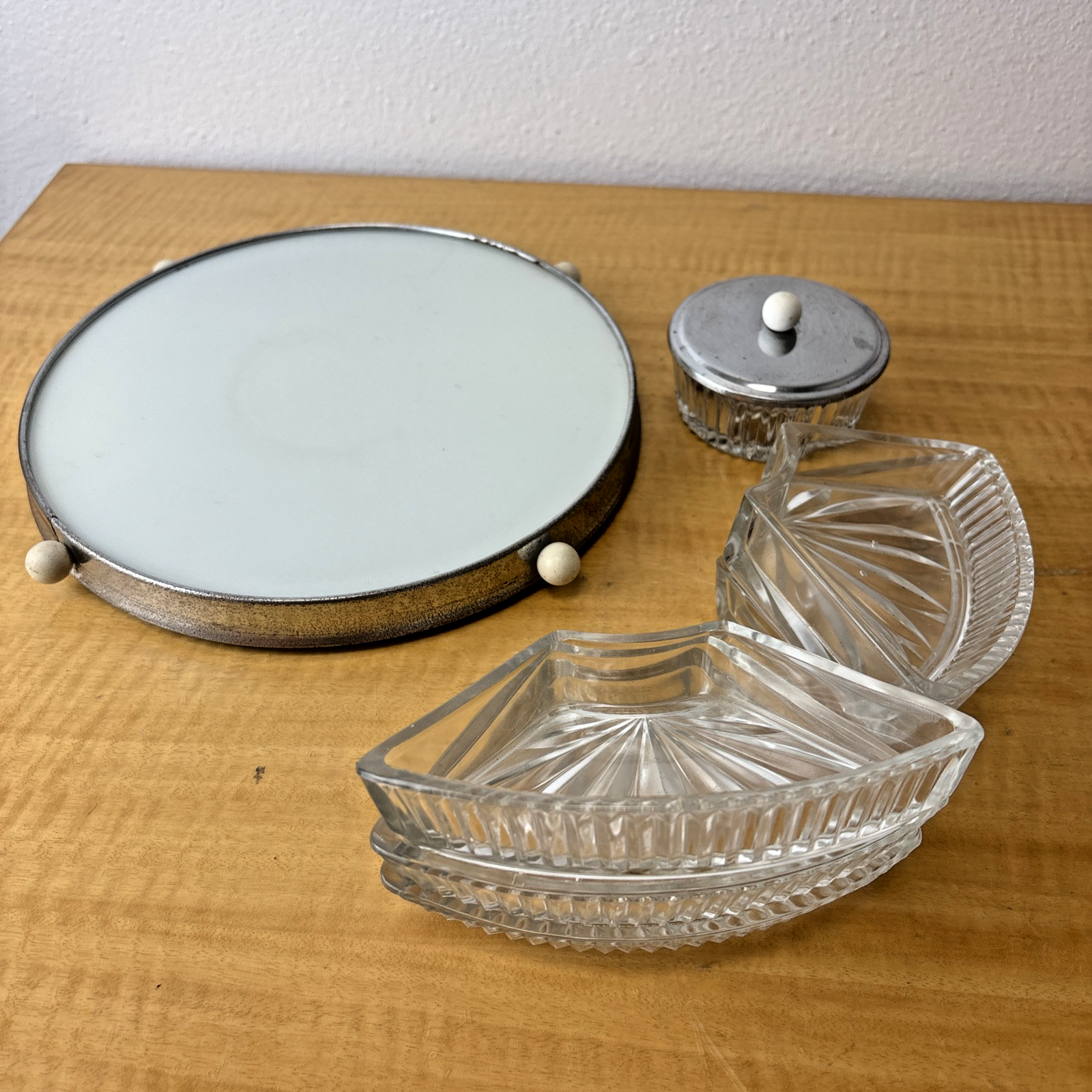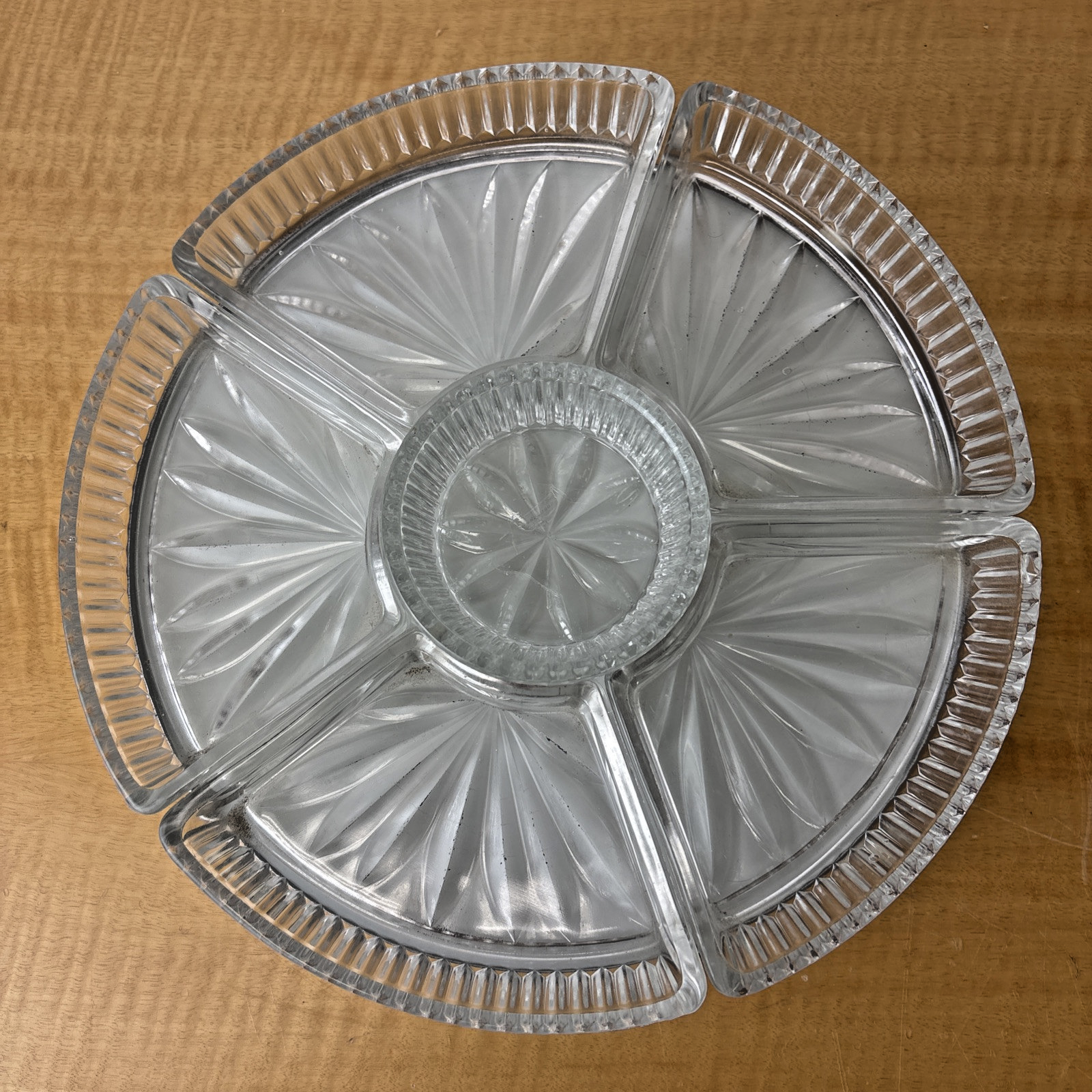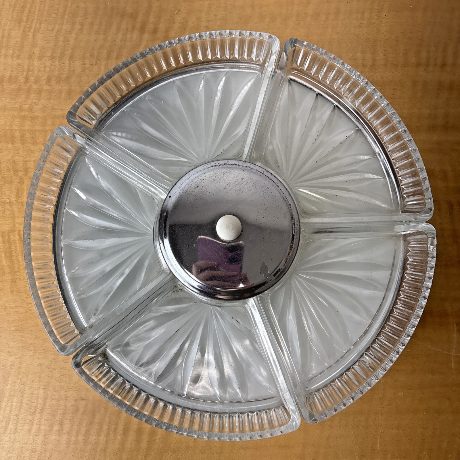 VTG MCM Chrome Rotating Lazy Susan with 5 Glass Serving Sections, Hors d’Oeuvres