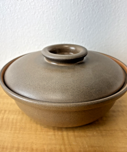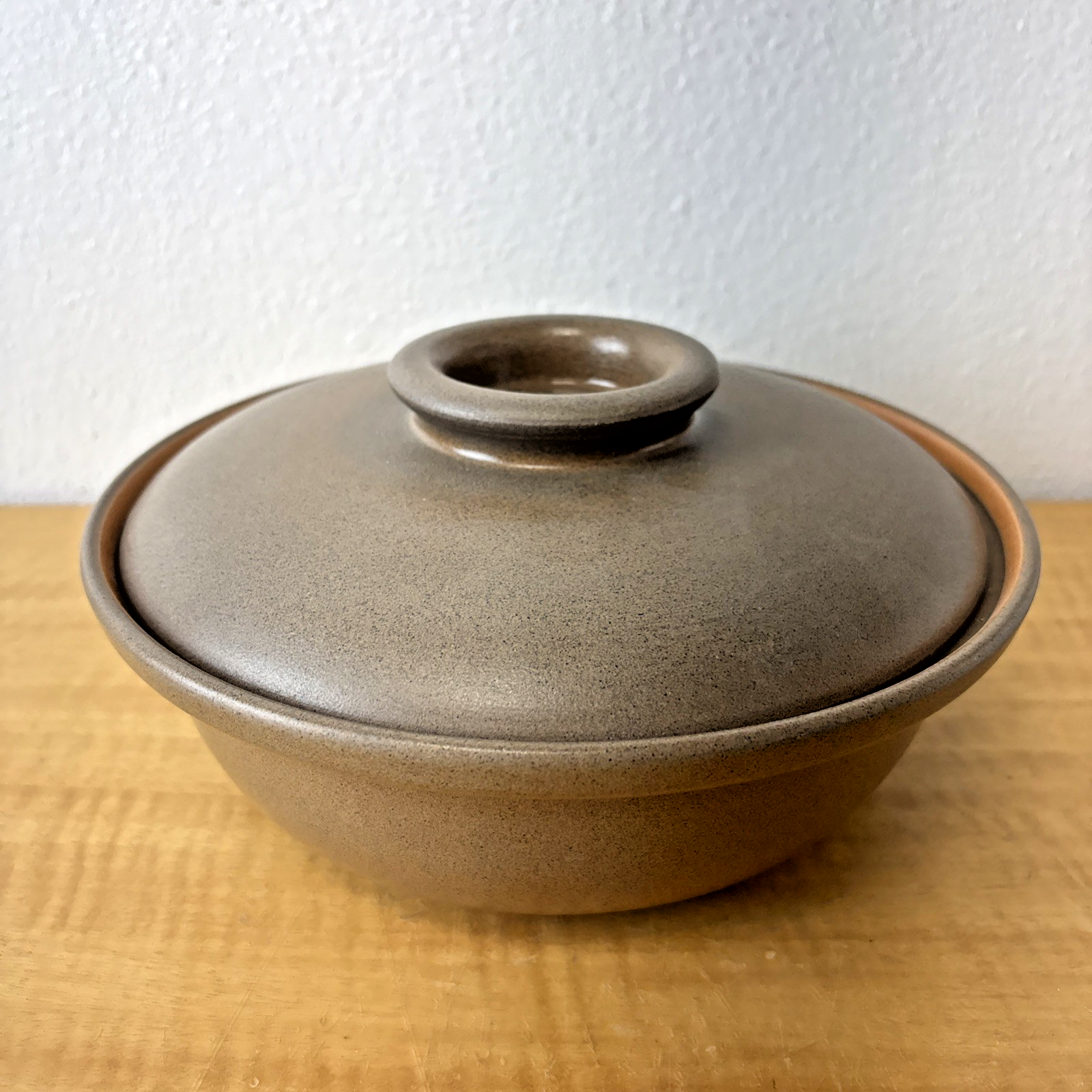 Vtg MCM Edith Heath Ceramic Pottery Casserole Bowl w/Lid Pumpkin Brown