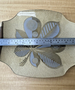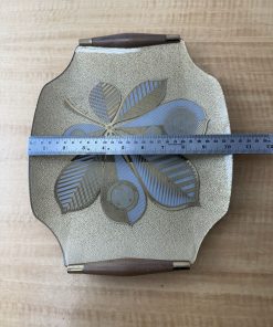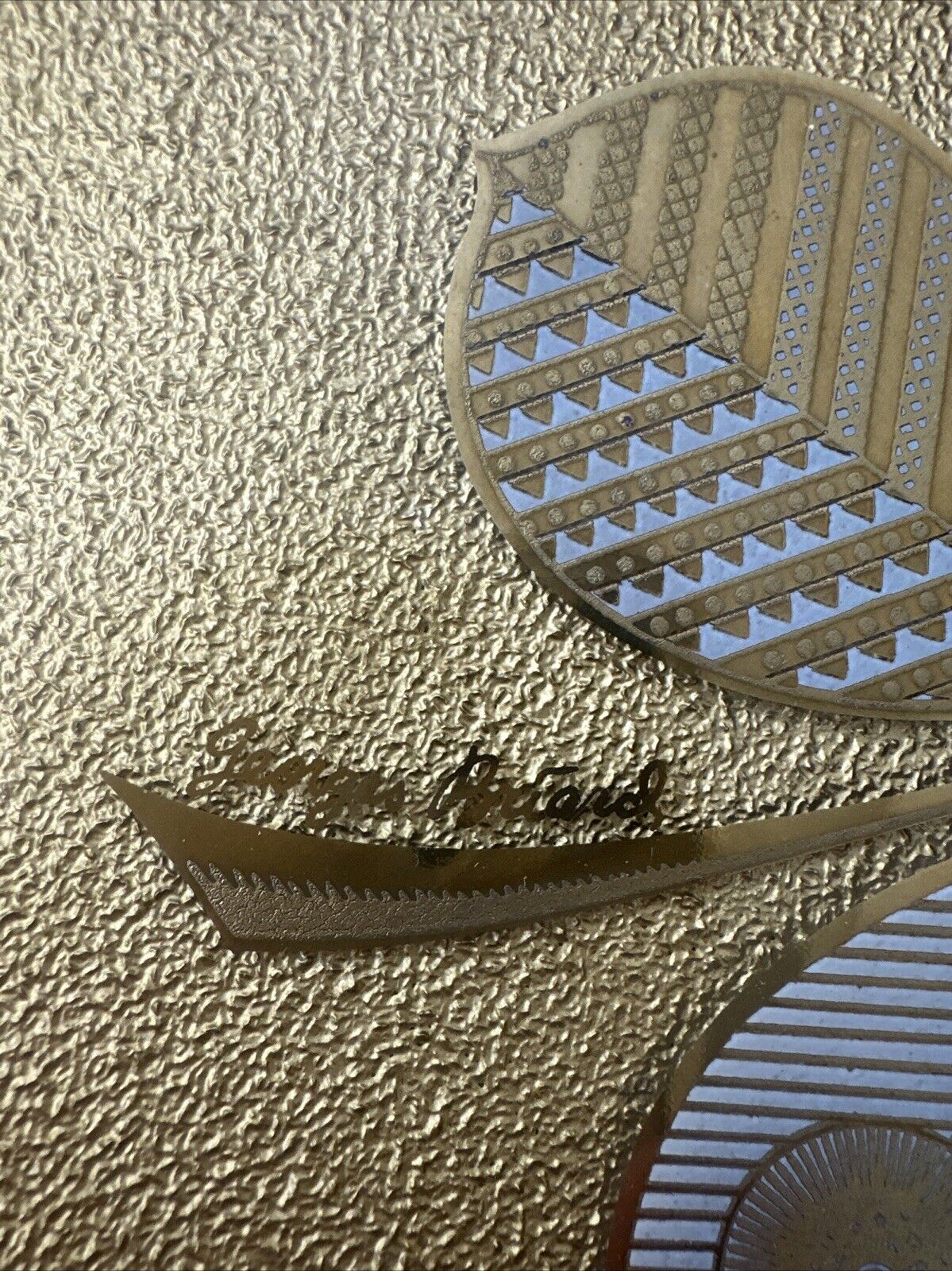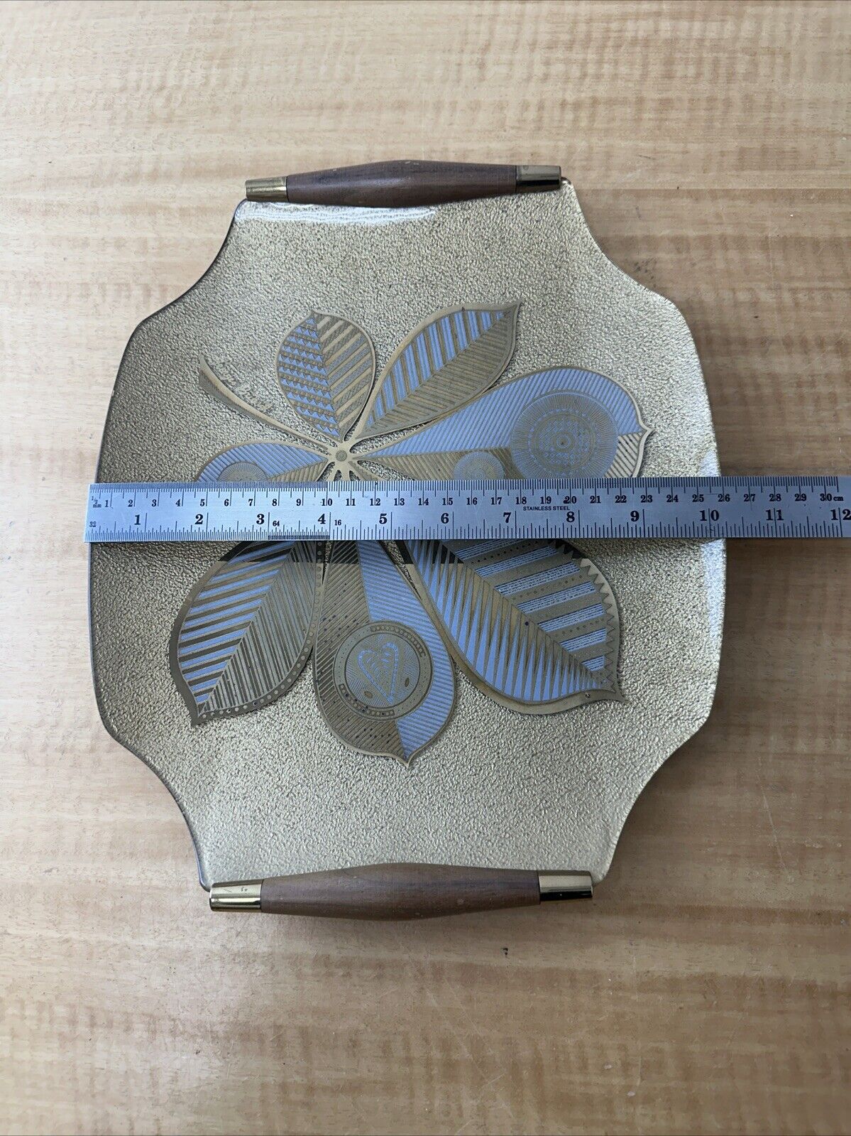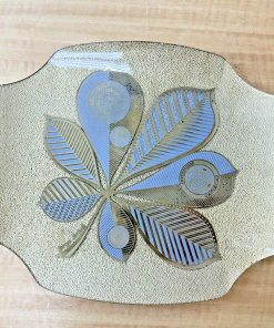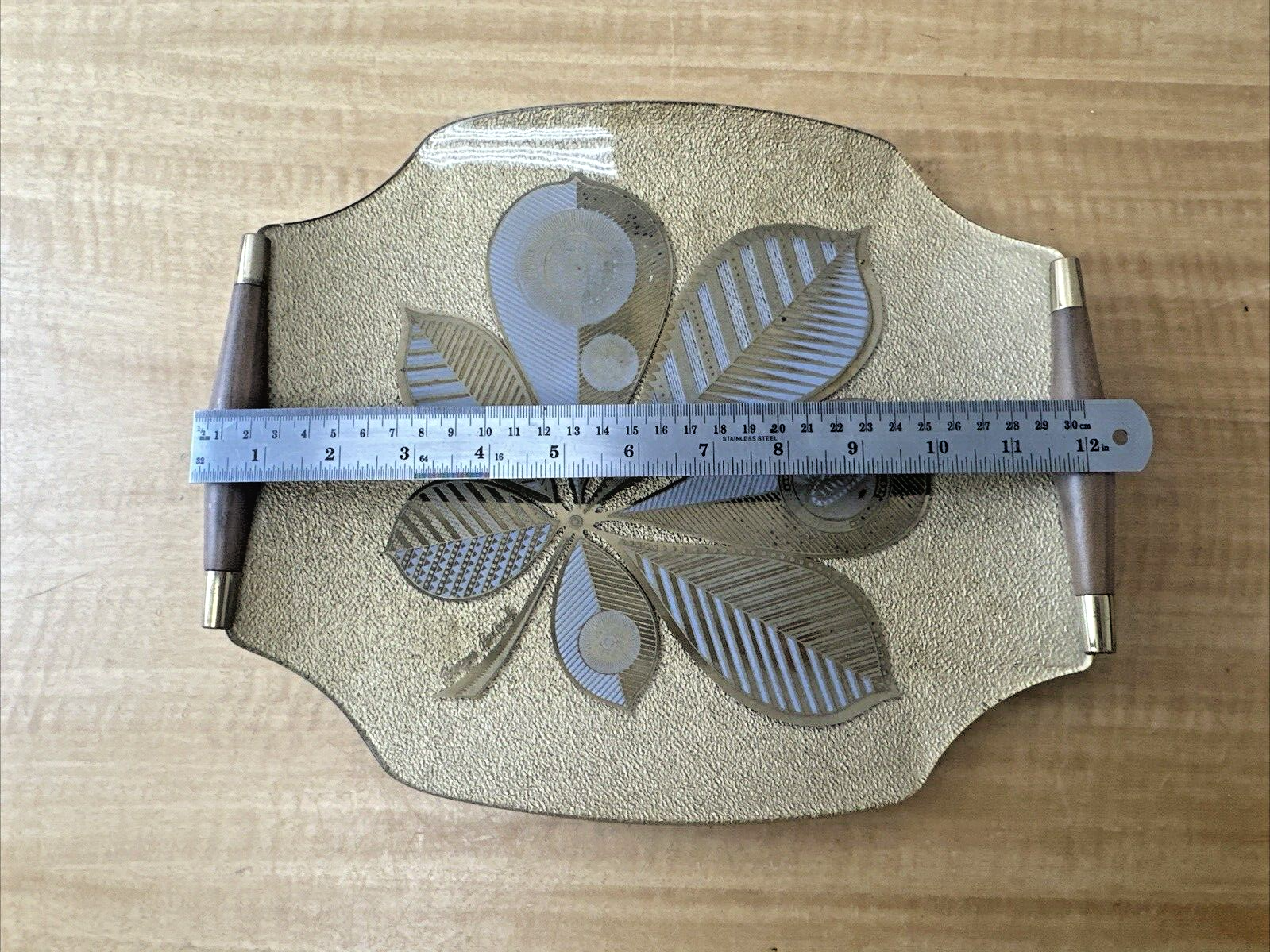 Vtg MCM Georges Briard Glass Serving Tray Chestnut Leaf Gold 12.5″