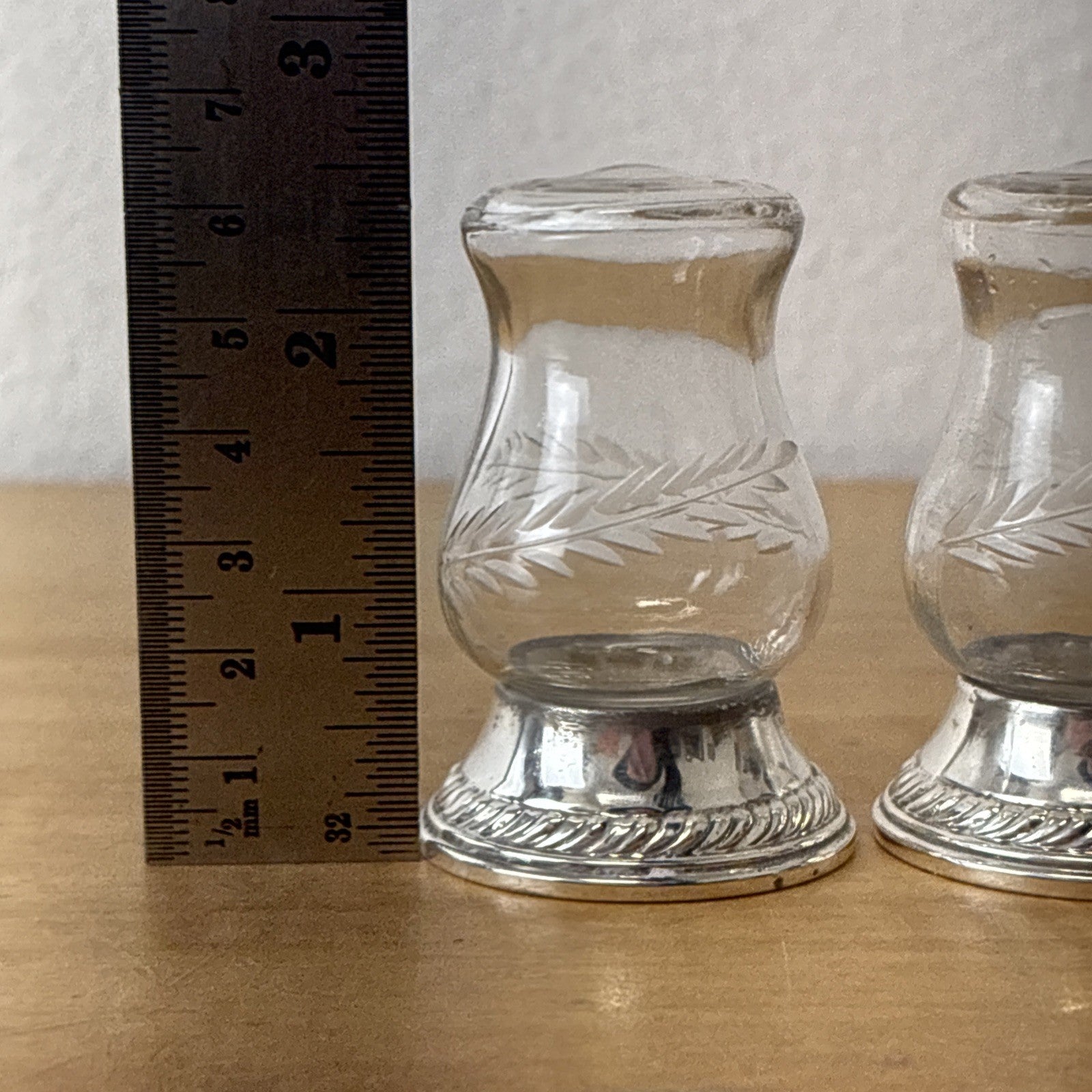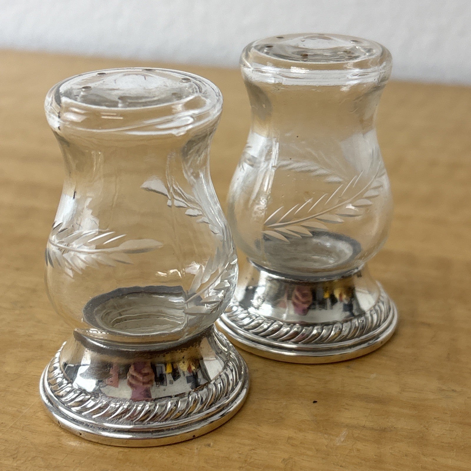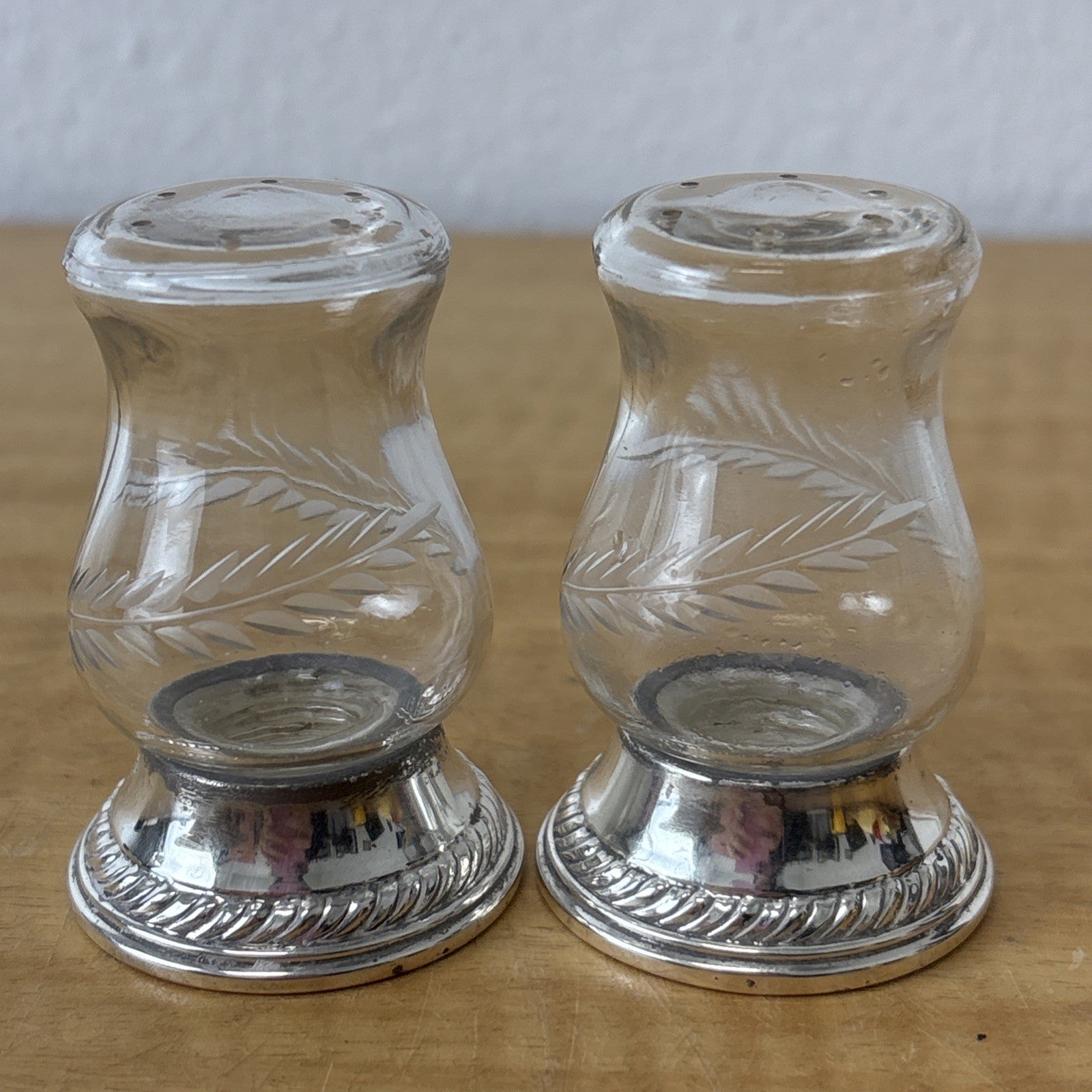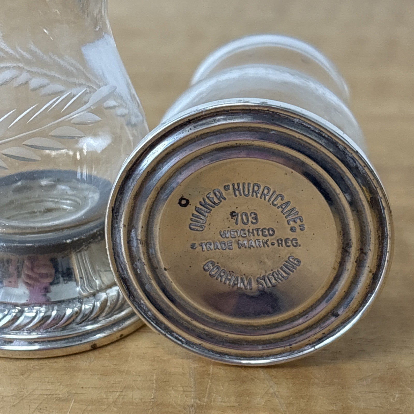 Vtg QUAKER SILVER Sterling Silver Hurricane #703 Etched Glass Salt Pepper Shaker