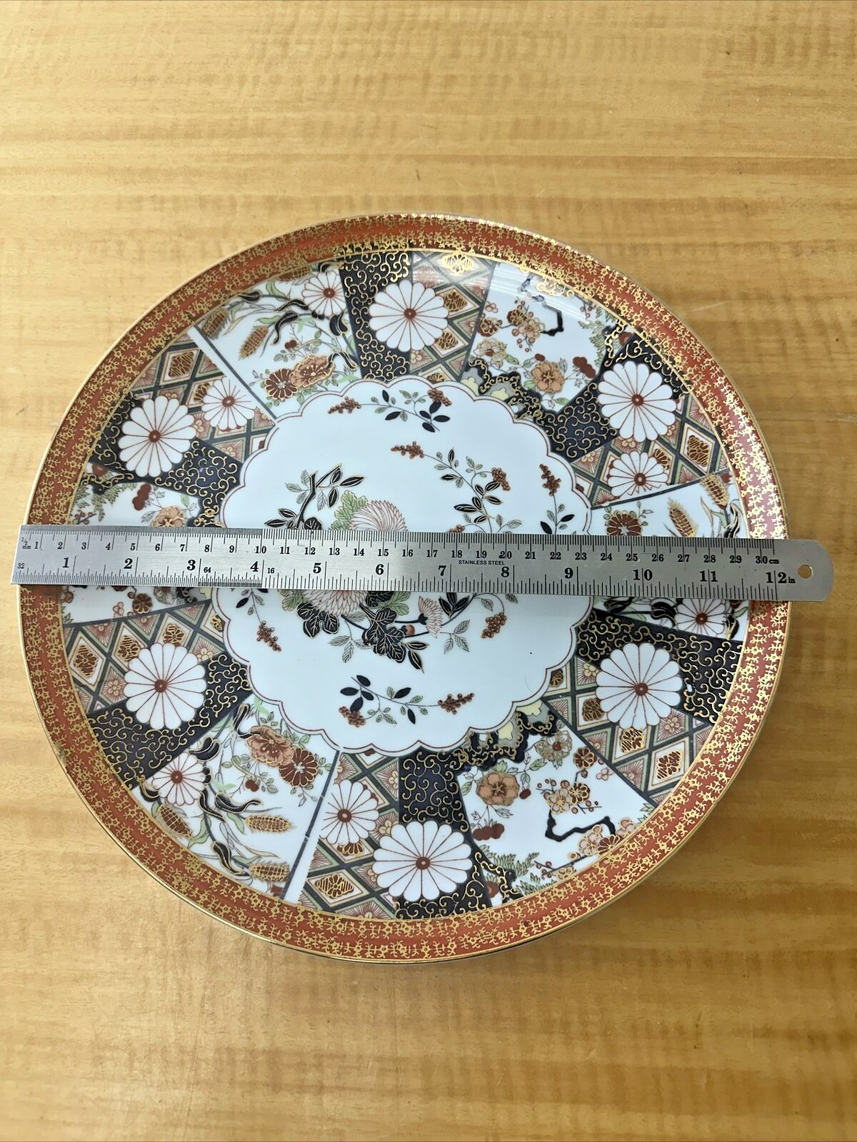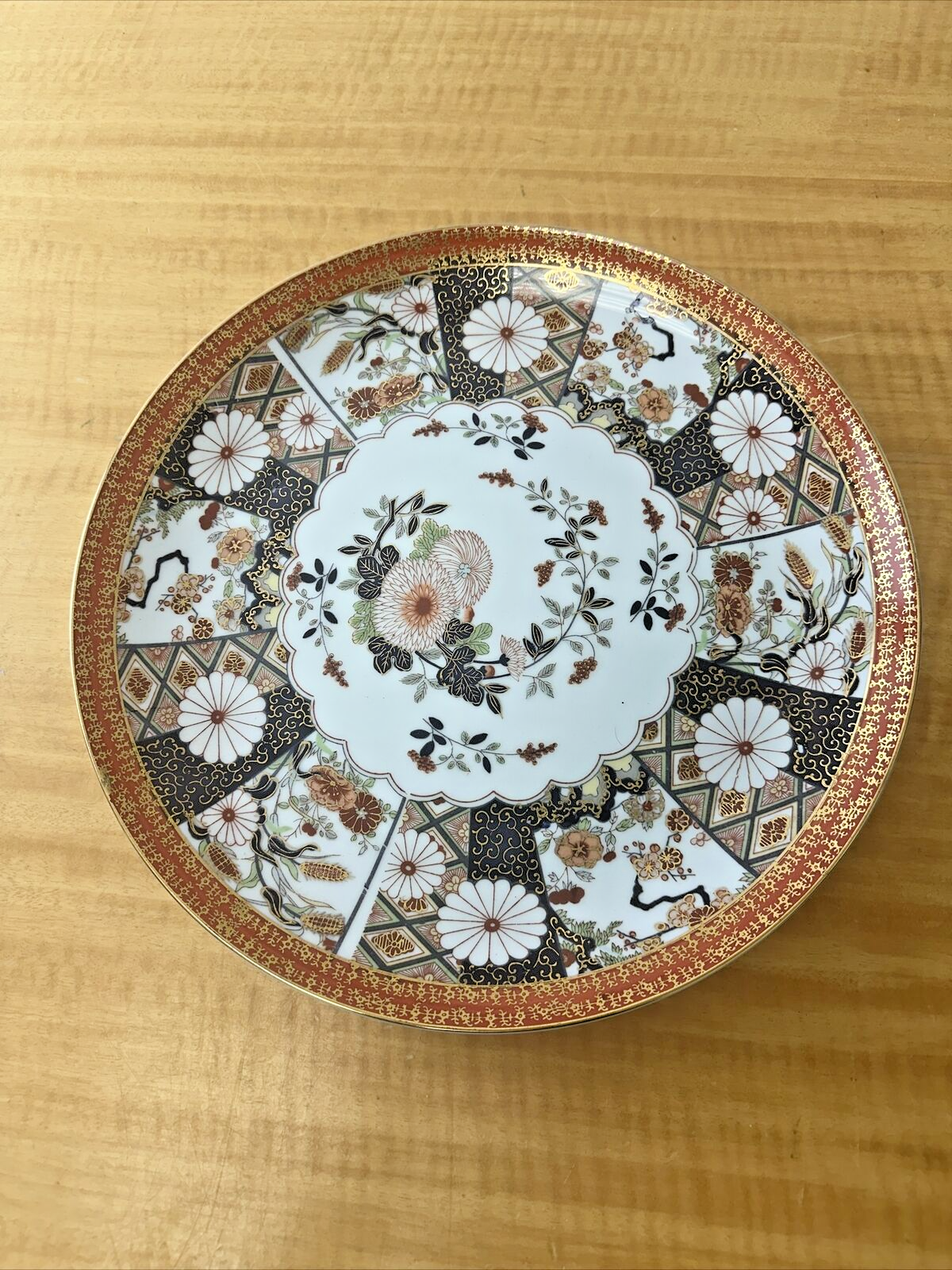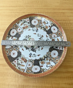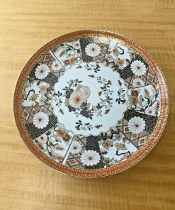 Vtg Saji Japan Fine China 12” Serving Platter Floral Orange Black Gold