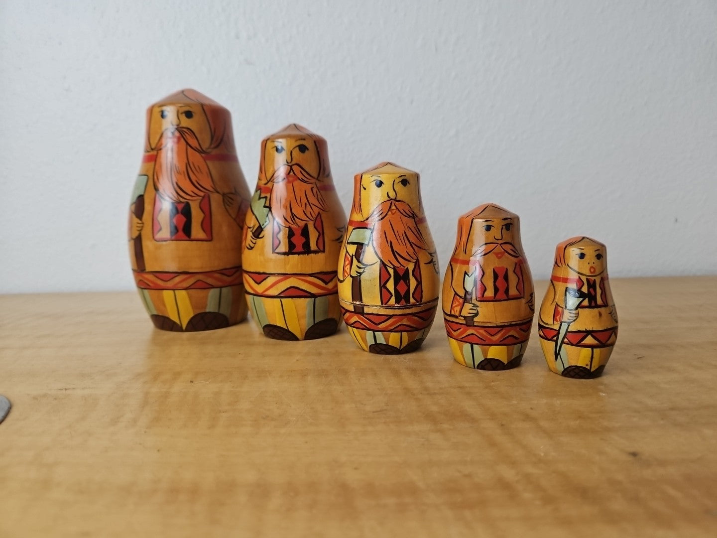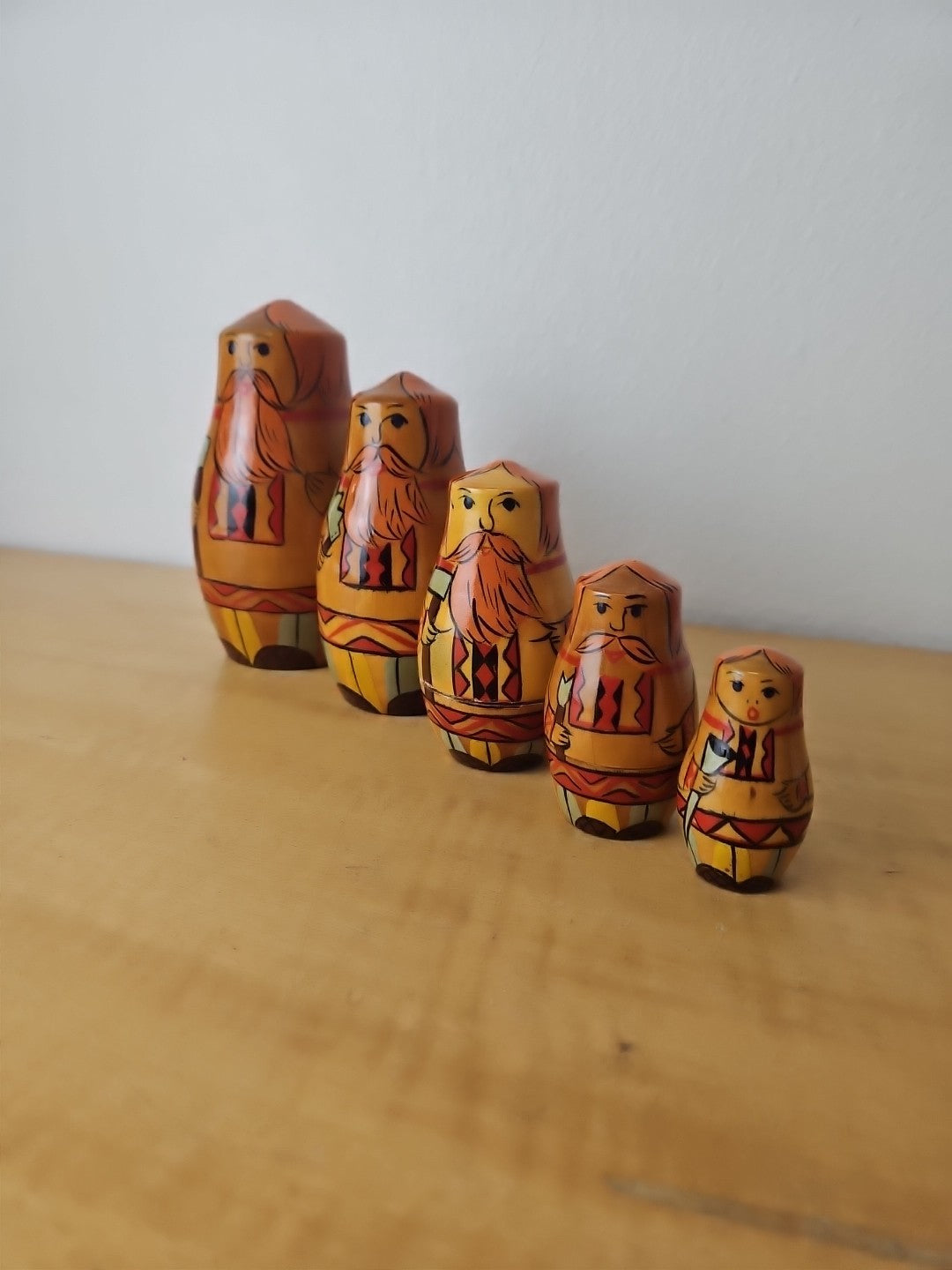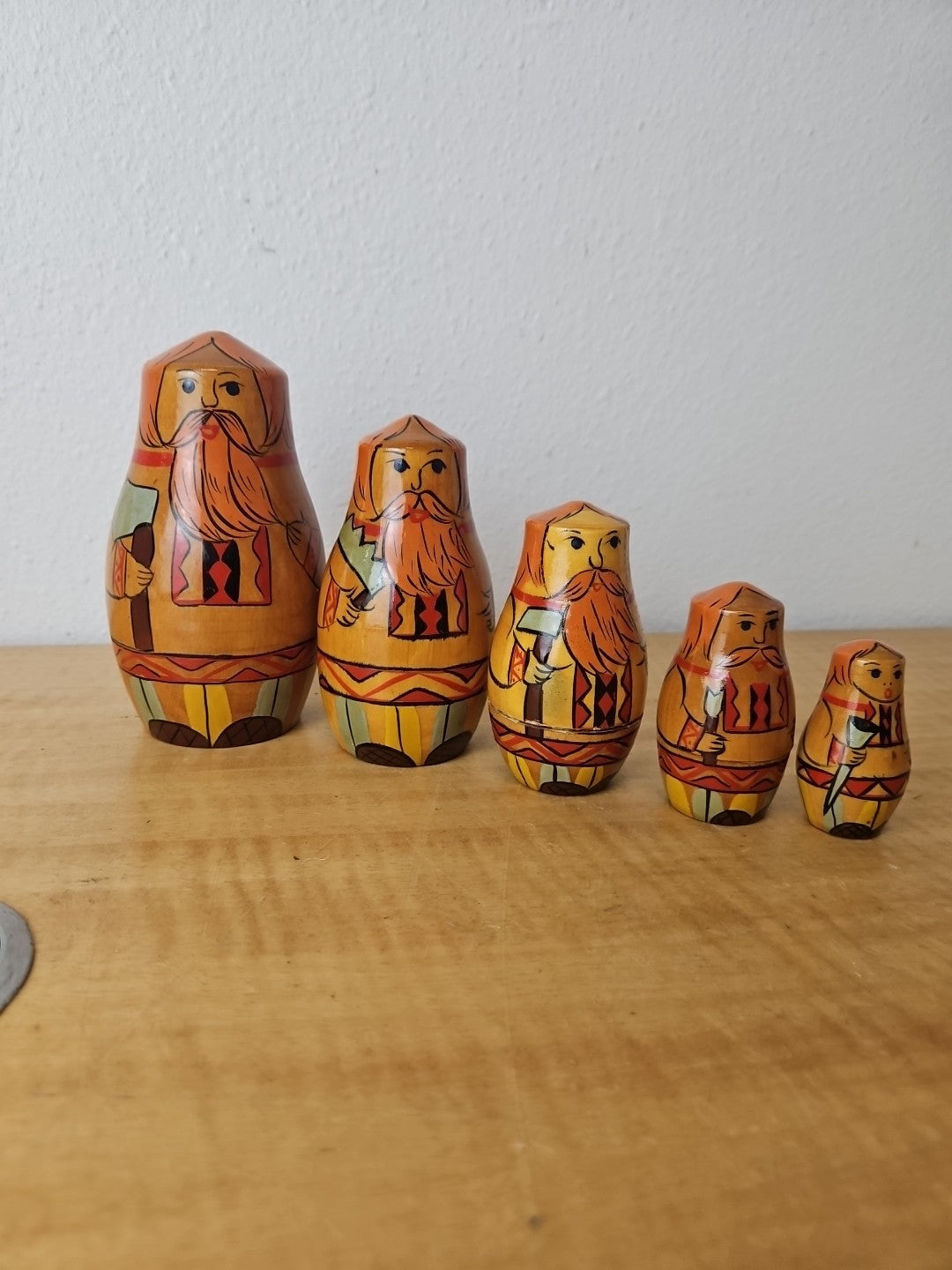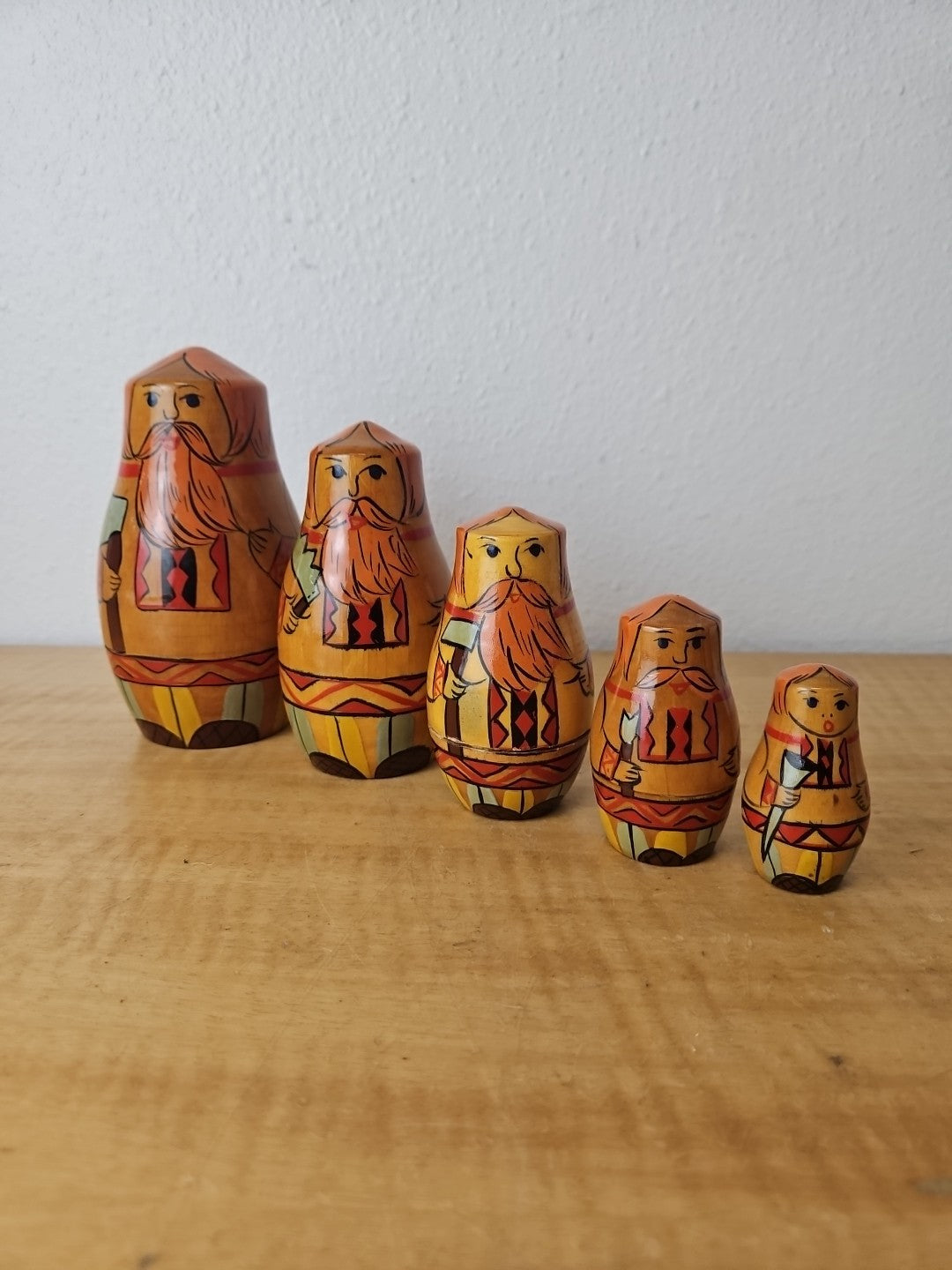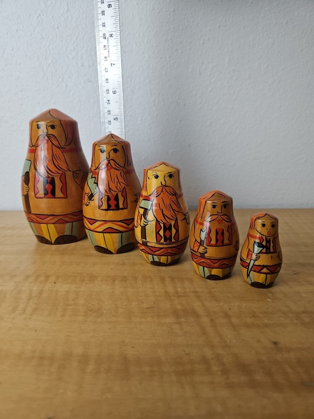 Vtg Set of 5 Russian Hand Painted Nesting Dolls