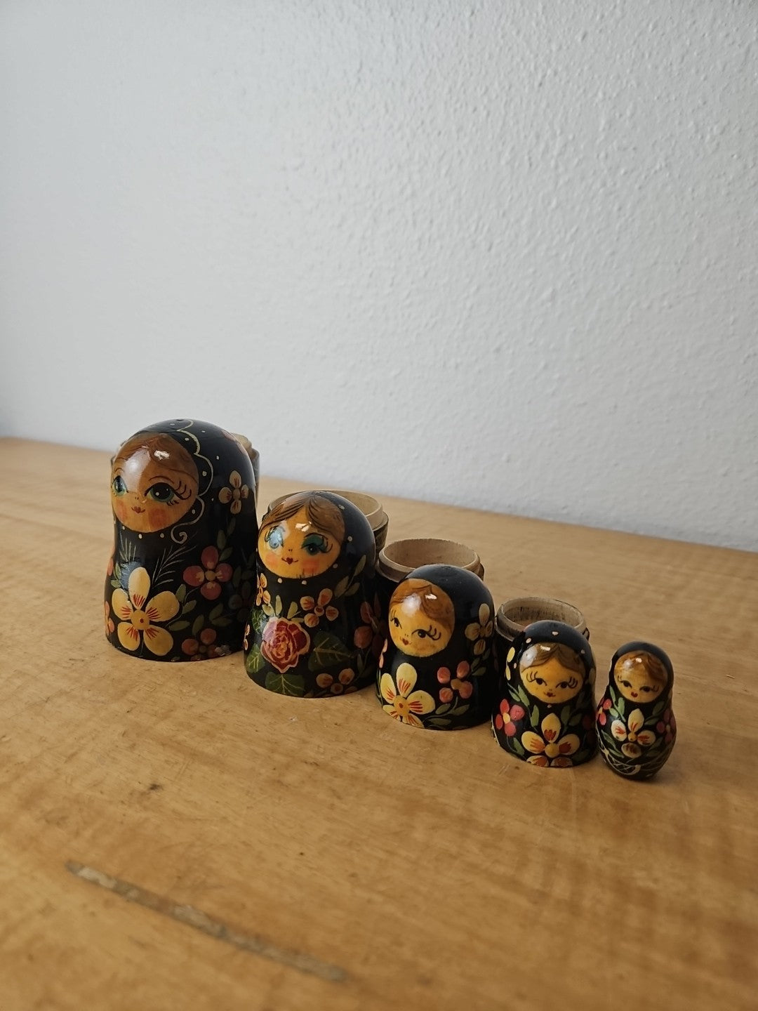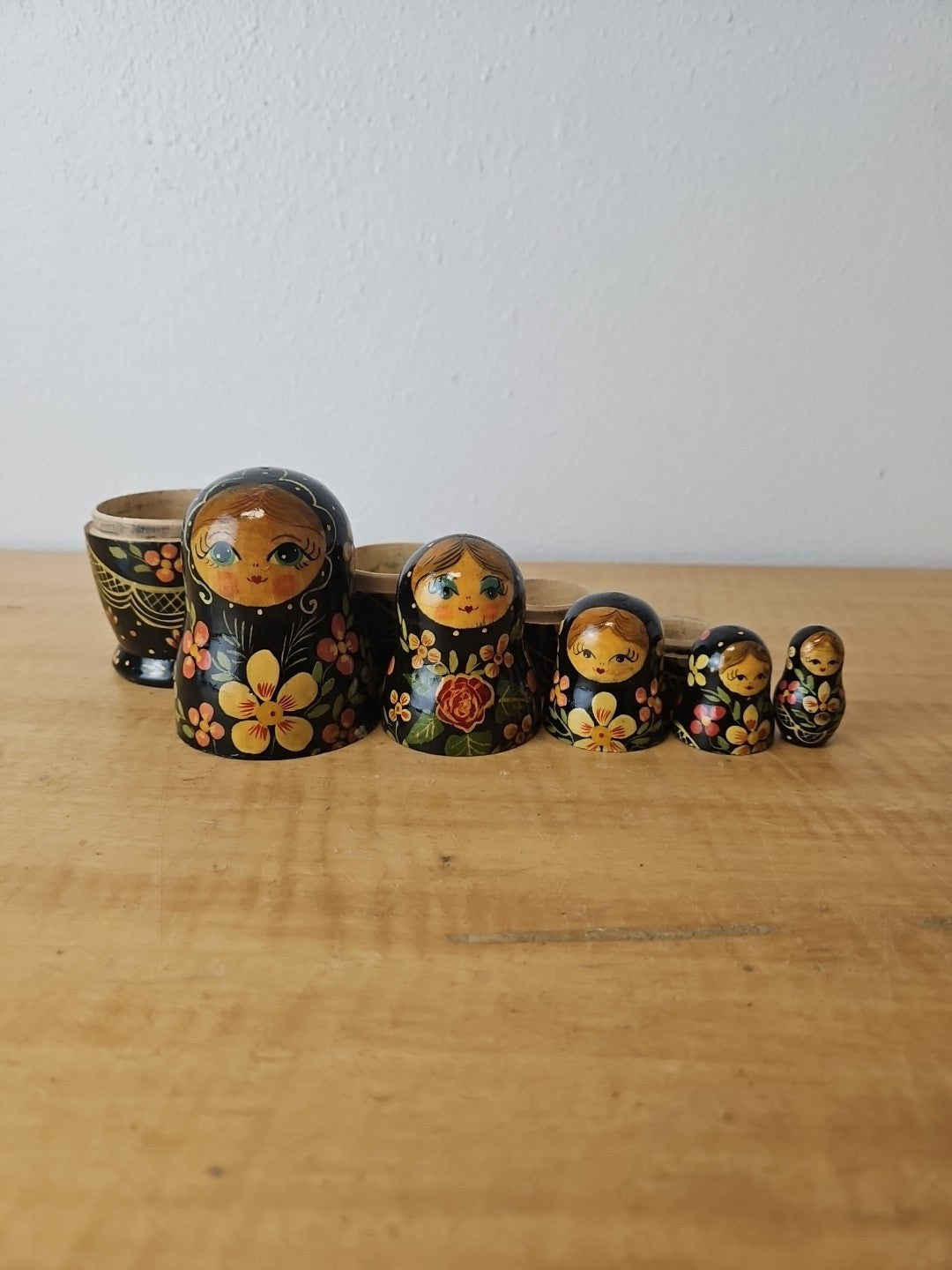 Vtg Set of 5 Russian Hand Painted Nesting Dolls