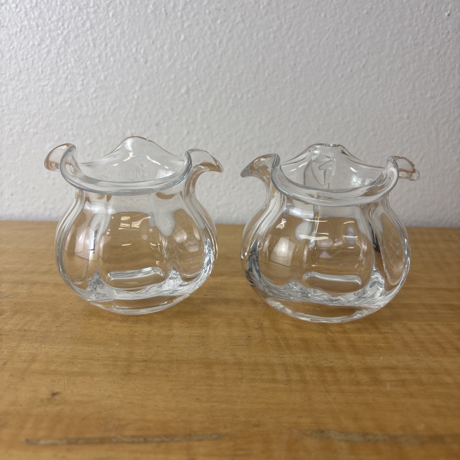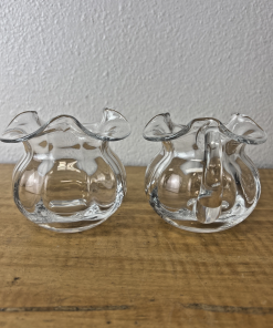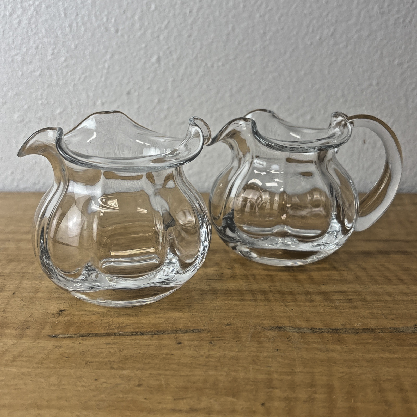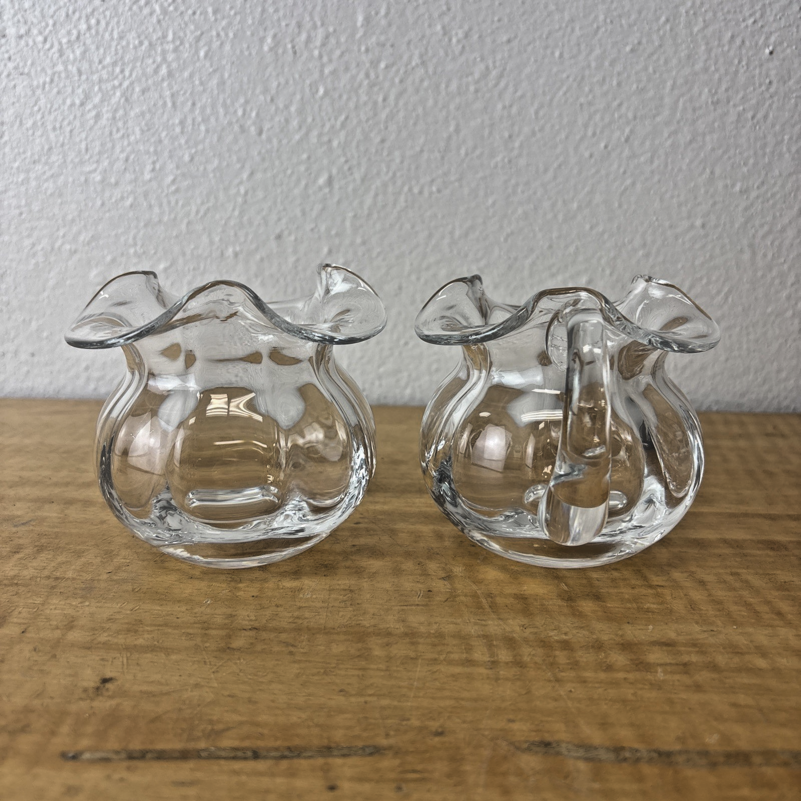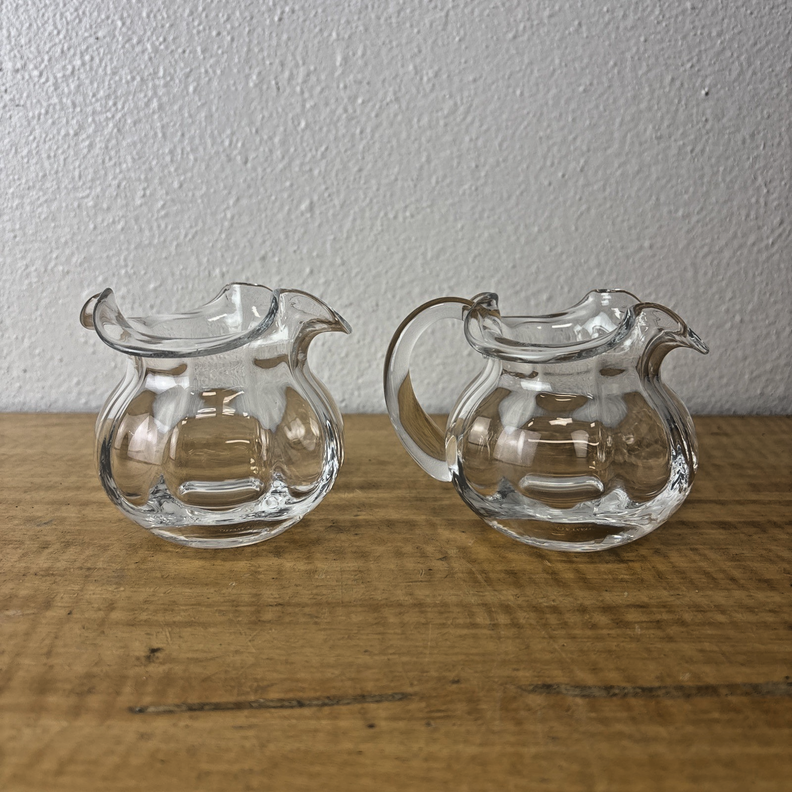 VTG Tiffany & Co Crystal Creamer & Sugar Set Ruffled Edge Signed