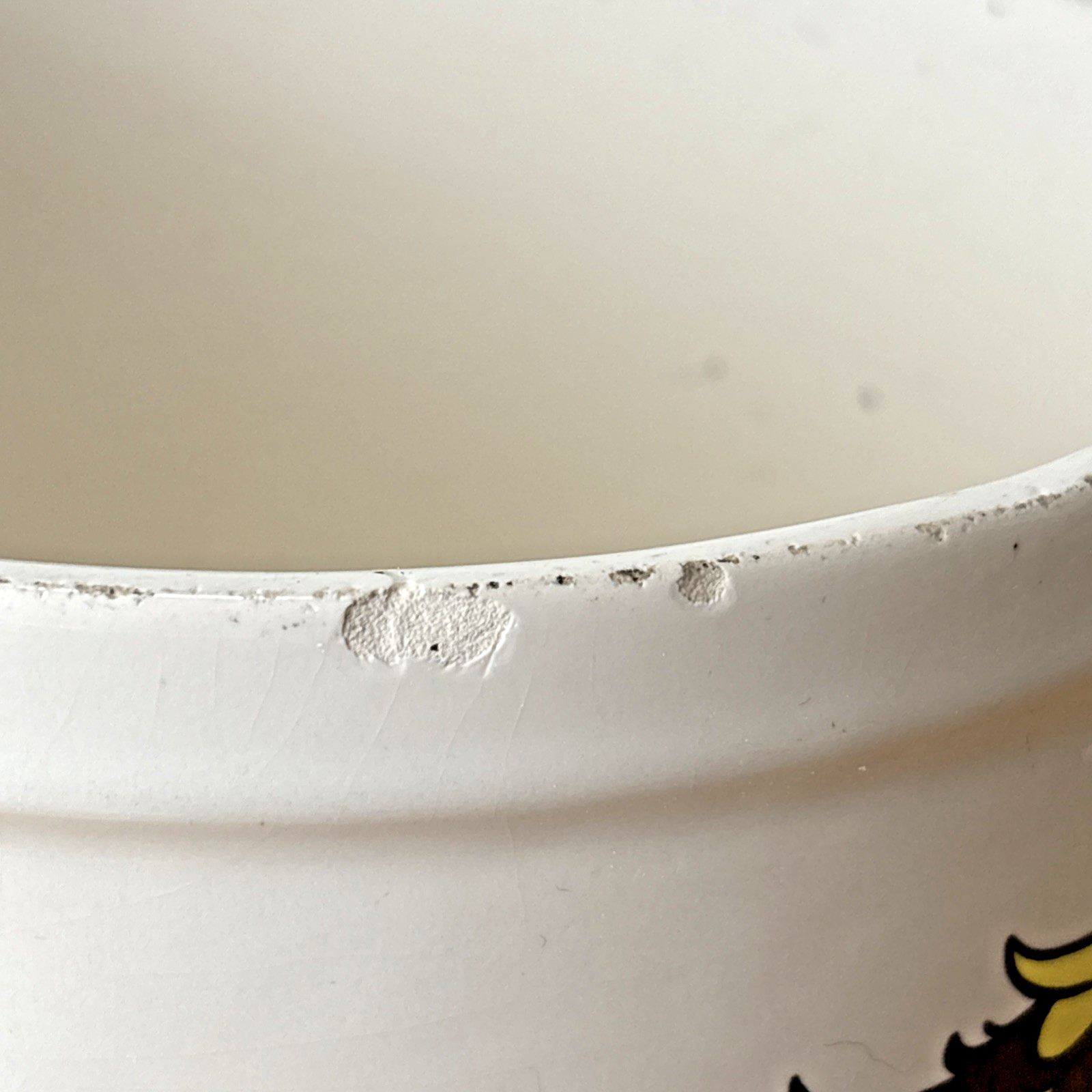 Condition Description: See images, ask questions. Chip on rim, scuffing, and missing lid as seen in photos.