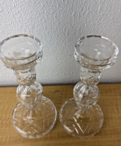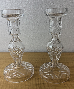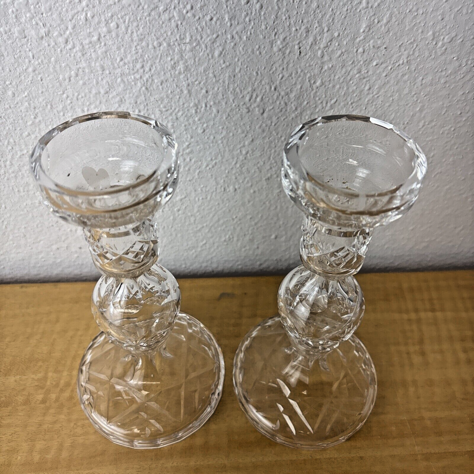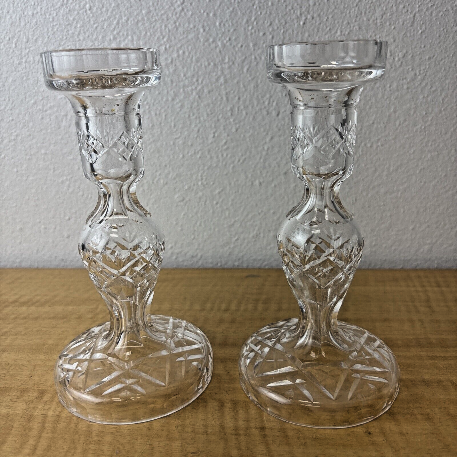 WATERFORD 2pc CANDLESTICKS CUT Lead CRYSTAL Glass Candle Holder