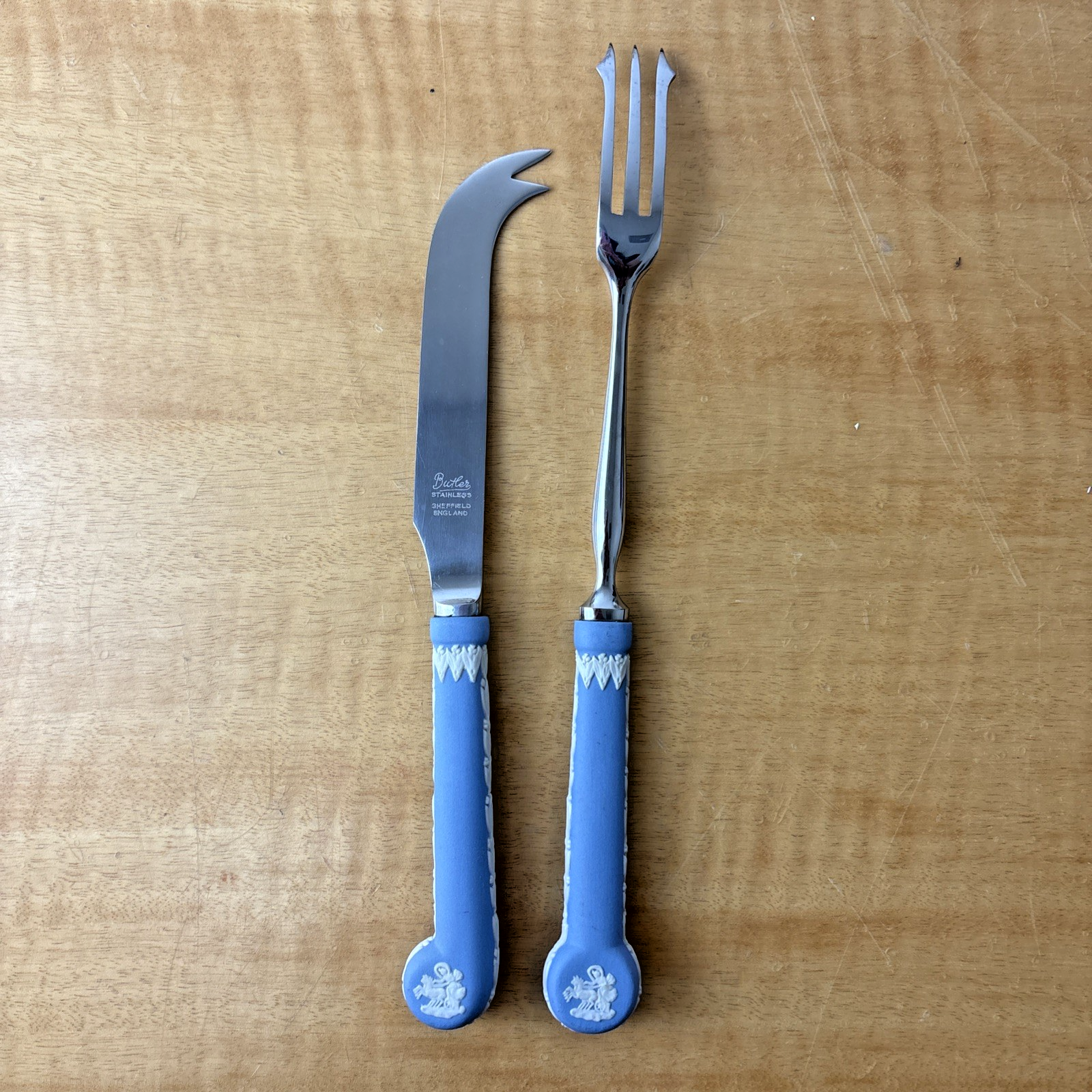 Wedgwood Sheffield Cream on Lavender Jasperware Pickle Fork and Cheese Knife