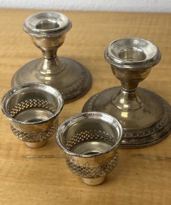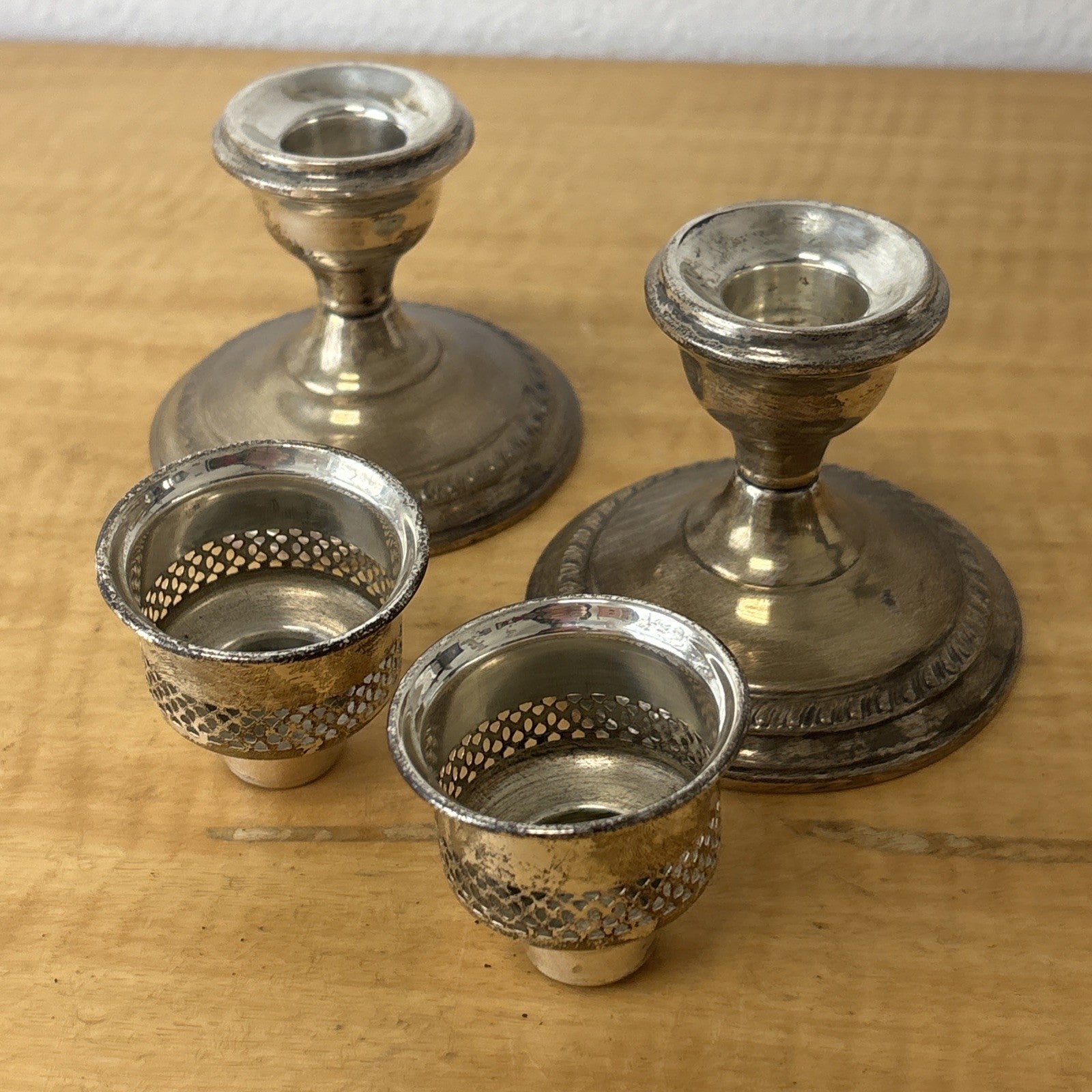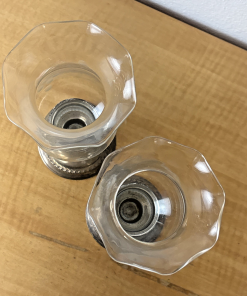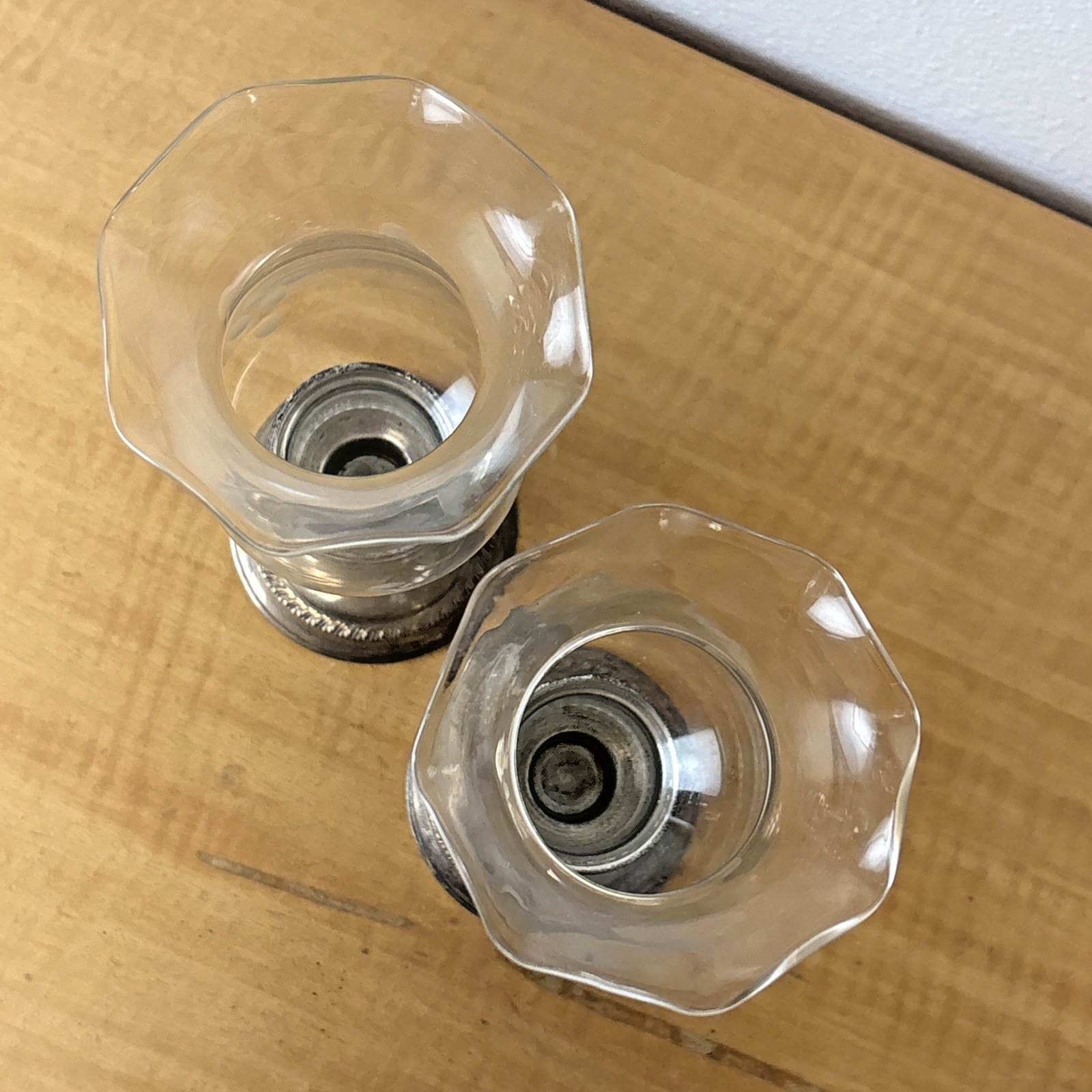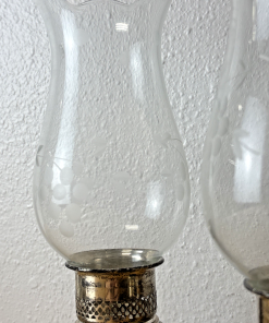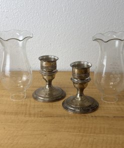Weighted Sterling Candle Holder Etched Hurricane Glass Set of 2