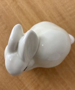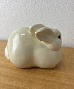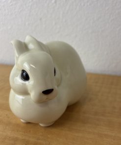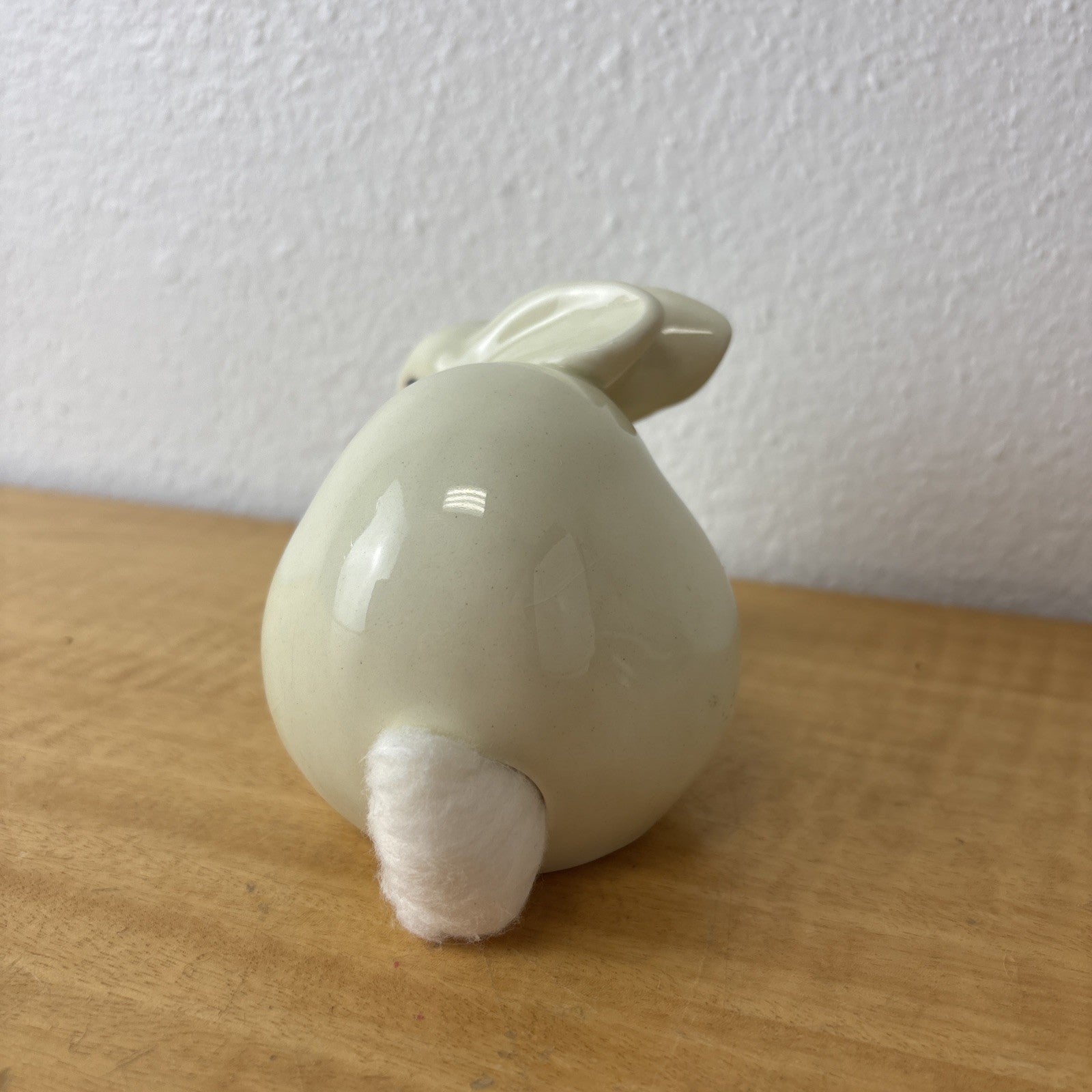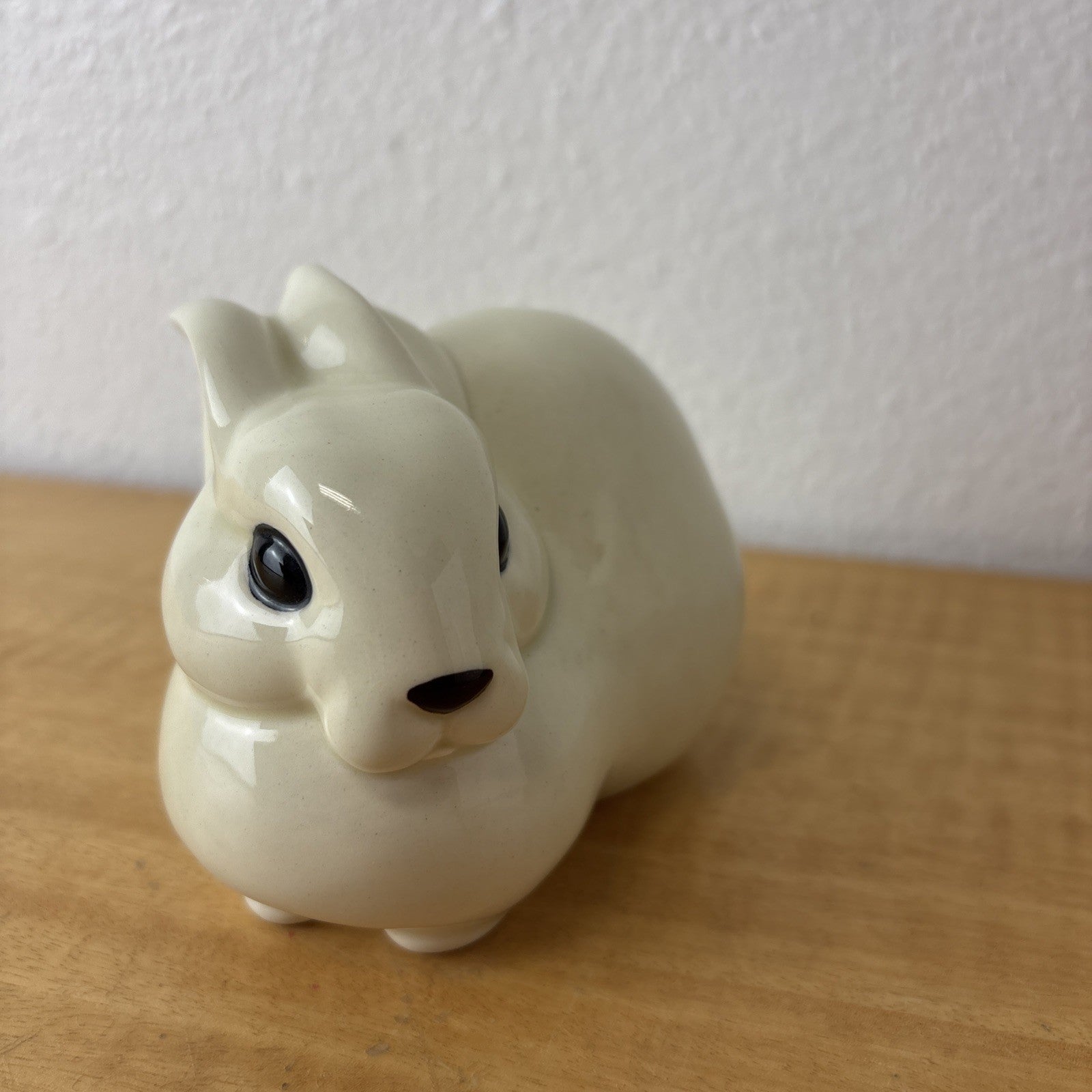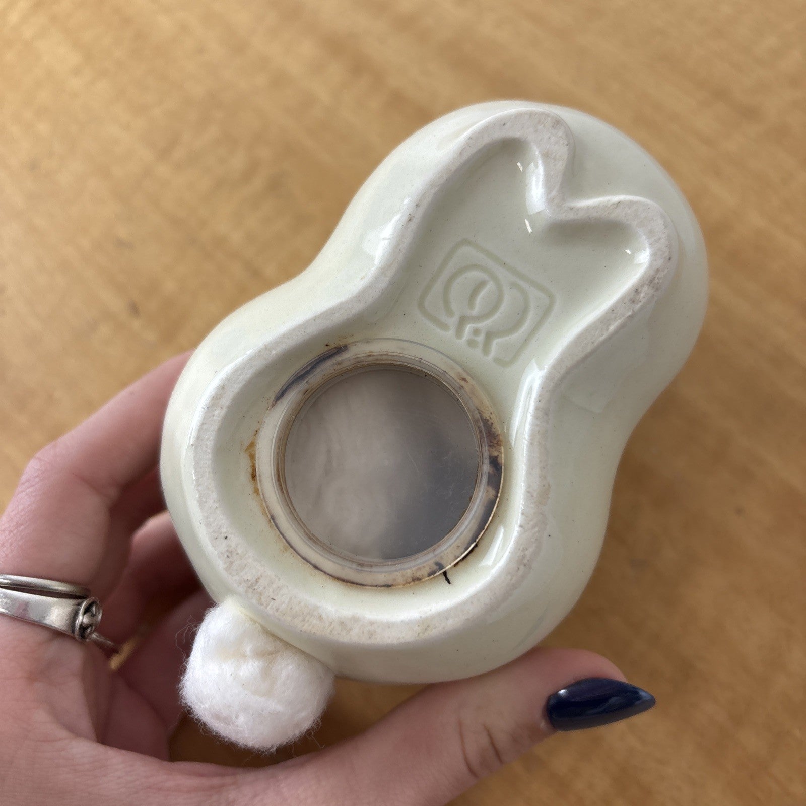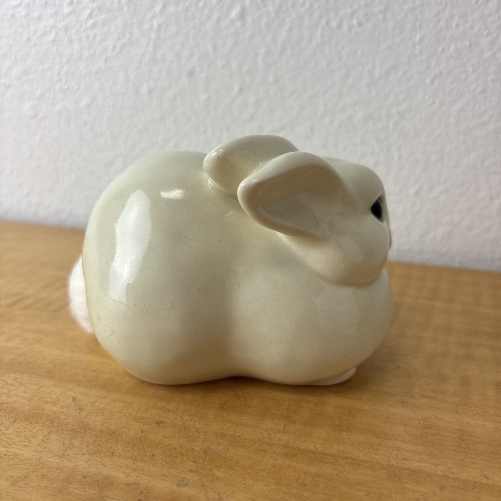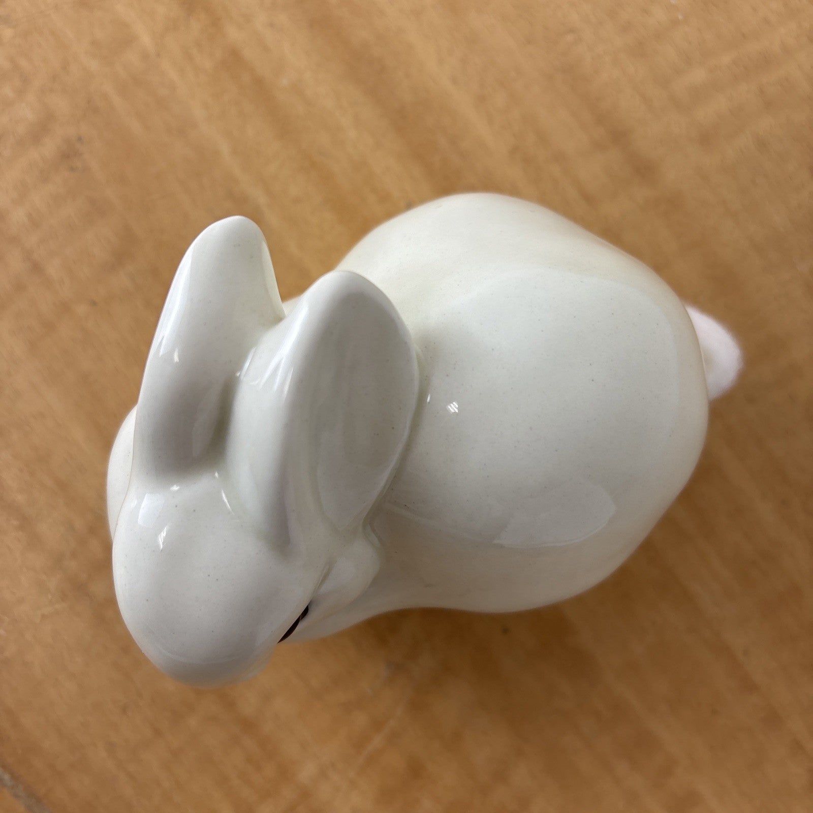 White Ceramic Bunny Rabbit Cotton Ball Dispenser Vintage Quon Quon Made in Japan