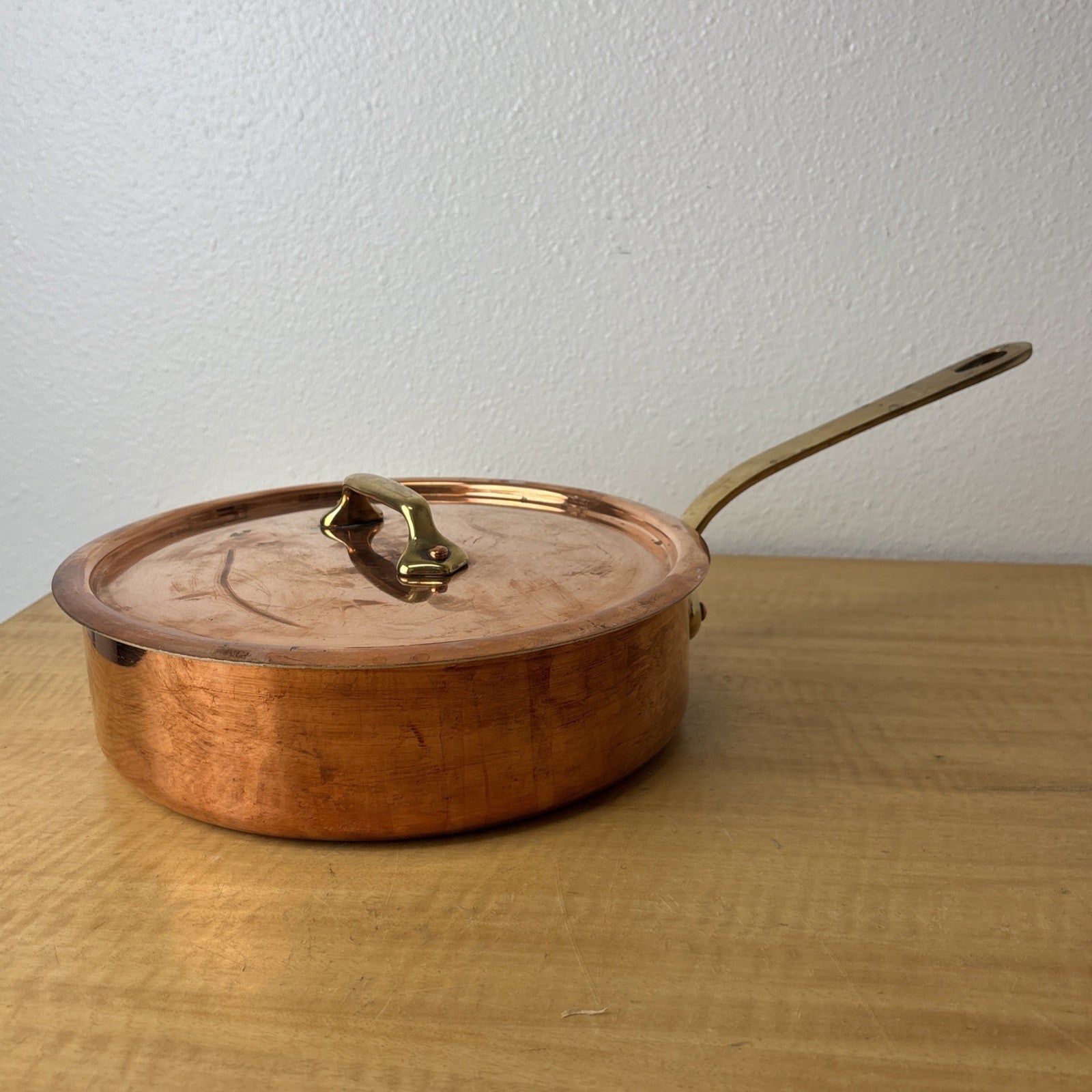 William Sonoma Vintage Copper 3 Qt 9.5″ x 3″ Deep Saute Skillet Pan Pot w Lid
