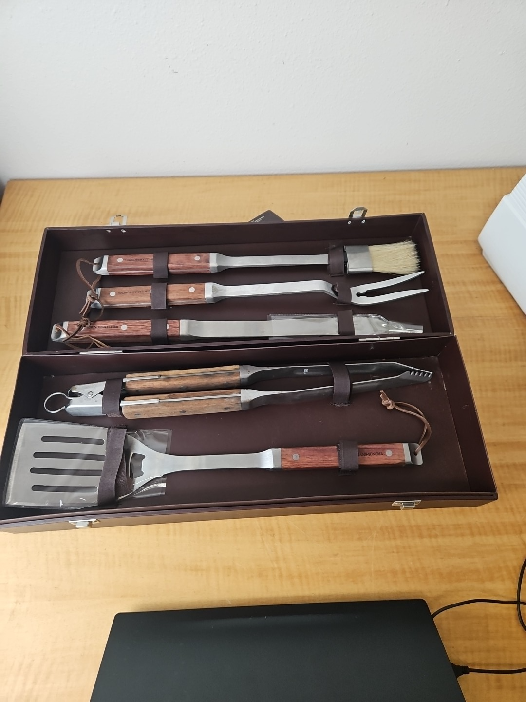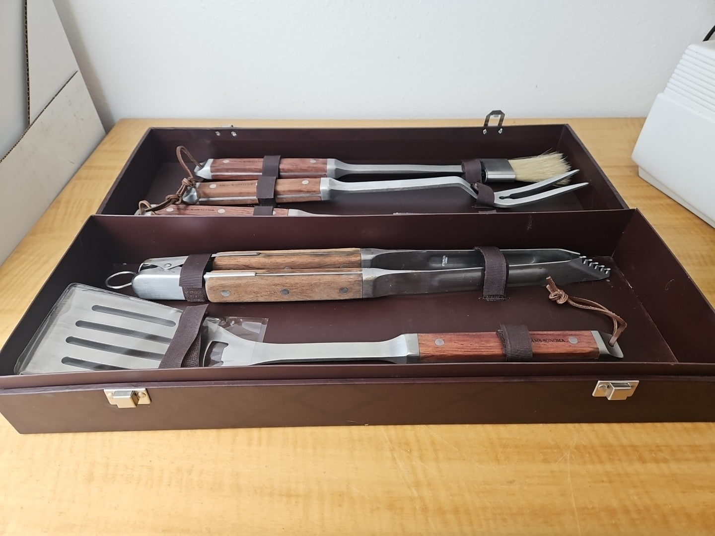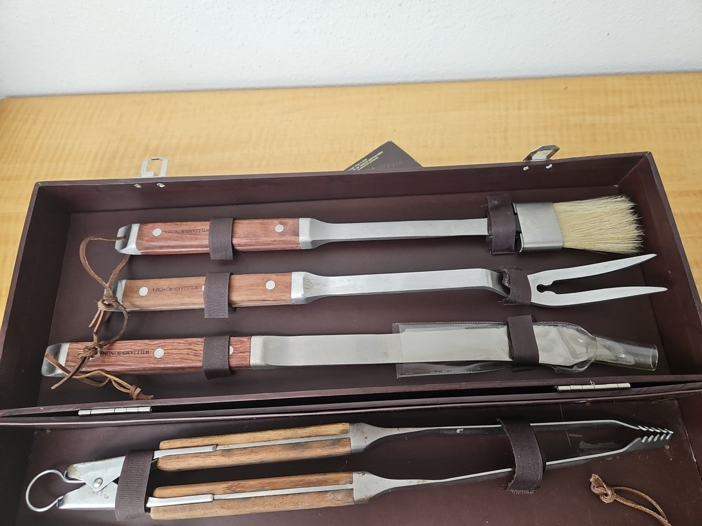 Williams-Sonoma 5 Piece Grilling Tools Set in Case Stainless Rosewood Handles