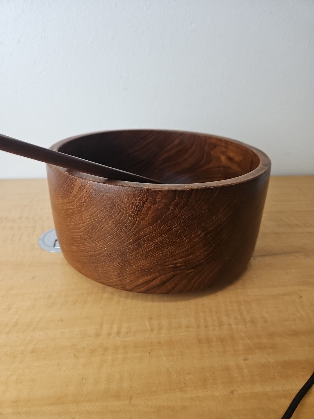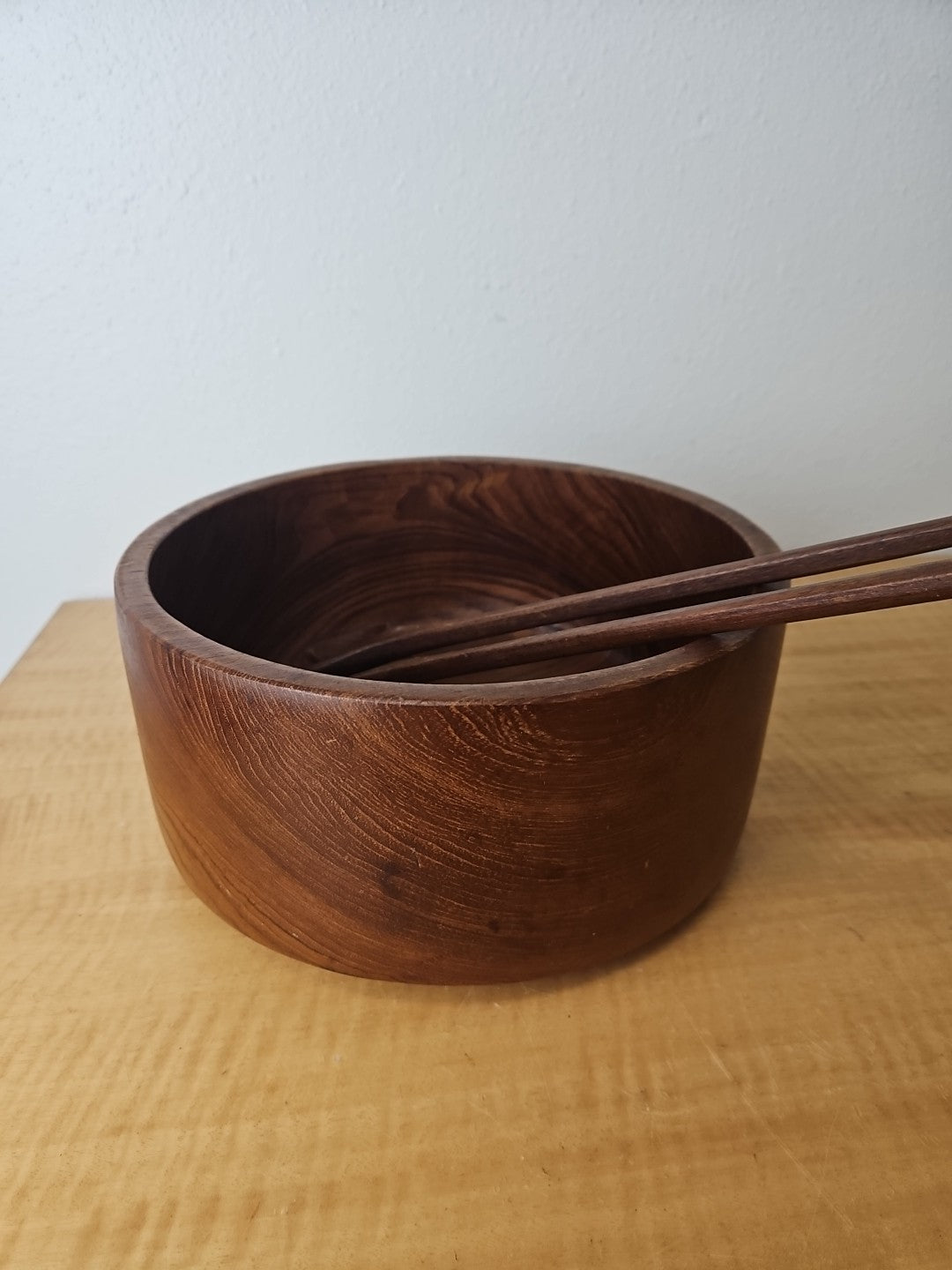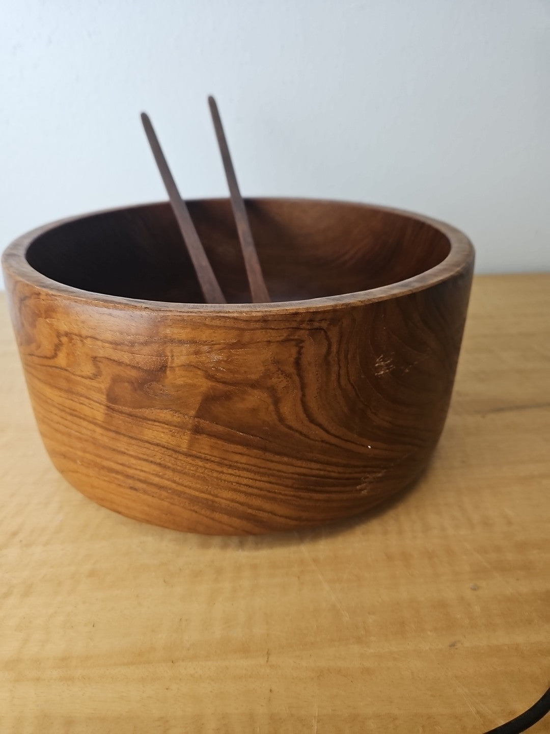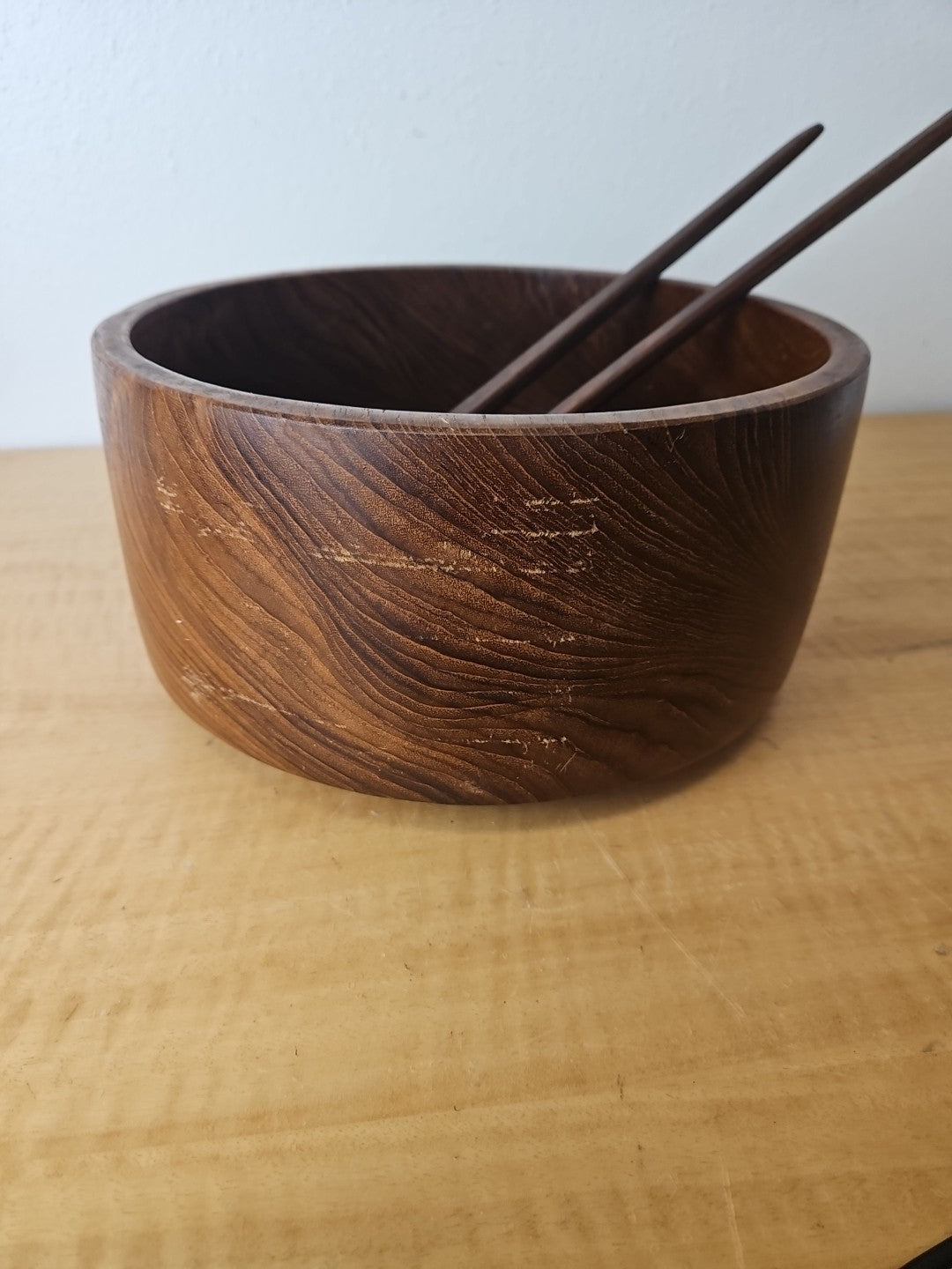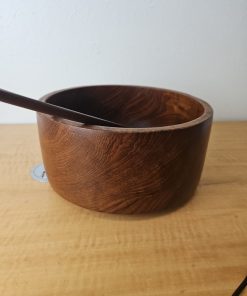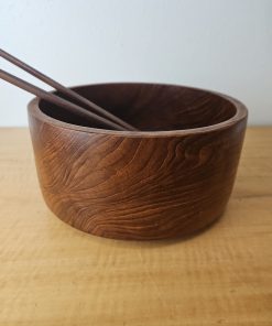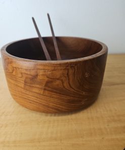 Wood salad serving bowl with serving utensils set